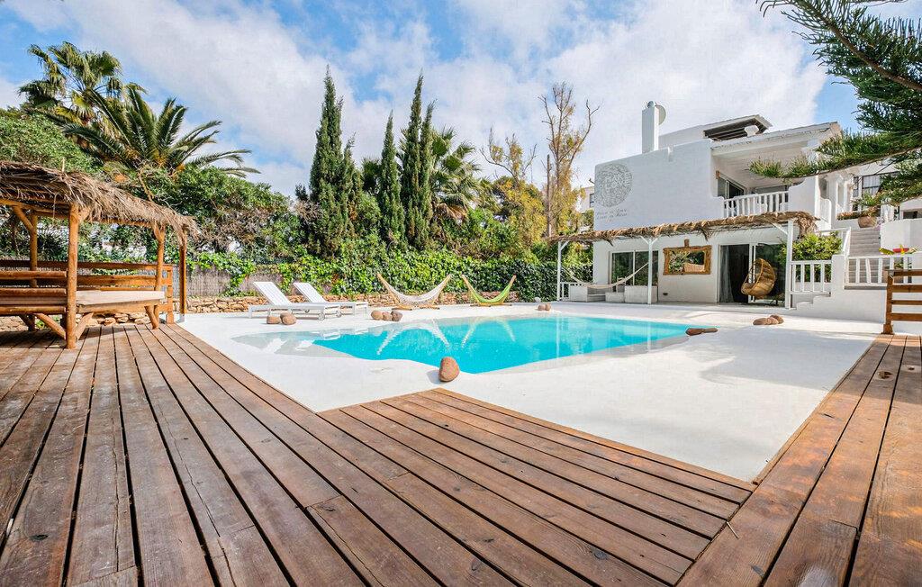 Gemt væk i det prestigefyldte samfund Roca Llisa, tilbyder denne smukt renoverede villa et tilflugtssted omgivet af natur, komplet med 24-timers sikkerhed for jeres ro i sindet. Det er et perfekt tilflugtssted for op til seks gæster og kombinerer moderne elegance med Ibizas naturlige skønhed. Dette er et Fincallorca feriehus. Villaen har tre charmerende dobbeltværelser, hver med eget badeværelse og direkte adgang til den indbydende pool og frodige have. Det lyse, fuldt udstyrede køkken sikrer ubesværet tilberedning af måltider, suppleret med bekvemmeligheden ved en vaskemaskine og tørretumbler. Udendørs er den store have en oase af afslapning. Slap af på de to balinesiske senge, nyd solen på liggestolene eller saml jer omkring grillpladsen med et træspisebord til udendørs spisning. Den funklende pool fungerer som midtpunktet og tilbyder en forfriskende flugt under Ibizas sol. Med to private parkeringspladser og slutrengøring er der taget højde for alle detaljer for jeres komfort. Minimumsalder for booking: 25 år.