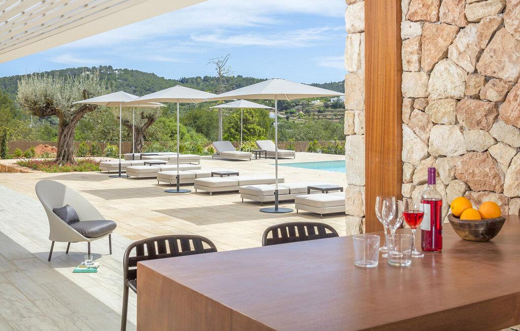 Spektakulær 480 m2 ejendom, der følger den moderne Ibiza-arkitektoniske stil, der kombinerer sten og hvide vægge med luksuriøse kvaliteter og komfort på ét niveau. Det er beliggende i et roligt landområde på en 20.000 m2 stor grund. Villaen har en stor stue-spisestue med TV og udsigt over poolen. Fuldt udstyret køkken med dobbelt køleskab, fryser, opvaskemaskine, ovn, Nespresso kaffemaskine. Toilet på gangen. I alt 7 suiter, 6 af soveværelserne er i hovedhuset, og en af dem er i et separat anneks nær indgangen. Alle har tv, aircondition, pengeskab og eget badeværelse med bruser. Alle senge kan skubbes sammen eller adskilles. Stor infinity-pool med liggestole og parasoller. Sofaområde, udendørs spiseplads og kulgrill. Vaskerum med vaskemaskine og tørretumbler. WiFi (ikke højhastighed), parkering til mindst 5 køretøjer. Rengøring inkluderet i prisen: 4 timer om dagen fra mandag til lørdag og 1 skift af håndklæder i løbet af ugen og slutrengøring.