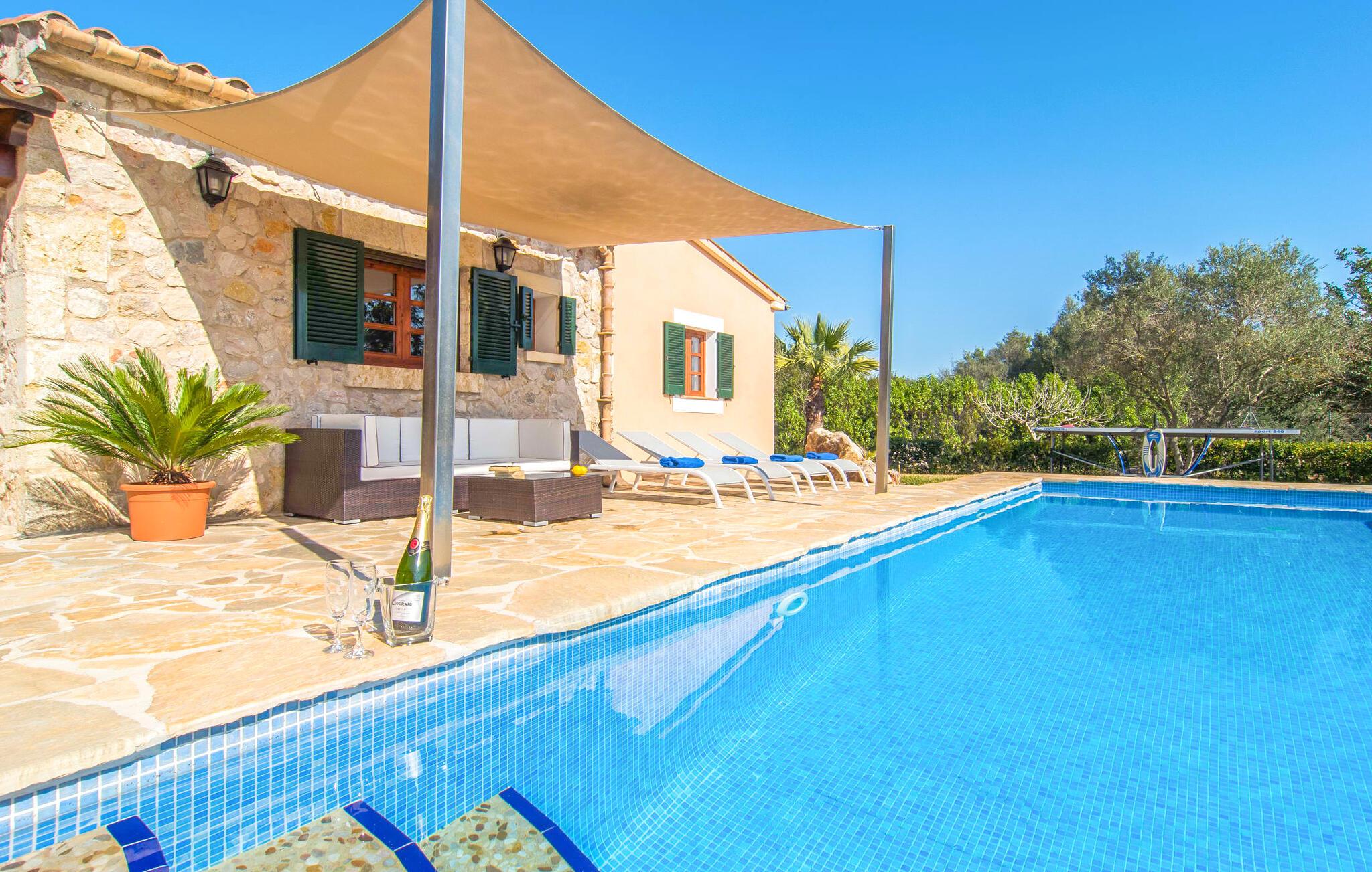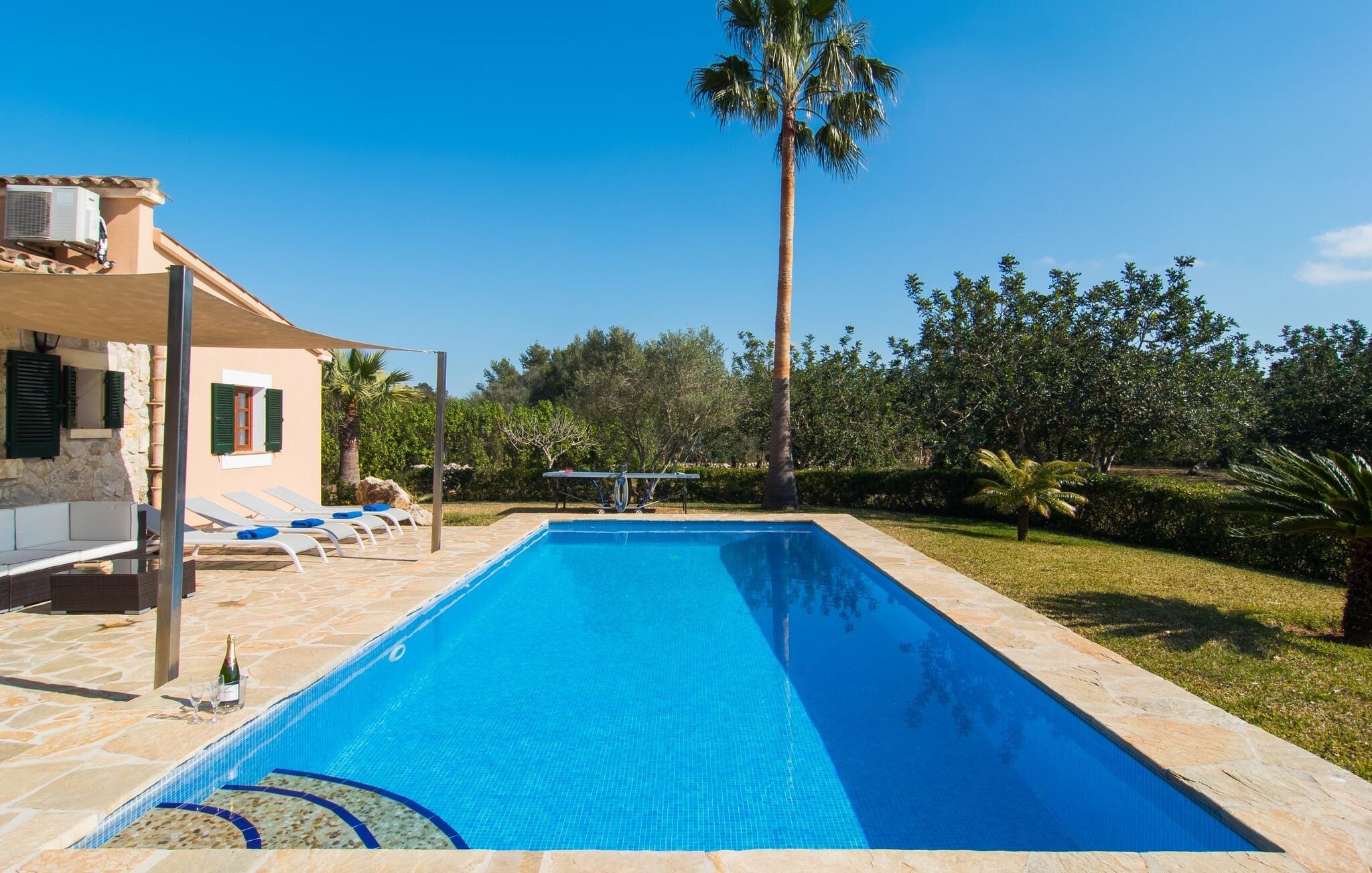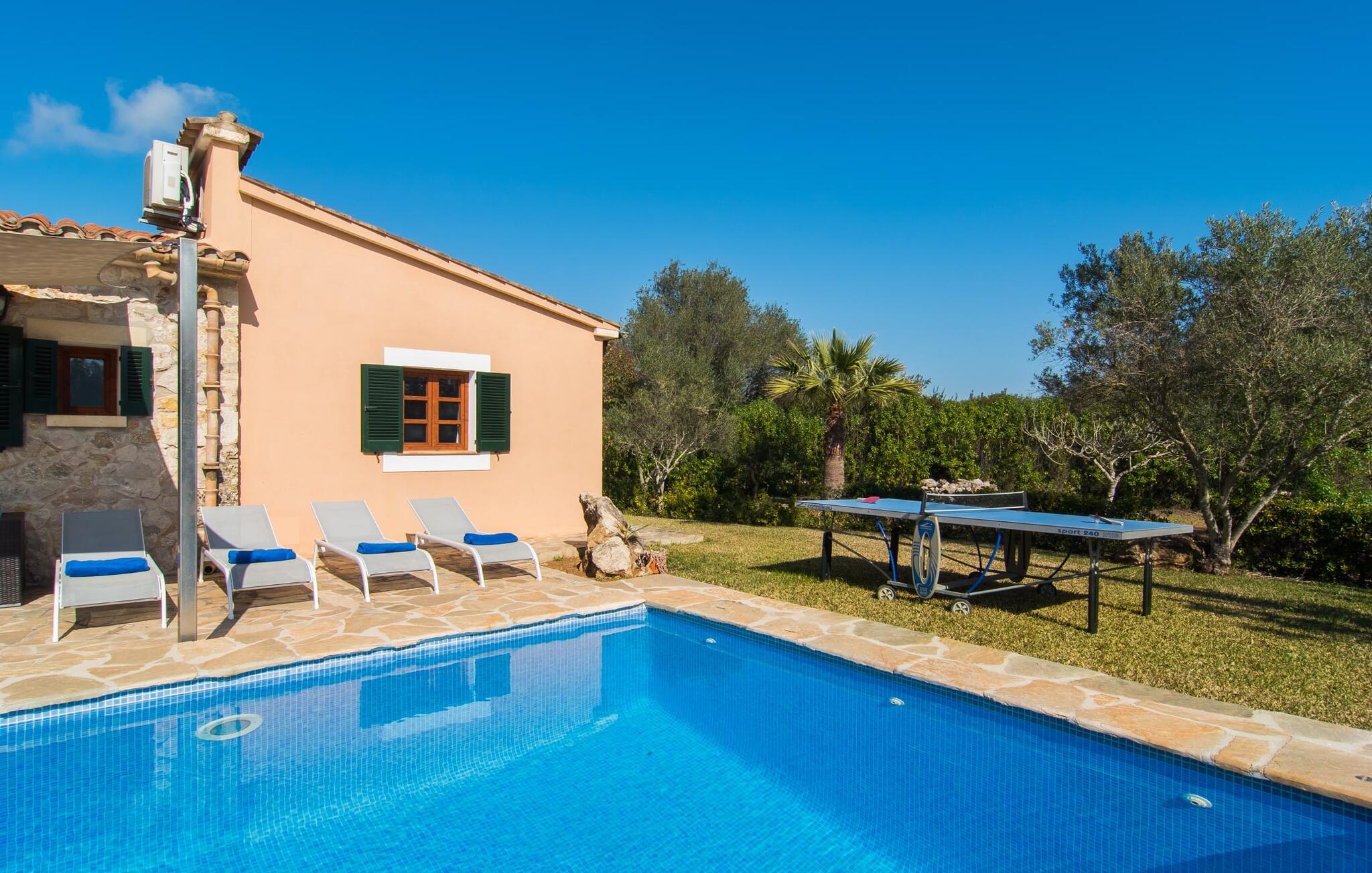 Hvis I også godt kan lide at være fysisk aktiv på ferien, og gerne i den betagende smukke natur, så er fincaen “Villa Joana del Cami de Marina” det rette sted for jer. Det typiske mallorcanske landsted ligger i en vidunderlig idyllisk beliggenhed omgivet af natur og stilhed. I den oaselignende have med privat pool og græsplæner kan I slappe af blandt palmer, oliventræer og oleandere. Hvis I vil have en rigtig udfordring, så bestig Puig Tomir, den højeste top af de imponerende Tramuntana-bjerge, berømt blandt bjergbestigere. Hvis I foretrækker noget lidt mere stille, kan I placere jeres designer liggestol i solen eller i skyggen af solforteltet efter jeres svømmetur. I haven kan I prøve bordtennis eller deltage i en dartkonkurrence. For mere distraktion, besøg de middelalderlige kystbyer Alcúdia eller Pollença. Mens I er i gang, kan I dykke direkte ind i Middelhavets vidder på de mange strande i de lange bugter af samme navn. Efter hjemkomsten fra jeres rejse kan I forberede en middelhavsgrill i det overdækkede udekøkken og afslutte aftenen med at slappe af i loungen med udsigt over naturen. Det melodiøse navn på dette traditionelle feriehus er lovende og gør præcis, hvad I ville forvente af et tilbud fra vores portefølje. Op til seks personer vælger "Villa Joana del Cami de Marina", et indbydende landsted med vintage-øjeblikke, som deres feriemål. Takket være det centrale varmt-kolde klimaanlæg er booking muligt hele året rundt - køligt om sommeren og hyggeligt og varmt i den fristende lavsæson. Glæd jer til et åbent koncept i stue og spisestue med et halvåbent, fuldt udstyret køkken, som visuelt er adskilt af en amerikansk disk. Uanset hvilken gruppe af familie eller venner I rejser med, kan I nyde en god nats søvn i alle værelser med aircondition, hver med to enkeltsenge eller en dobbeltseng. To soveværelser deler badeværelse med badekar. Den tredje har direkte adgang til et andet badeværelse med bruser. Den rustikke stil lavet af natursten, træ og hygge med moderne elementer tilbyder den vellykkede og afslappede feriestemning, som vi sætter stor pris på ved fincaferier på Mallorca. For at sikre alles fred og fritid, er fester og fester ikke tilladt. Beliggende i en landlig idyl er fincaen "Villa Joana del Cami de Marina" med sin praktiske og drømmende landstedsstemning et ideelt feriehus. På den nordlige del af øen, tæt på de majestætiske bjerge i Tramuntana-bjergene, kan I nyde absolut fred. Den nærmeste by er Pollença fra middelalderen, hvor I kan shoppe. Hvis I har lyst til at besøge stranden, kan I vælge mellem strandene i Alcúdia eller Pollença-bugten, cirka 8 km væk. Bemærk venligst, at denne ejendom ikke accepterer ungdomsgrupper eller polterabender. En ungdomsgruppe på denne ejendom består af personer på 25 år eller derunder. Book ikke denne ejendom, hvis I er en ungdomsgruppe eller en polterabendgruppe, da jeres reservation vil blive afvist, når den er booket, hvilket også kan være tilfældet ved ankomst til ejendommen eller under jeres ophold, og I vil ikke modtage en refusion.