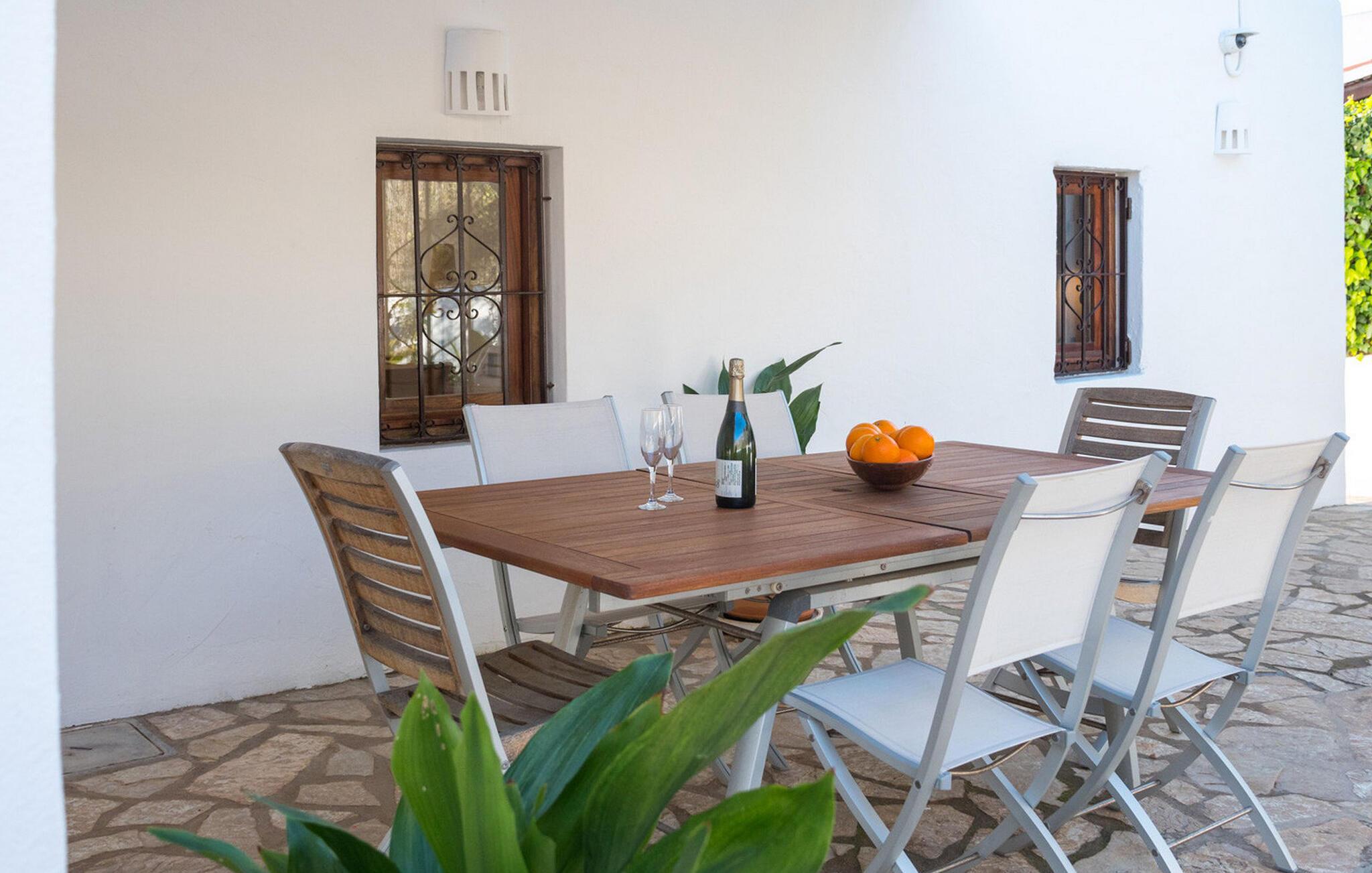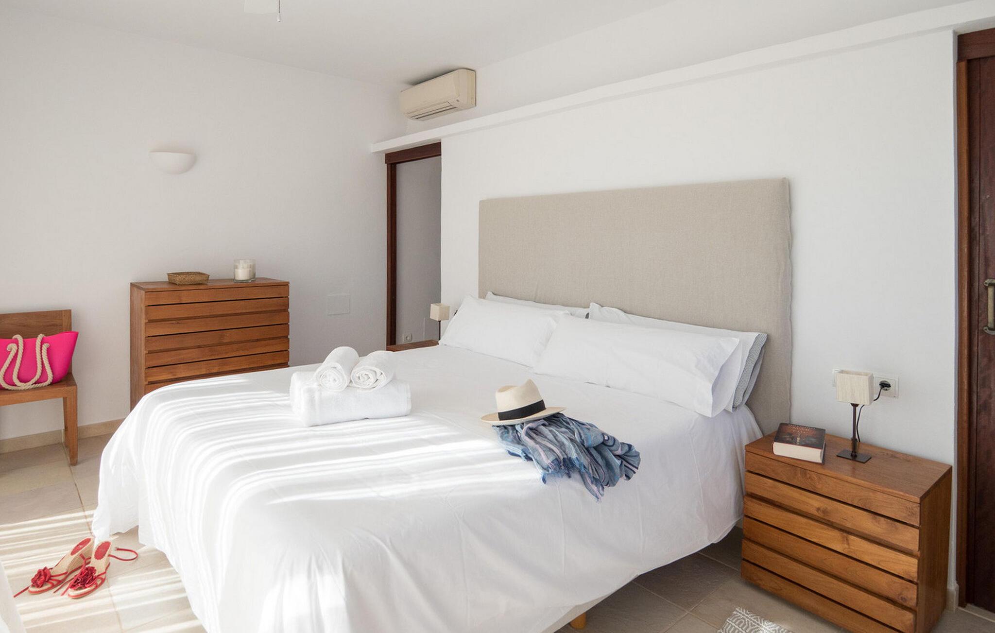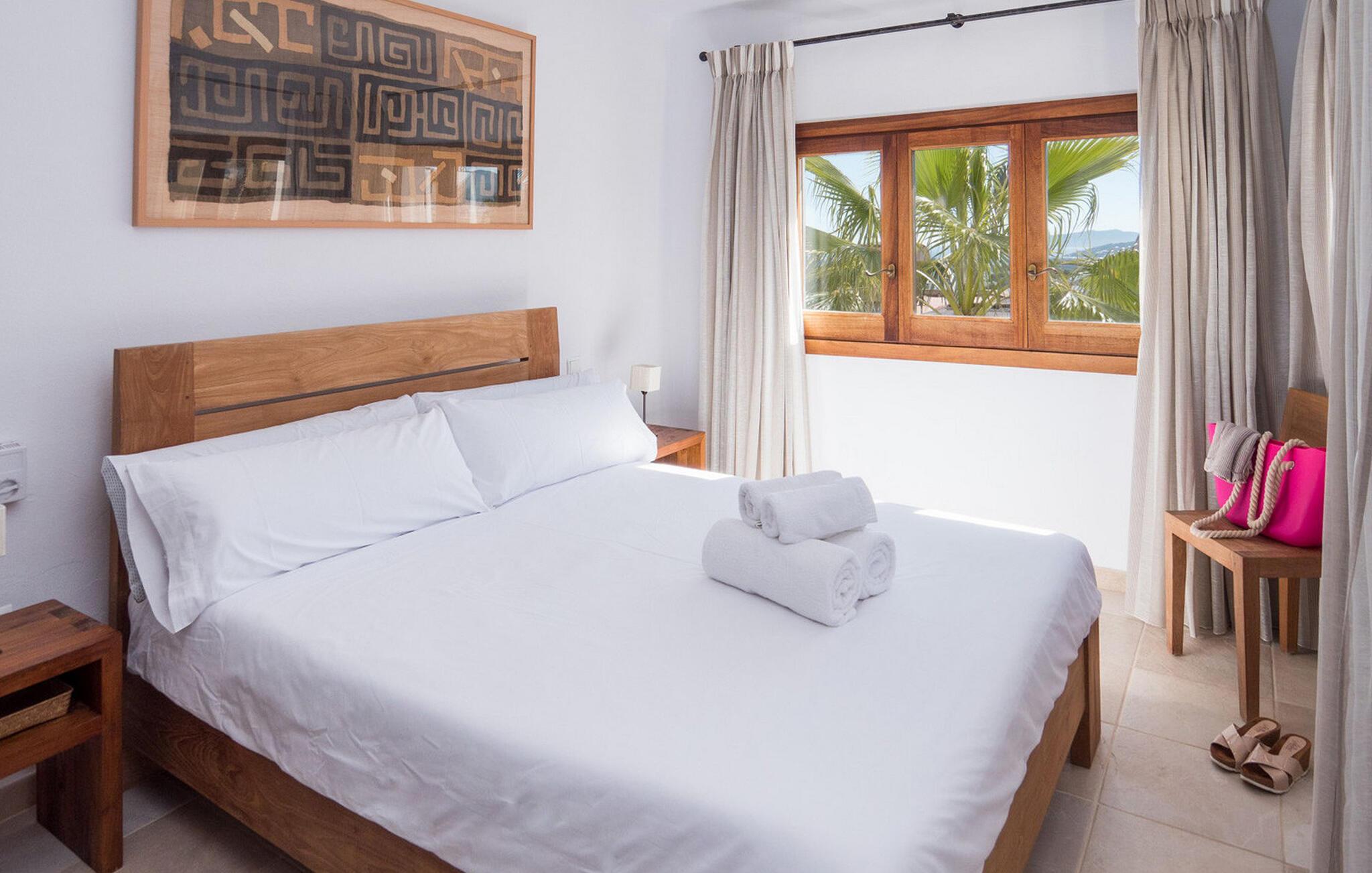 Villaen har alle bekvemmeligheder for at sikre et problemfrit ophold, herunder aircondition, WiFi, satellit-tv, pengeskab og ugentlig rengøring med frisk sengelinned og håndklæder. Uanset om I slapper af ved poolen eller spiser under stjernerne, tilbyder denne villa en Ibiza-oplevelse som ingen anden.