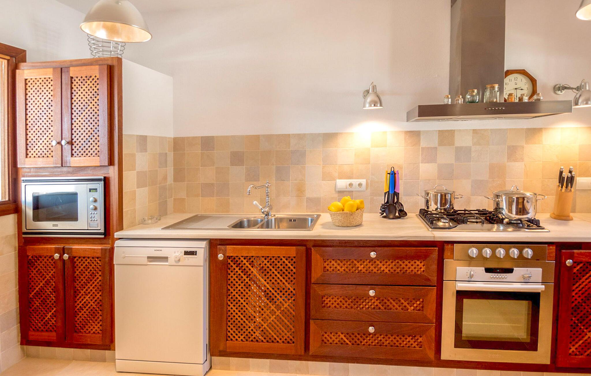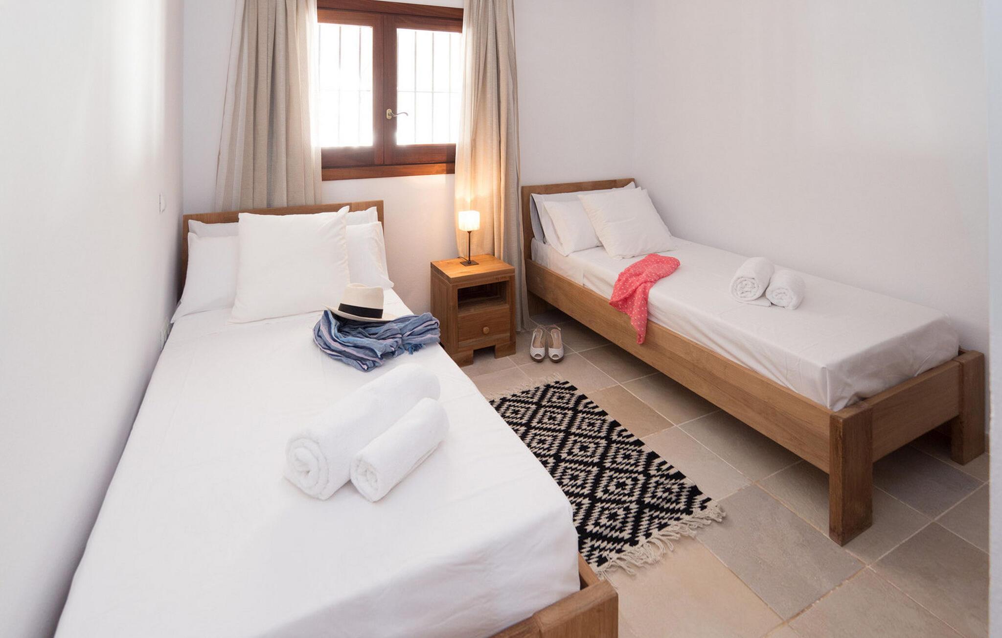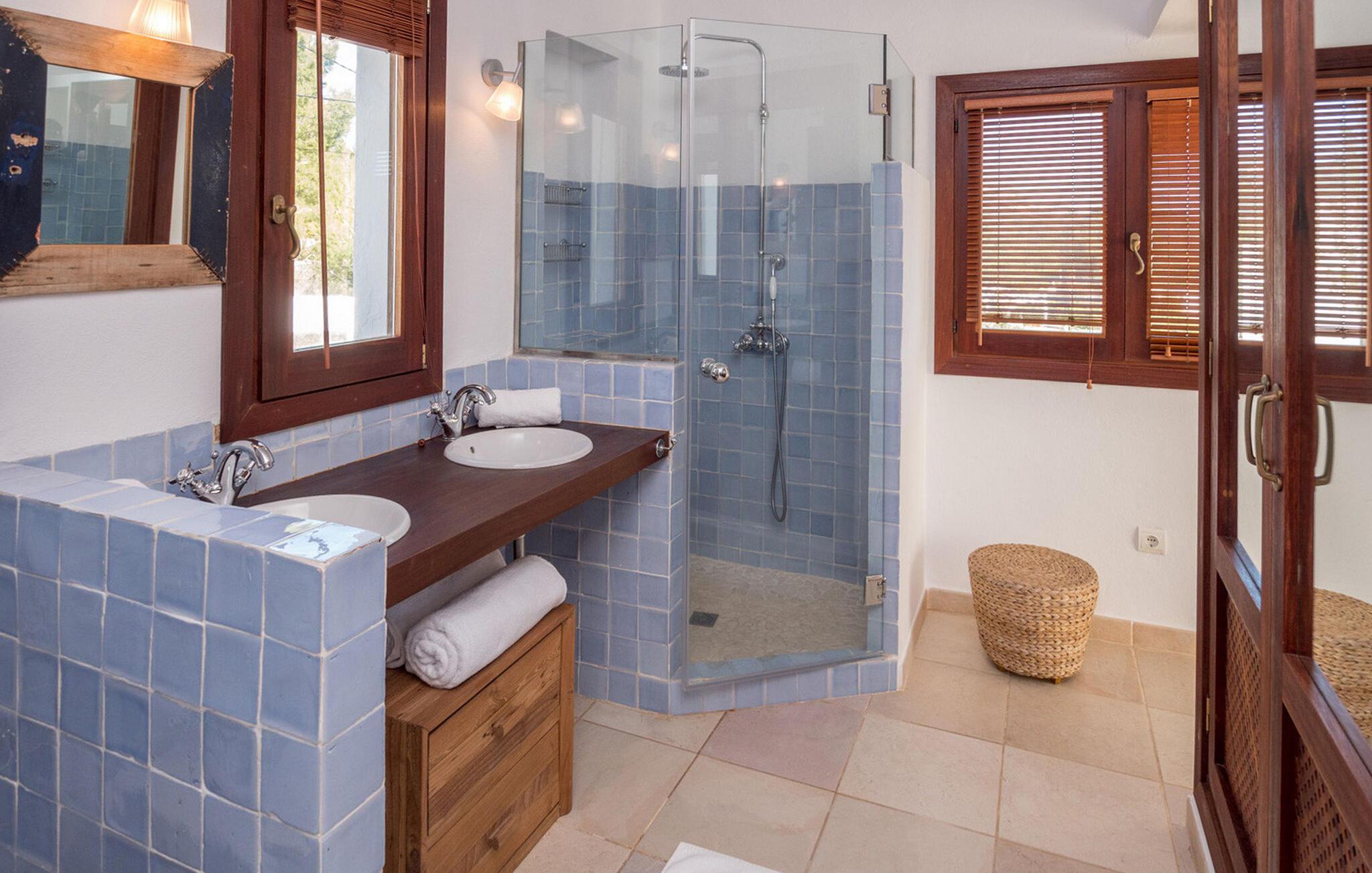 Villaen har alle bekvemmeligheder for at sikre et problemfrit ophold, herunder aircondition, WiFi, satellit-tv, pengeskab og ugentlig rengøring med frisk sengelinned og håndklæder. Uanset om I slapper af ved poolen eller spiser under stjernerne, tilbyder denne villa en Ibiza-oplevelse som ingen anden.