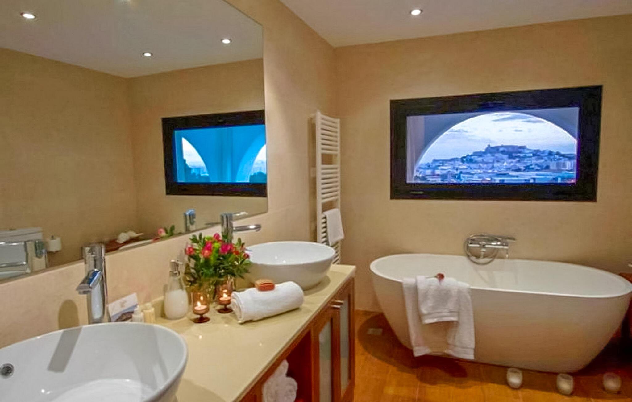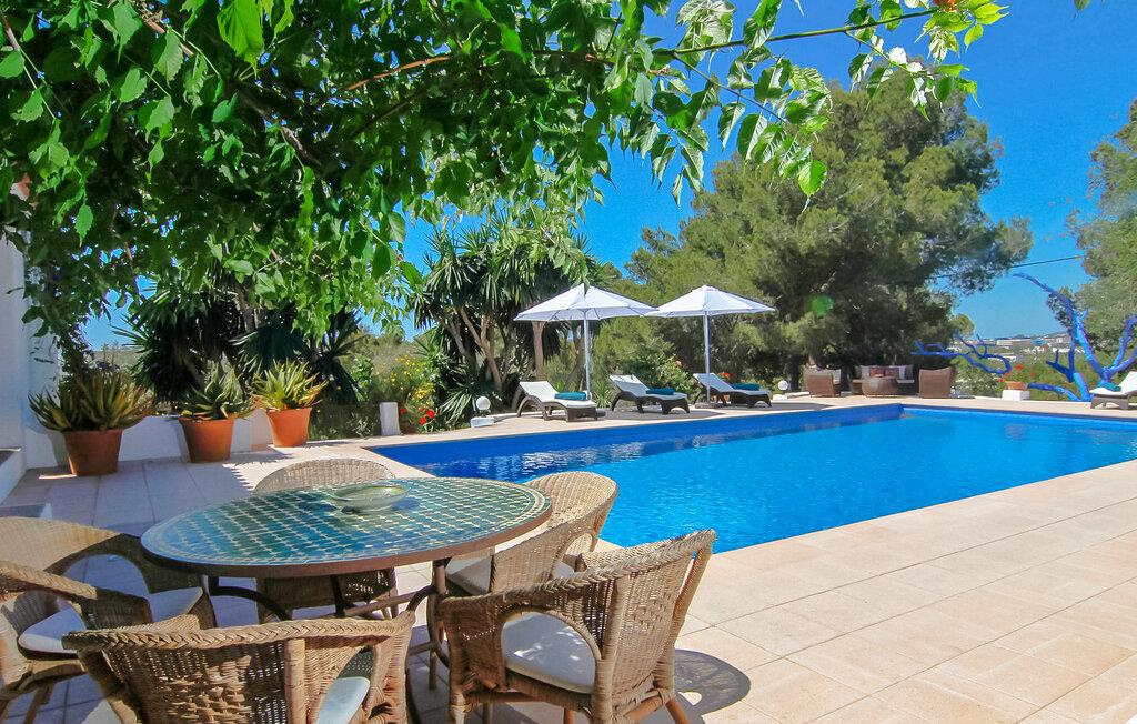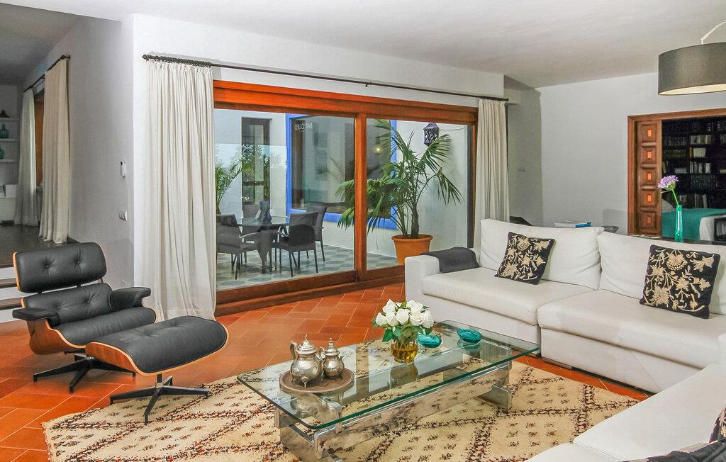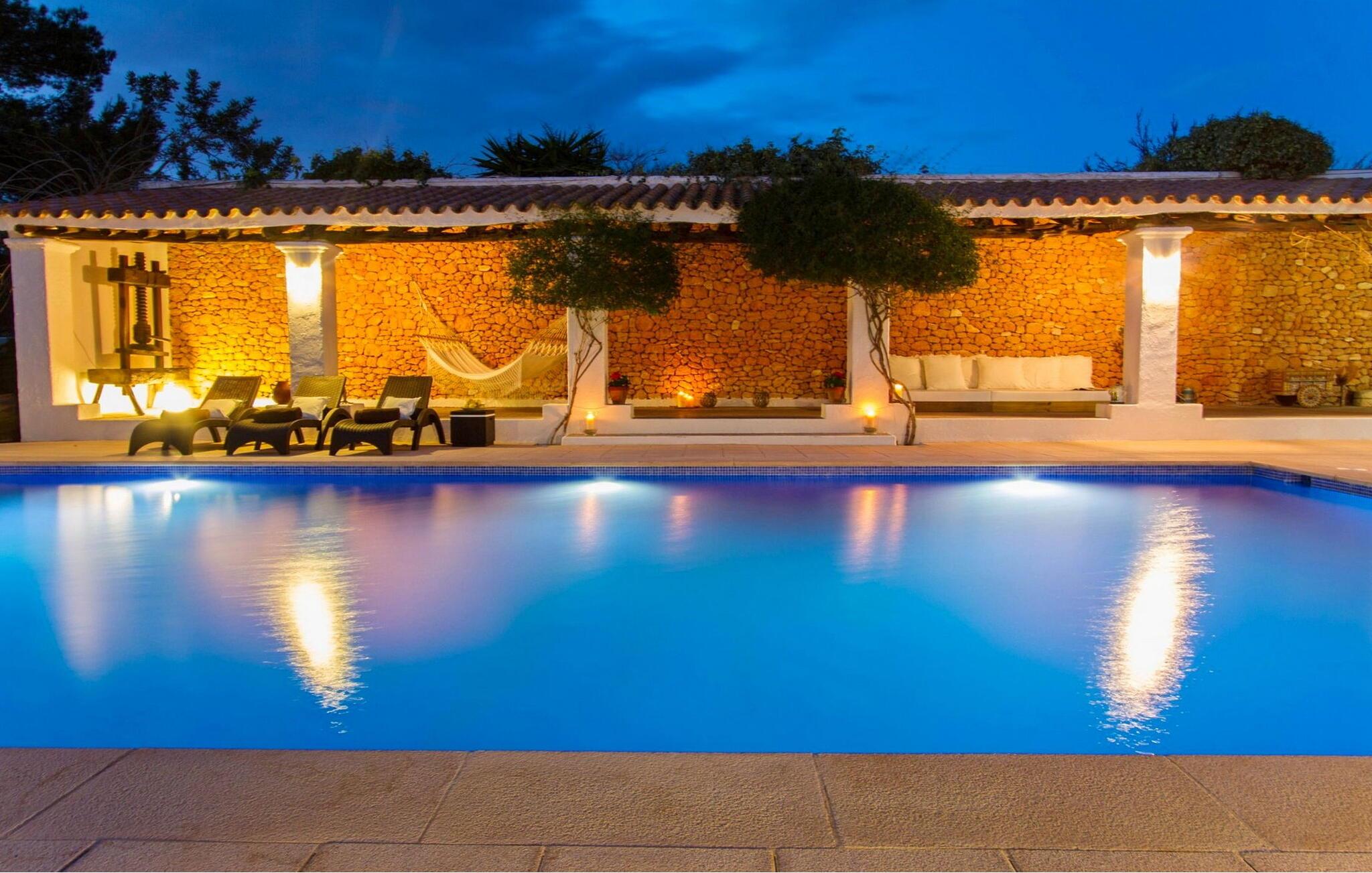 Charmerende hus kun få minutter fra Talamanca strand, Ibiza centrum og marinaen. Dette er et feriehus i Fincallorca. I stueetagen er der et fuldt udstyret køkken og en stue med TV. Soveværelserne er: 1 soveværelse med 2 enkeltsenge og badeværelse med bruser, 1 soveværelse med enkeltseng med badeværelse med bruser, 1 dobbeltværelse med badeværelse med bruser. 1 bungalow med køkken, stue, soveværelse med dobbeltseng og badeværelse med bruser, tilgængelig fra huset eller udenfor. Swimmingpool, indbygget grill og veranda. 1. sal: 1 soveværelse med 2 enkeltsenge med badeværelse med bruser, 1 soveværelse med dobbeltseng og badeværelse med badekar. Der er 2 terrasser udenfor (ikke egnet til børn på grund af lave mure). Huset har aircondition i alle soveværelser (undtagen enkeltværelset). Rengøring hver 7. dag med skift af sengelinned og håndklæder. Daglig grundrengøring 2 timer, 6 dage om ugen.
