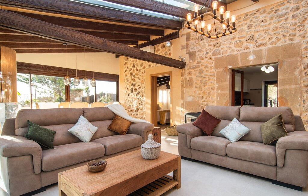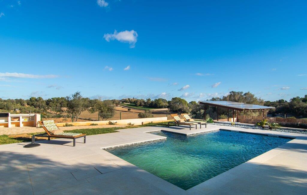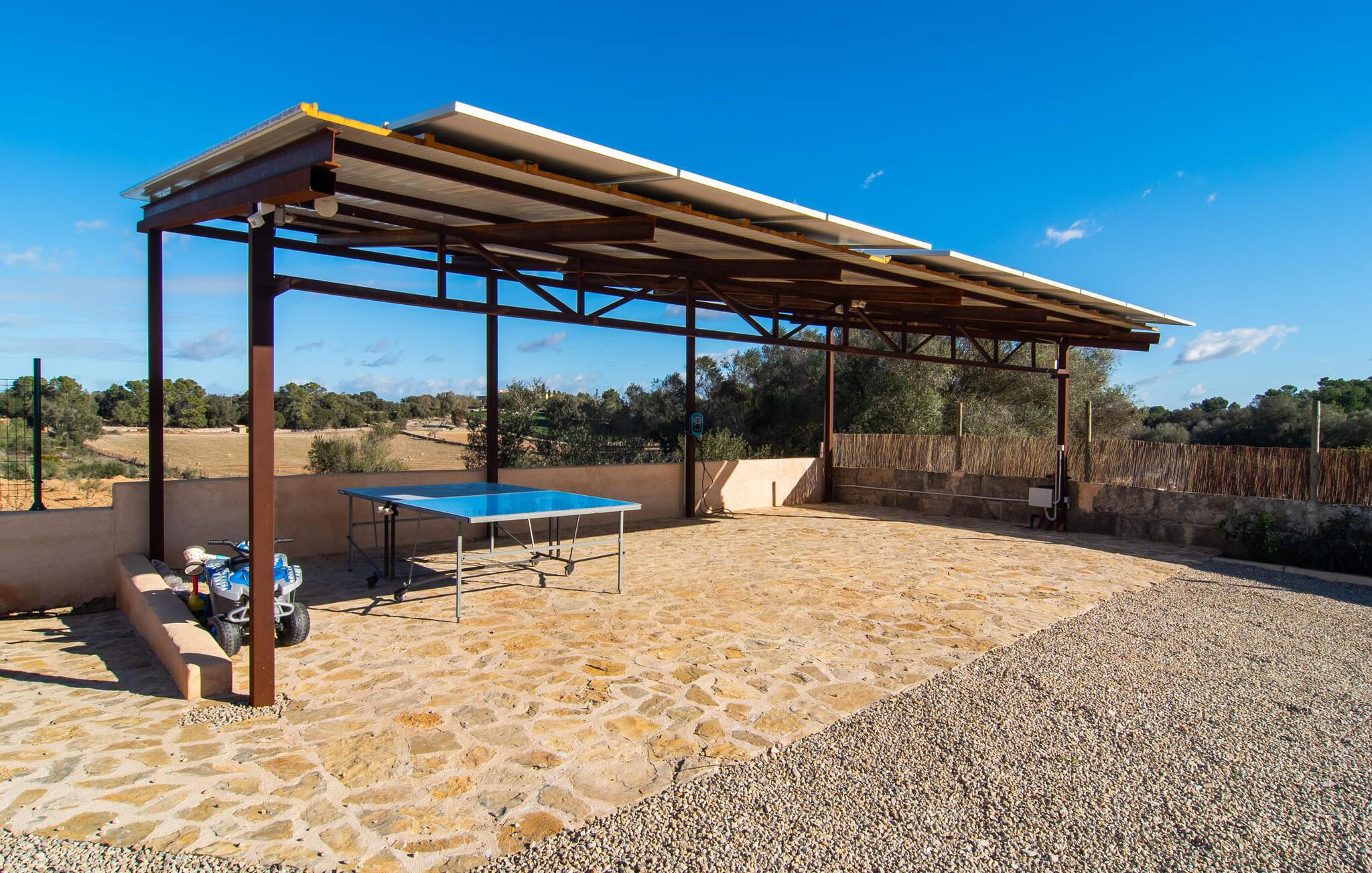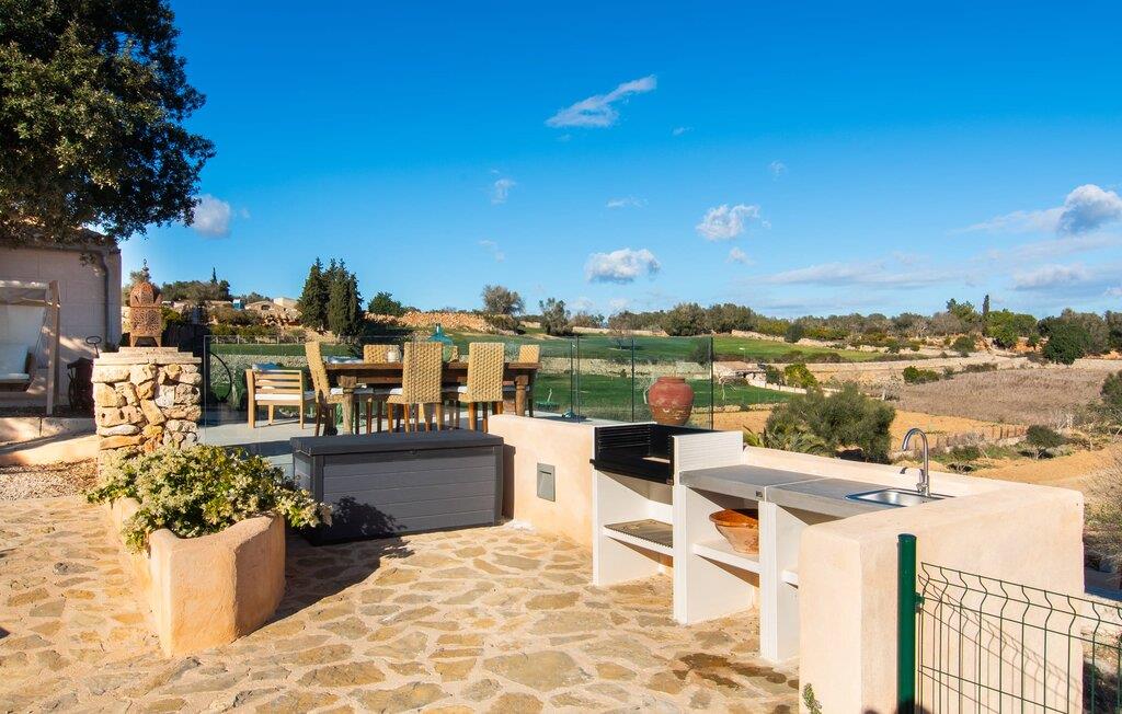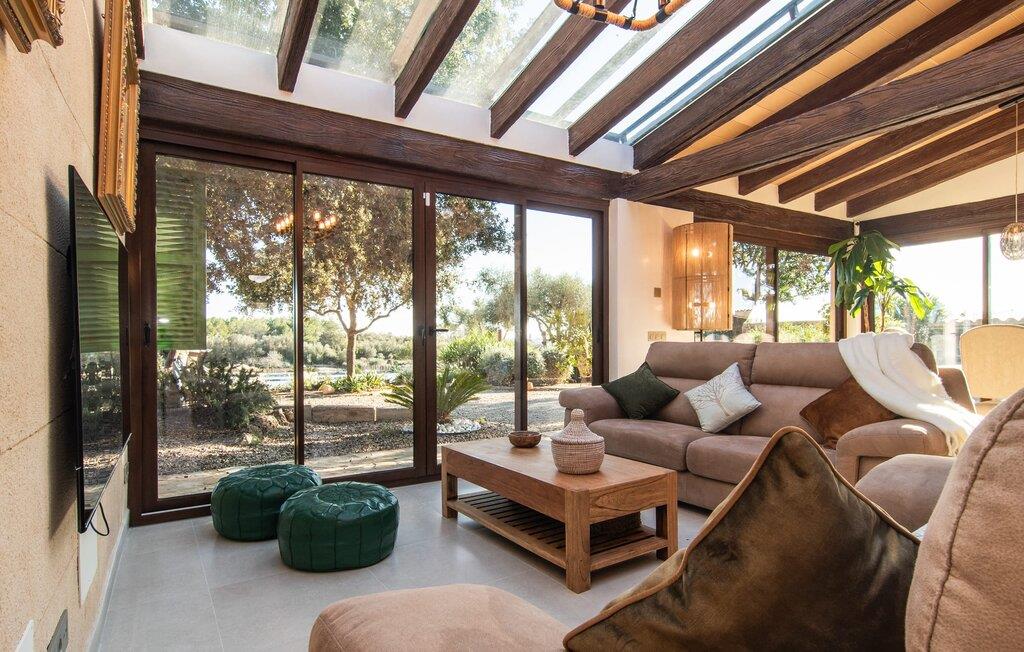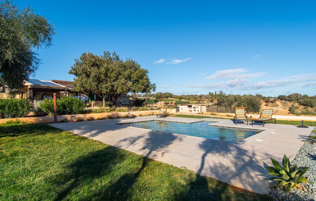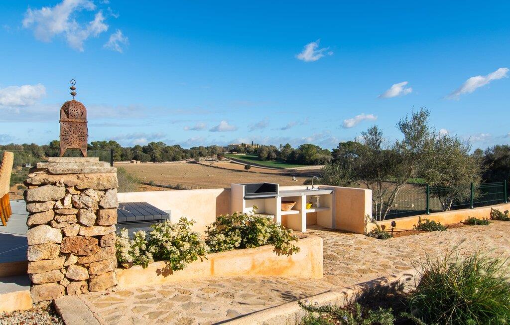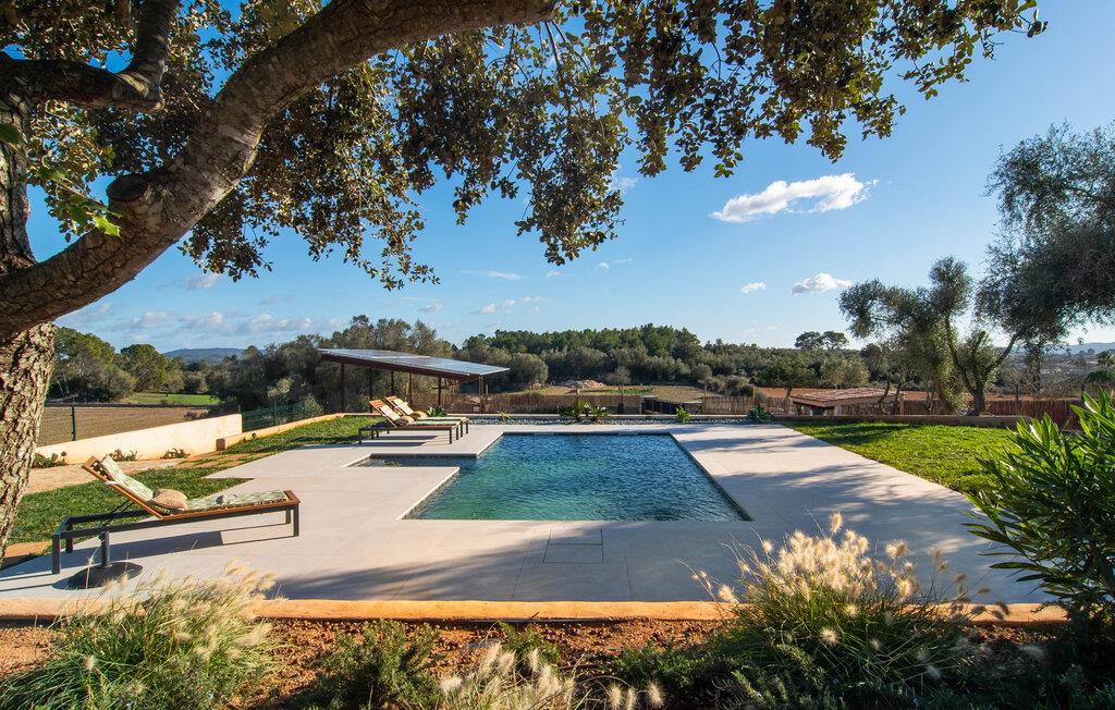 Det lidt terrasserede område på fincaen "Villa Xary" byder på meget hyggelige hjørner til at nyde timerne udendørs. Der er rummelige områder med komfortable møbler og en spiseplads med behagelig naturlig skygge fra træerne. Svømmehallen er udstyret med et modstrømssystem, så atleter kan gennemføre deres sædvanlige træning. Der er en terrasse rundt om huset, hvor I kan tilbringe afslappende stunder på ethvert tidspunkt af dagen. Udekøkkenet med grill er et fantastisk sted at nyde et al fresco måltid. Husdyrene i området giver dette feriehus en hyggelig bondegårdsstemning. Det åbne koncept stue/spisestue er omdrejningspunktet i hjemmet. Store gulvfliser, lyse pastelvægge og talrige vinduer indrammer den moderne indretning. Smagfuld belysning komplementerer den æstetiske og hyggelige atmosfære. Det lyse, højkvalitets og fuldt udstyrede køkken byder på alt hvad I behøver til en ferie med selvforplejning. Soveværelserne er også smagfuldt og komfortabelt indrettede. To højkvalitetsbadeværelser, hvoraf det ene har eget bad, afrunder den luksuriøse boligkomfort i dette hus. Midt på Mallorca, kun omkring 1 km fra Lloret de Vistalegre (med bibliotek, tennis- og paddlebaner osv.) og kun omkring 26 km fra nogle smukke strande, ligger den økologiske bondegård "Villa" Fra haven har I en fantastisk udsigt over landsbyen. I kan shoppe og slentre for eksempel i middelalderbyen Sineu (ca. 4 km) eller i den større Inca (17 km), som er kendt for sine lædervarer og vin.