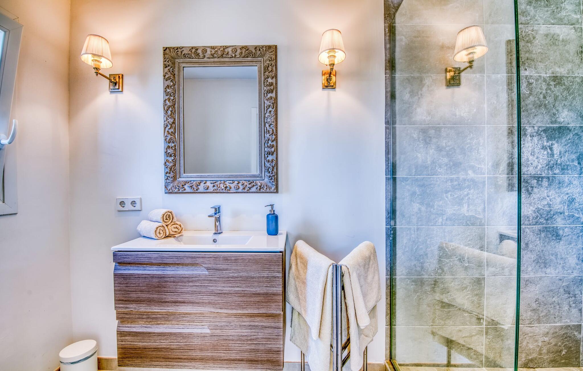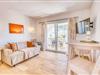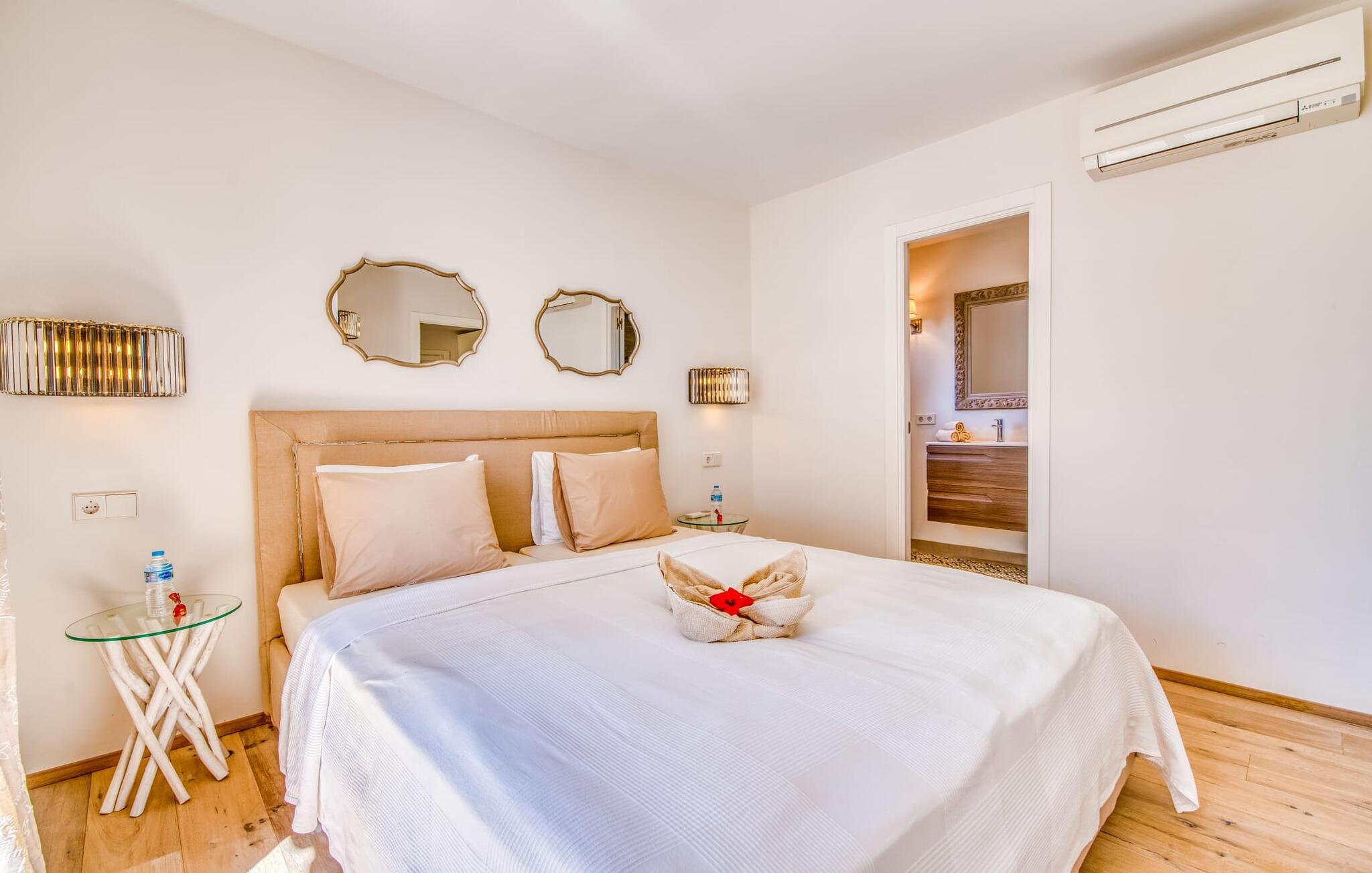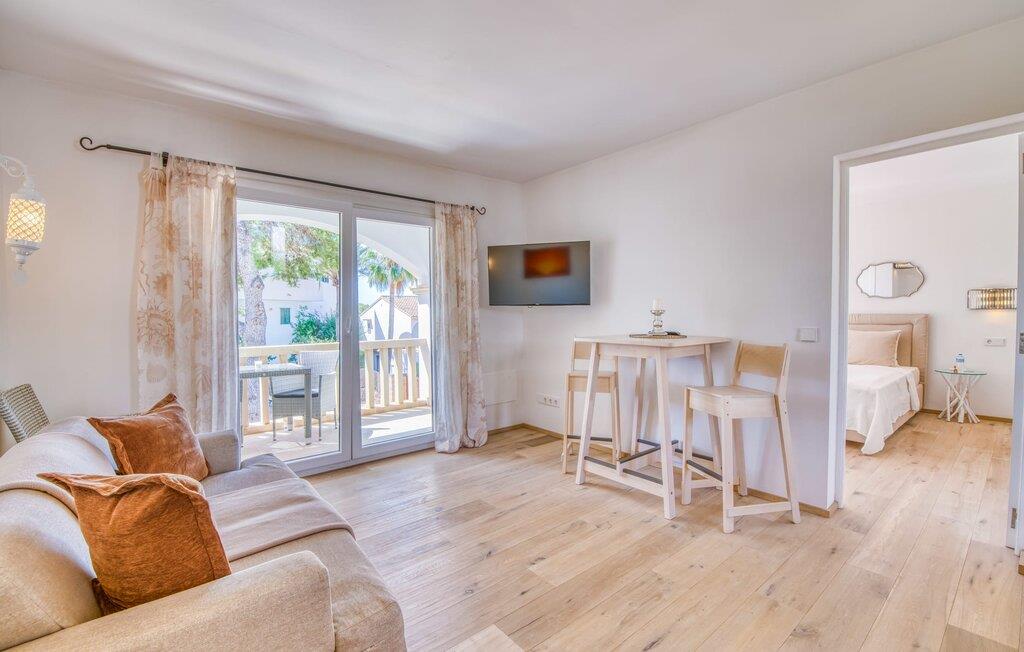 Denne ferielejlighed "Village Cala Santanyi" på Mallorca er det perfekte tilflugtssted for par, der leder efter komfort og moderne stil, med nærhed til stranden højt på deres liste. Beliggende i et velholdt boligkompleks omgivet af græsplæner, høje palmer og en smuk fælles pool byder lejligheden på rolige, parklignende omgivelser med små stier, der snor sig gennem grunden. Mens havet kun ligger en kort gåtur væk, er den runde pool med liggestole, parasoller og en udendørs bruser et fristende alternativ. Lejligheden på 1. sal har en lys, luftig atmosfære med et harmonisk interiør af høj kvalitet. Stuen/spisestuen er åben til et fuldt udstyret køkken i højglans. Ved siden af dette er det komfortable, airconditionerede soveværelse med et elegant badeværelse med bruser. Både soveværelset og opholdsstuen har adgang til den private terrasse, hvor komfortable siddepladser giver et perfekt sted at slappe af og nyde udsigten over komplekset og ud til havet. Et højdepunkt for teknologielskere: Lejligheden har en 30 GB WiFi-forbindelse for hurtig internetadgang. Denne charmerende ferielejlighed ligger i et boligkompleks i Cala Santanyi. Her kan I nyde attraktiv nærhed til havet og bugten Cala Santanyi, som kan nås på kun 2 minutter til fods. Havet her har en behagelig fin sandbund. Barer, restauranter og supermarkeder ligger også inden for gåafstand. Naturreservatet Mondrago, kun få minutter væk, er også et besøg værd.