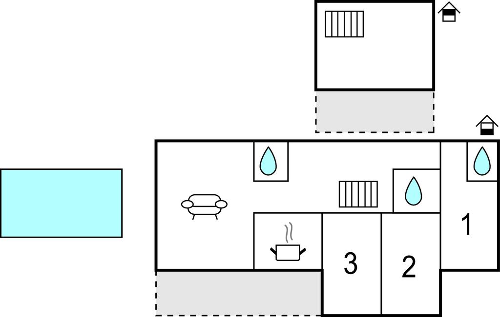 Badeværelse 3m2 (nr. 2) - WC. Varmt og koldt vand. Bruser