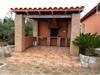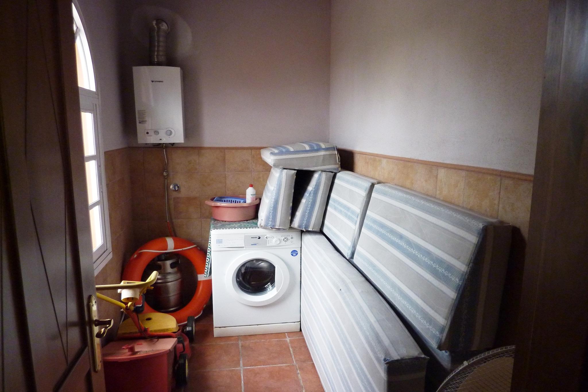 Stueetage: (Stue(Fjernsyn(parabol), pejs, stereoanlæg), spisestue, Køkken(komfur(gas), kaffemaskine, ovn, mikrobølgeovn, opvaskemaskine , køle-fryseskab), soveværelse(2x enkeltseng), soveværelse(halvandenmandsseng), soveværelse(dobbeltseng(150 x 180 cm), barneseng), Soveværelse med badeværelse(køjeseng, bruser, håndvask, toilet, bidet), badeværelse(badekar med bruser, håndvask, toilet, bidet), bryggers(vaskemaskine), terrasse(privat, overdækket)) terrasse, have(privat, indhegnet), havemøbler, grill(trækul), parkering, liggestole, swimmingpool(privat, 9 x 4 m., opened from Apr upto and including Oct), barnestol