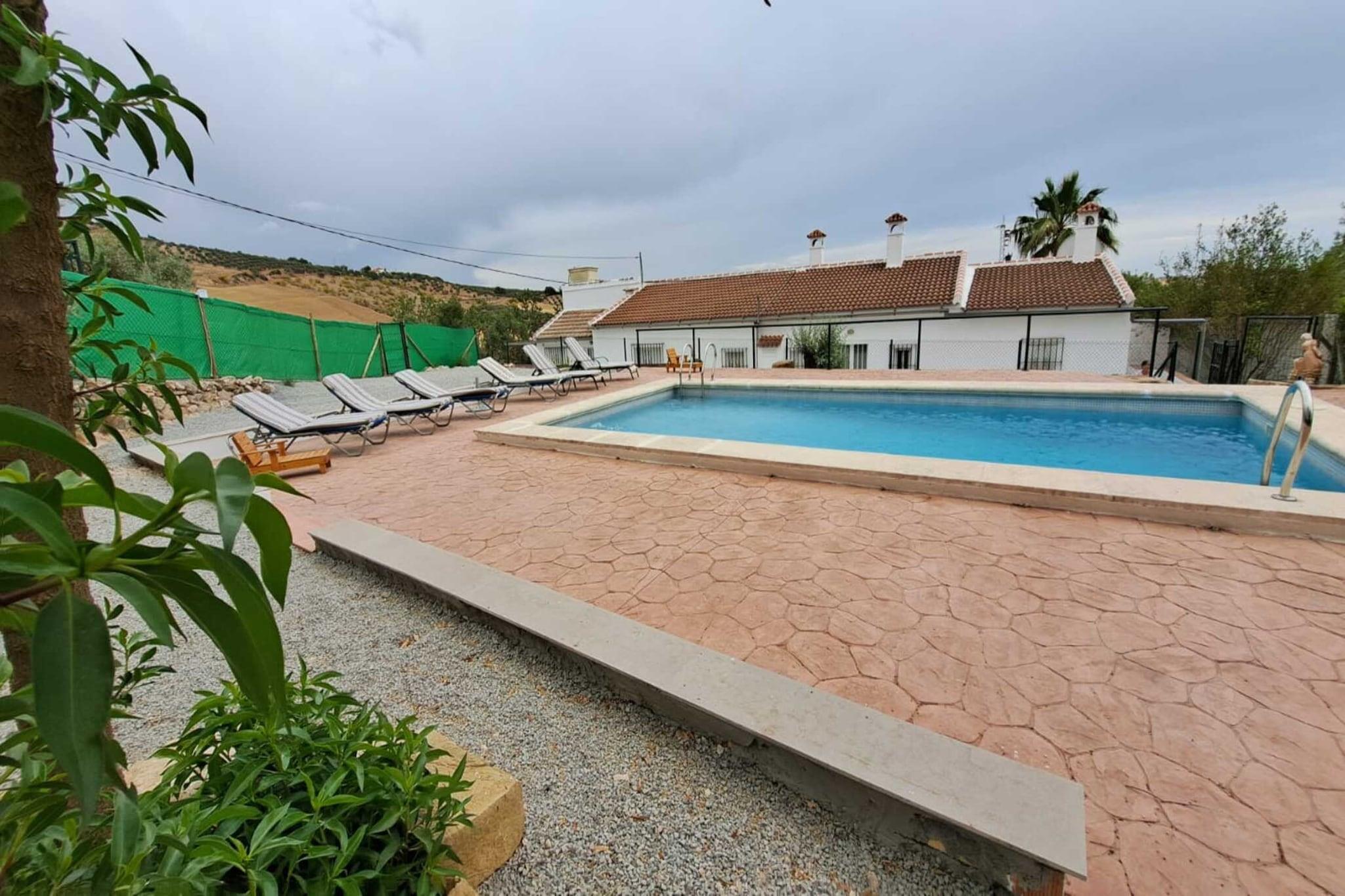 Nyd en uforglemmelig ferie fra denne attraktive bolig med en central beliggenhed tæt på naturen. Det er ideelt til en afslappende ferie med familie eller venner. Villanueva de la Concepción er en malerisk destination, der vil glæde både naturelskere og historieinteresserede. Landsbyen er omgivet af betagende landskaber, især i den nærliggende El Torcal Natural Park, kendt for sine unikke kalkstensformationer dannet gennem millioner af år og tilbyder en spektakulær udsigt for vandrere. Villanueva de la Concepción har også en rig historie, der går tilbage til oldtiden. Beundre ruinerne af fæstningen Villeta og de nærliggende forhistoriske grotter i La Higuera. Du kan også besøge for at se resterne af slottet Jeva. Hermitage of Jeva blev bygget ved kongeligt dekret fra den katolske monark i 1497. Derudover er byen stolt af sin traditionelle gastronomi, med lækre lokale retter med gedeost, olivenolie og vin. Supermarkedet ligger 3 km derfra, La Joya ligger 2 km derfra, og Hotel La Fuente del Sol 2,8 km derfra. Et besøg i Lobo Park 10,7 km, Caminito del Rey 23,4 km, Torcal de Antequera 18,4 km og Antequera 19, km (World Heritage City) er også meget muligt. Antequera Dolmens Site er beliggende i hjertet af Andalusien i det sydlige Spanien, stedet omfatter tre megalitiske monumenter: Dyssen i Menga, Dyssen i Viera og tholos af El Romeral og to naturmonumenter: La Peñas bjergformationer de los Enamorados og El Torcal. Det er Malagas første spanske ejendom og megalitkompleks, der er blevet erklæret som verdensarv. Flere ruter gennem dets imponerende landskaber får dig til at gå gennem unikke steder skulptureret af naturens luner som Palace of Nájera - Museum of City of Antequera, San Sebastián Parish Kirke - San Sebastián-pladsen, San Judas-skråningen og udsigtspunktet Las Almenillas. Monumentalt sted for Alcazaba, giganternes bue og den kongelige kollegiale kirke Santa María la Mayor. Feriehuset har egen indendørs swimmingpool a