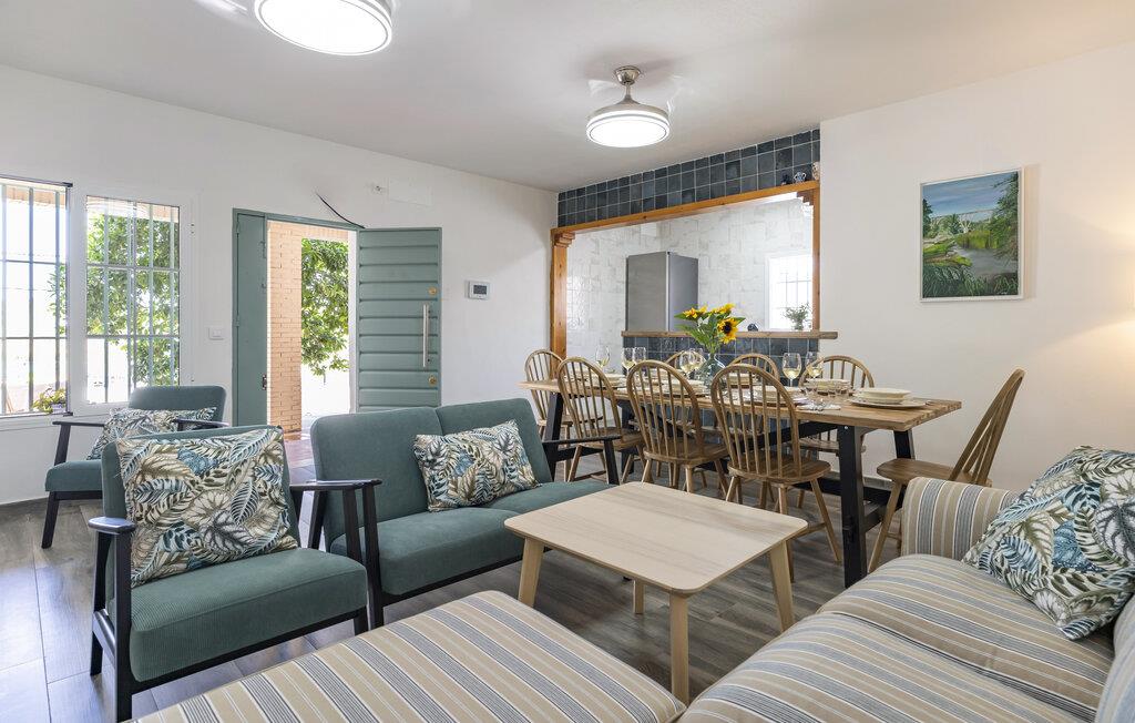 Velkommen til denne skønne bolig, der ligger i dejlige omgivelser ikke langt fra Sevilla og byder på godt med plads og komfort til en ferie med hele familien. Indretningen fremtræder flot og indbydende med behagelige farveskalaer og gode møbler, der gør det nemt at slappe af med det samme, I ankommer. Tilbered familiens livretter i det veludstyrede køkken, nyd måltiderne ved spisebordet og flad ud om aftenen i sofaområdet, mens I lægger planer for de kommende dage.