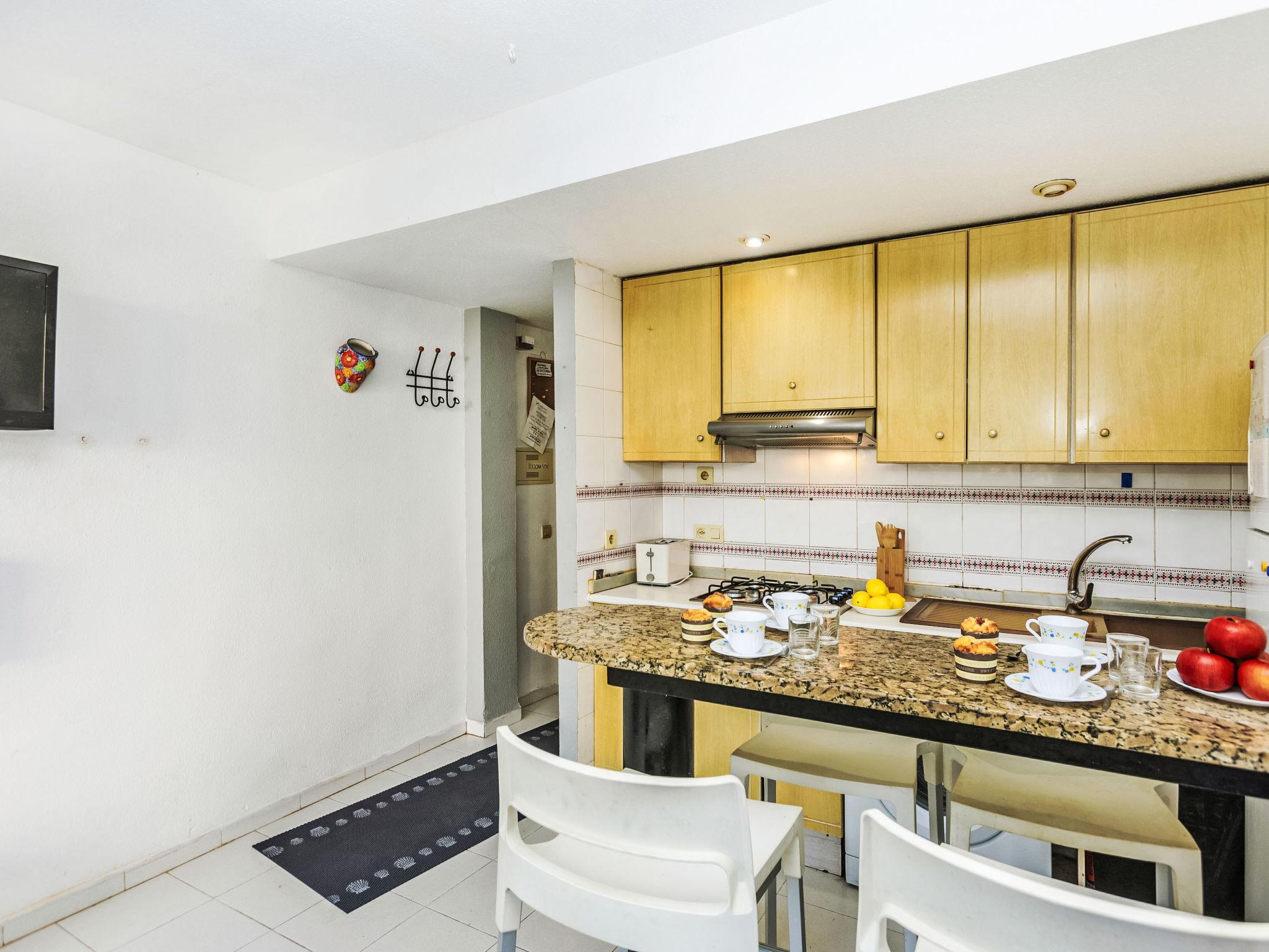 "Kike Beach", 2-room apartment 39 m2. Practical furnishings: living/dining room with dining table, digital TV and fan. 1 room with 1 french bed (1 x 135 cm, length 190 cm), fan. Small, open kitchen (4 hot plates, oven, toaster, microwave, electric coffee machine). Bath/WC. No heating option. Large terrace 16 m2. Terrace furniture. Facilities: washing machine, iron, hair dryer. Internet (WiFi, free). Parking space n F02. Please note: non-smokers only. Maximum 1 pet/ dog allowed. TV only ES. No lift. VT-45392CS // Reg. Nr.: ESFCTU00001200900019753100000000000000000VT-45392-CS9