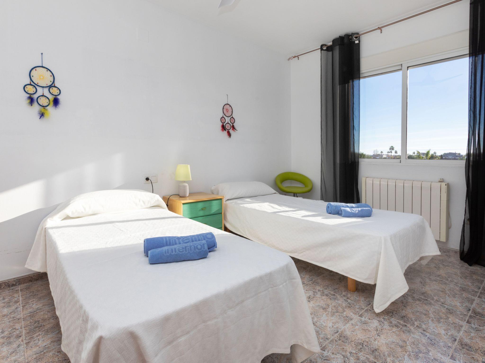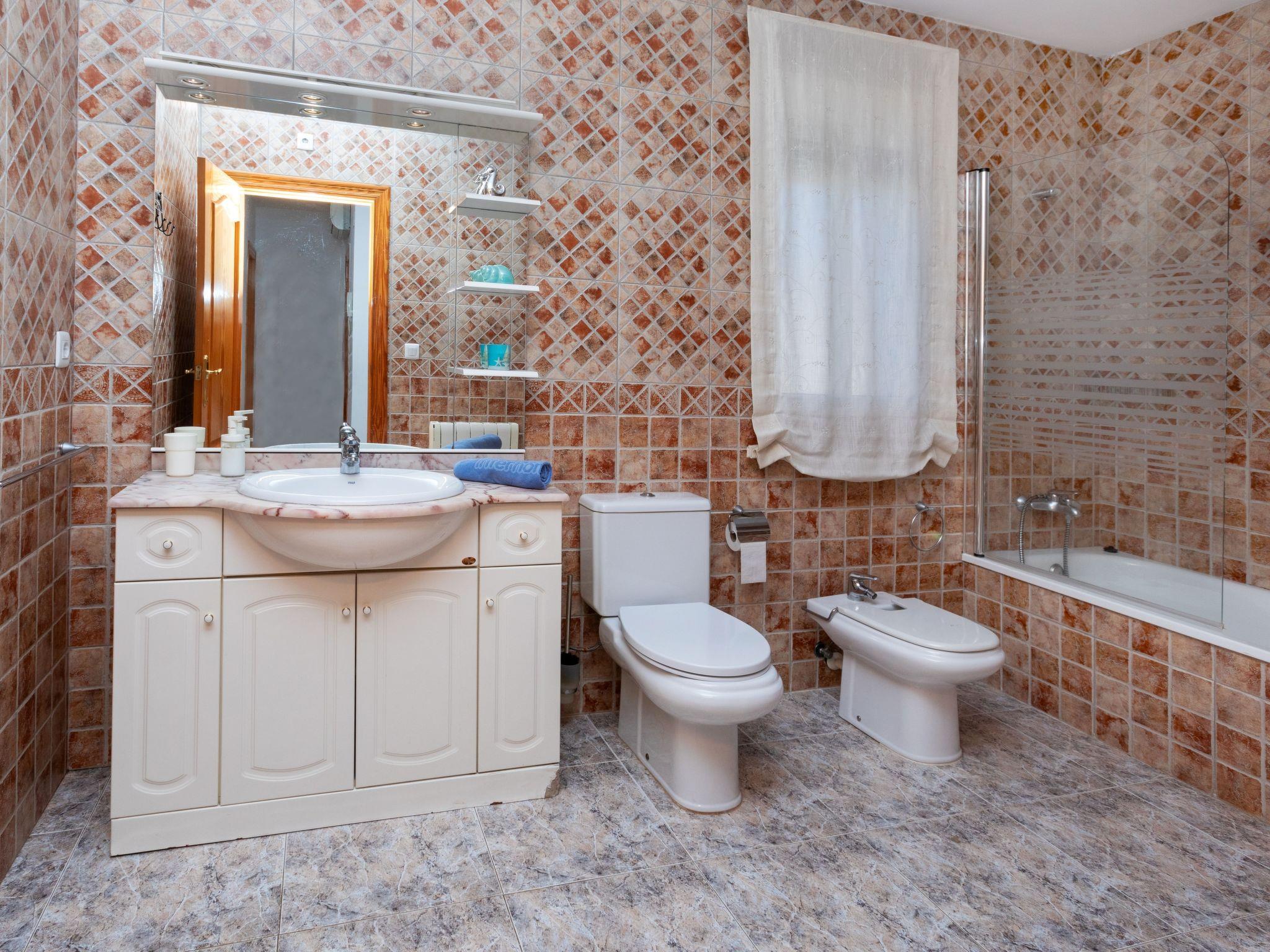 4-room semi-detached house 140 m2 on 2 levels. Comfortable furnishings: living/dining room with dining table, digital TV and air conditioning. Exit to the terrace. Large kitchen (oven, dishwasher, 3 ceramic glass hob hotplates, toaster, microwave, freezer, electric coffee machine, Capsules for coffee machine (Senseo not incl.), combination microwave) with dining table and boiler (80 litres). Exit to the patio. Shower/WC. Upper floor: 1 children's room with 2 beds (90 cm, length 190 cm), fan. 1 room with 1 french bed (1 x 150 cm, length 190 cm), air conditioning and fan. Exit to the terrace. 1 room with 1 french bed (1 x 150 cm, length 190 cm), air conditioning and fan. Bath/WC. Heating not available in all rooms. Balcony, large terrace, patio. Terrace furniture, barbecue, deck chairs (2), sitting area. Distant view of the sea and the swimming pool. Facilities: washing machine, iron, hair dryer, logs (free). Internet (WiFi, free). Parking (fenced 2 cars), garage (1 car). Please note: non-smoking house. Maximum 1 small pet/ dog allowed. TV only ES. No lift. VT-41121CS // Reg. Nr.: ESFCTU000012009000273846000000000000000000VT-41121CS2