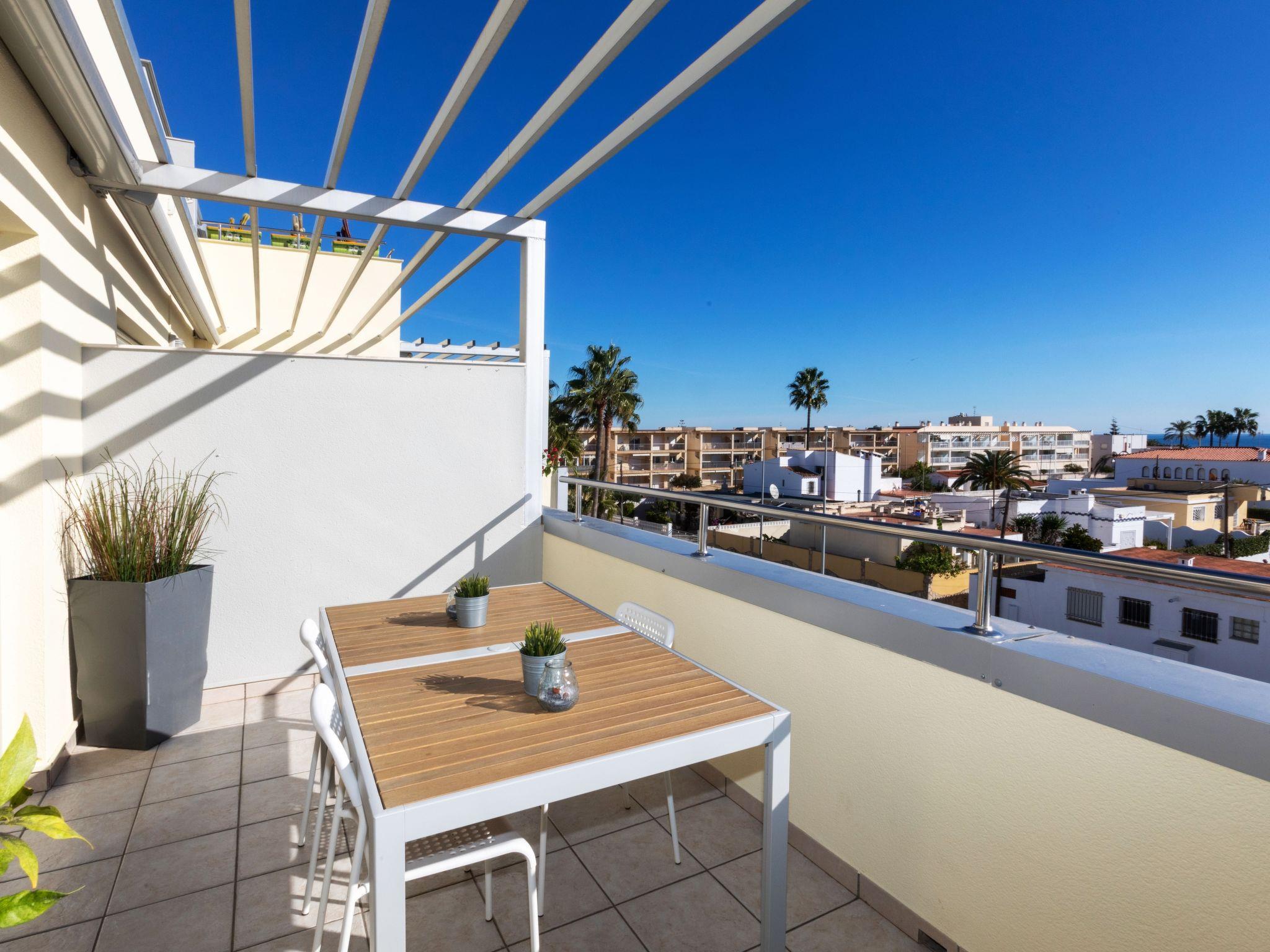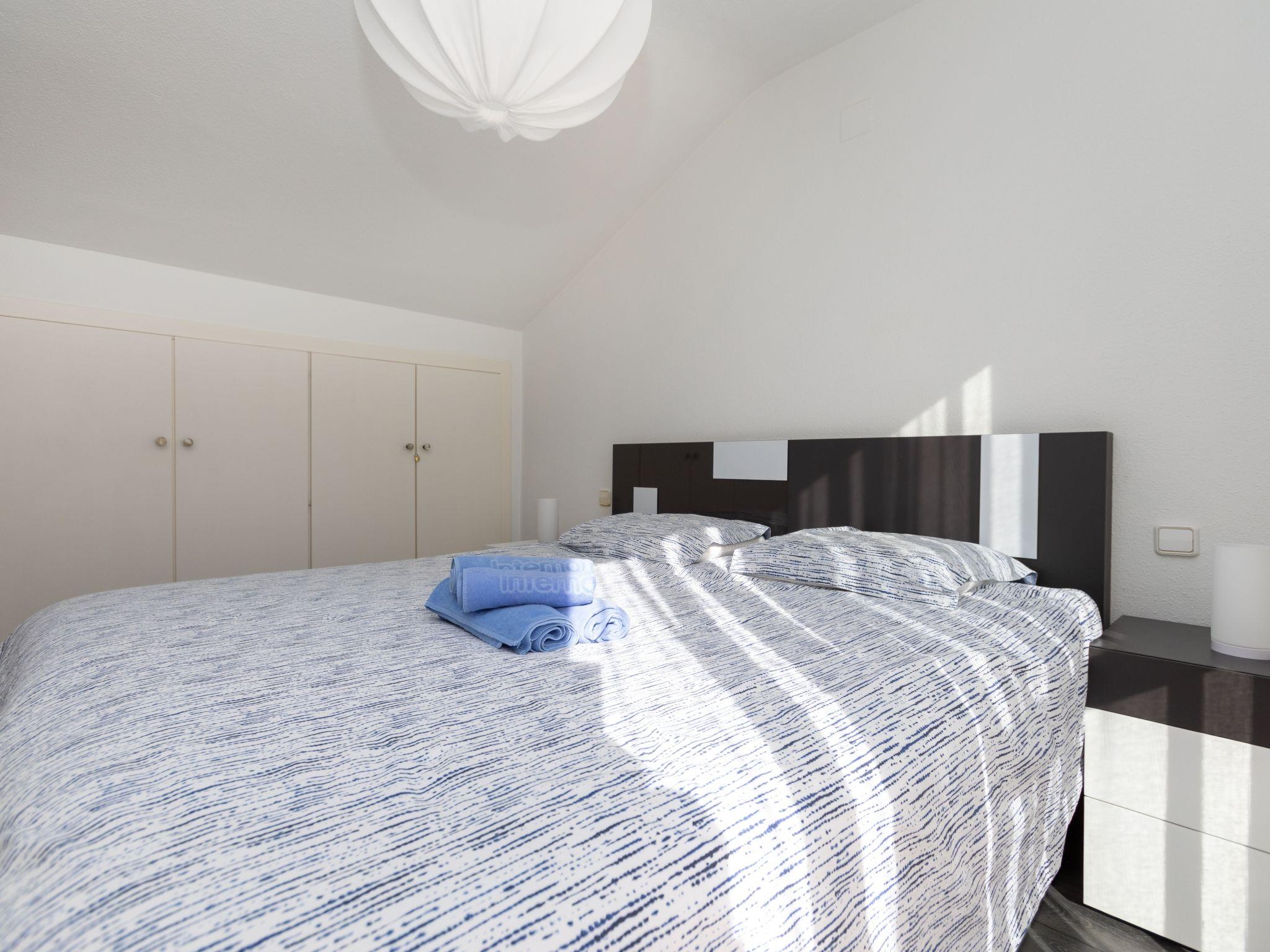 "Como siempre", 3-room maisonette 90 m2 on 2 levels. Object suitable for 4 adults. Partly with sloping ceilings, comfortable furnishings: living/dining room with electric shutters. 1 room with 2 beds (80 cm, length 200 cm), shower/WC. Exit to the terrace. Open kitchen (oven, dishwasher, 4 induction hot plates, toaster, kettle, microwave, freezer, electric coffee machine, Capsules for coffee machine (Dolce Gusto) extra) with electric shutters. Sep. WC. Boiler (80 litres). Upper floor: 1 room with 1 french bed (1 x 180 cm, length 200 cm), shower/WC, air conditioning and electric shutters. 2 large terraces. Terrace furniture, deck chairs (2). Distant view of the sea. Facilities: washing machine, dryer, iron, hair dryer. Internet (WiFi, free). Parking, garage (1 car) at the house. Please note: maximum 1 small pet/ dog allowed. TV only ES. " smart TV. VT-42638CS // Reg. Nr.: ESFCTU000012009000264196000000000000000000VT-42638CS2