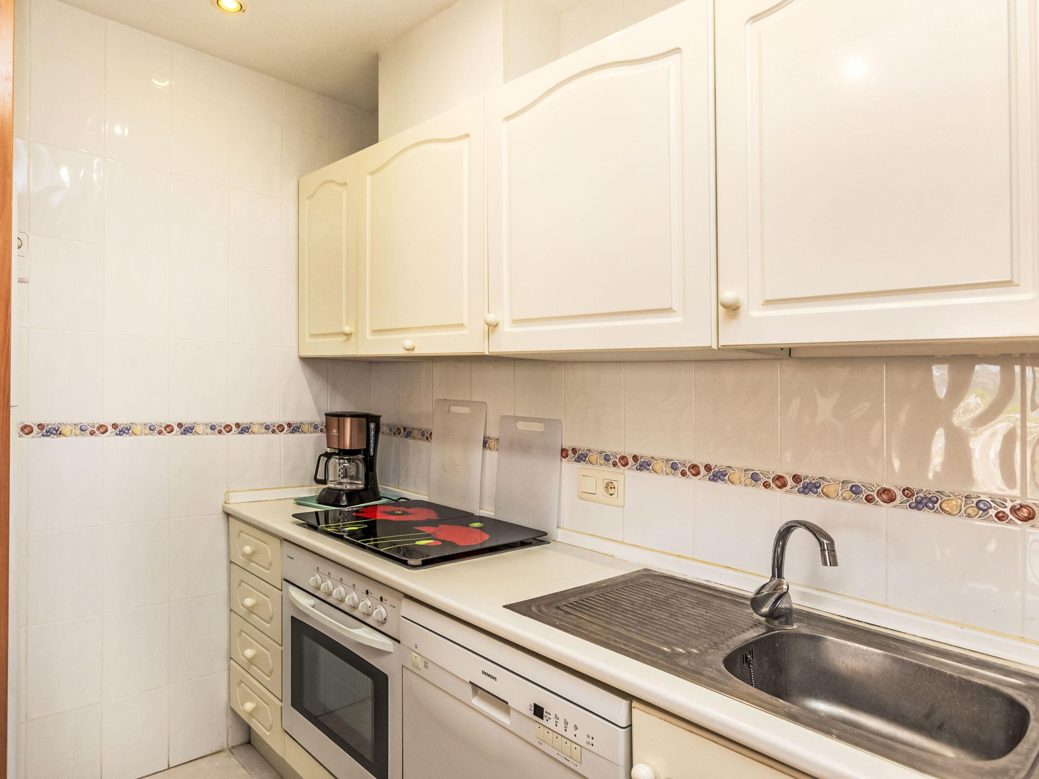 "Cala Gonzalez II", 3-room apartment 70 m2, on the ground floor. Practical furnishings: living/dining room with bar, digital TV, air conditioning and forced-air heating. 1 room with 1 french bed (1 x 135 cm, length 190 cm). 1 room with 2 beds (90 cm, length 190 cm). Open kitchen (oven, dishwasher, 4 ceramic glass hob hotplates, toaster, kettle, microwave, freezer, electric coffee machine) with bar. Bath/WC, shower/WC. Boiler (50 litres). Terrace. Terrace furniture, deck chairs (2). Facilities: washing machine, iron, hair dryer. Internet (WiFi, free). Parking space n 60 (roofed). Please note: non-smokers only. TV only ES. No lift. VT-45091CS // Reg. Nr.: ESFCTU000012009000223070000000000000000000VT-45091CS8