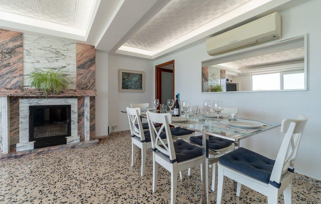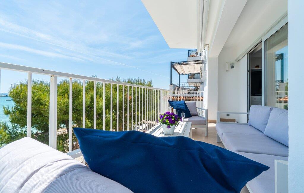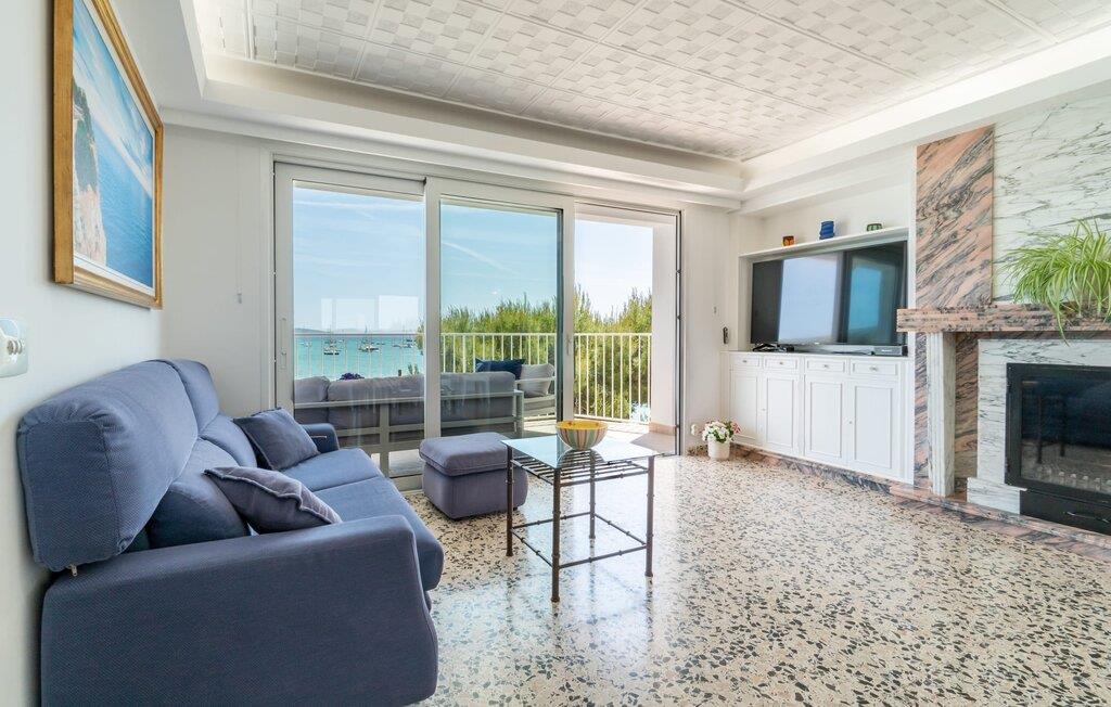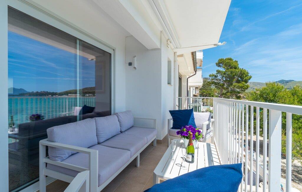 Hvis I ønsker at være omgivet af den blide lyd af bølgerne, der ruller ind på kysten dag efter dag under jeres ferie på Mallorca, er denne bolig en absolut gave. Det er svært at bo tættere på havet – kun jordpromenaden adskiller jer fra vandet. Fra jeres private altan, som er delvist overdækket og også kan skygges med et fortelt, har I perfekt udsigt til det hele, kan se travlheden på land og vandet og nyde en kølig drink i ro og mag. Og hvis I har lyst til at forfriske jer selv i den enorme naturlige pool, skal I bare klatre de få trin fra anden sal og et par trin mere ned, så er I i det kølige vand. Det er også behageligt køligt inde i den klimatiserede ferielejlighed. Hvide vægge og store gulvfliser skaber en stilfuld stemning i stue-spisestuen, der støder op til altanen, som har en behagelig sofa og et smukt bord til seks medrejsende. Fladskærms-tv'et monteret på væggen er tilgængeligt for god underholdning, men vil måske næppe konkurrere med den fantastisk smukke udsigt over Pollença-bugten, som også kan nydes indendørs. På kølige aftener skaber den rummelige pejs med marmoromkring, som kan bruges hvis det ønskes, en særlig atmosfære. Det fuldt udstyrede køkken ligger ved siden af og har alle de nødvendige redskaber til uafhængige dage med selvforplejning. De tre hyggelige soveværelser ligger på den anden side af huset. To badeværelser, et med bruser og et med badekar, fuldender rummet i dette feriehus på Mallorca, som kan være et ukompliceret sted at bo på et eksklusivt sted for par eller en familie, der rejser sammen. I den smukke nordlige del af Mallorca ligger ferielejligheden "Voramar on Pinewalk" med en førsteklasses beliggenhed lige ved havet. Fra balkonen kan I se ud over stranden ved jeres fødder, mens I nyder jeres privatliv. Huset ligger på den berømte fyrrepromenade af samme navn, en ren gågade i Pollença-bugten. Afhængig af vindretningen kan I her og der se den nærliggende vej, som forbinder jer glimrende til forskellige destinationer. I kan dog sagtens slentre rundt i byen til fods, shoppe og besøge restauranter.