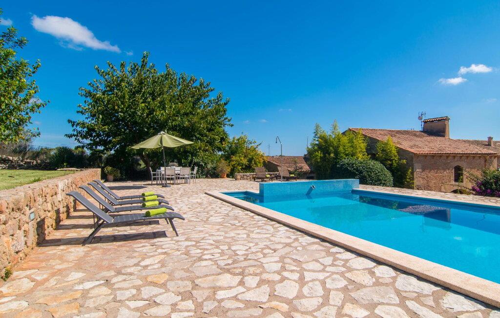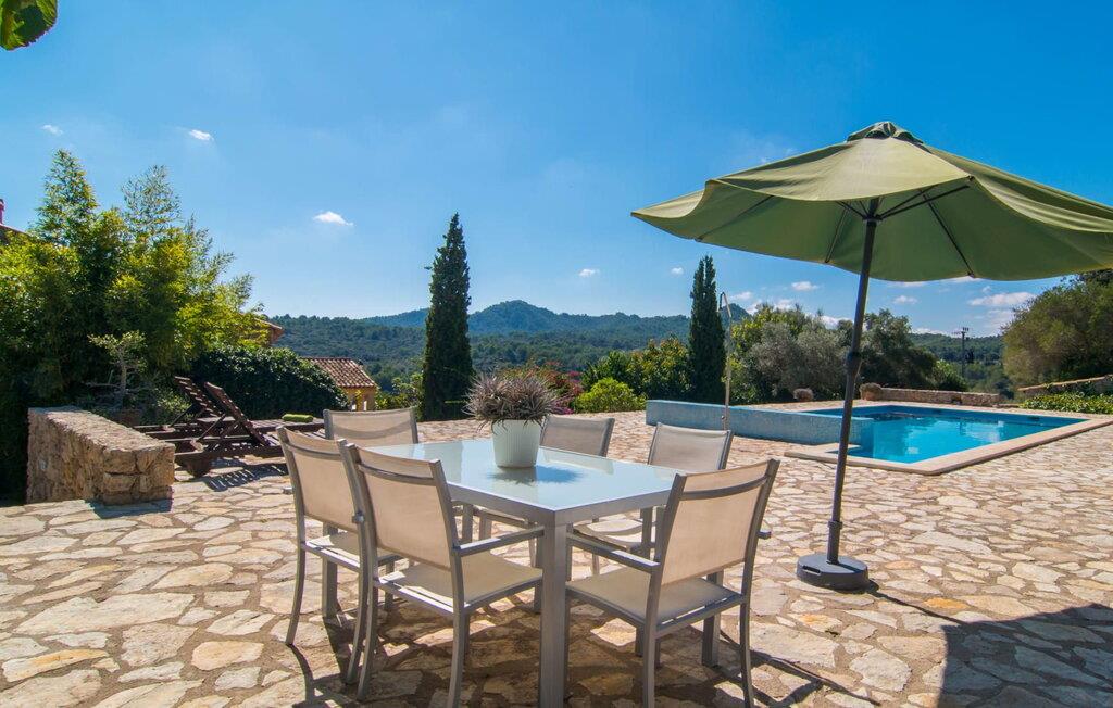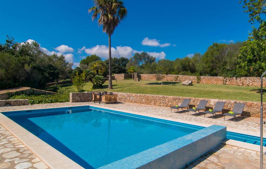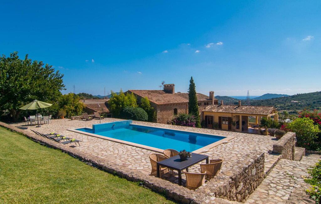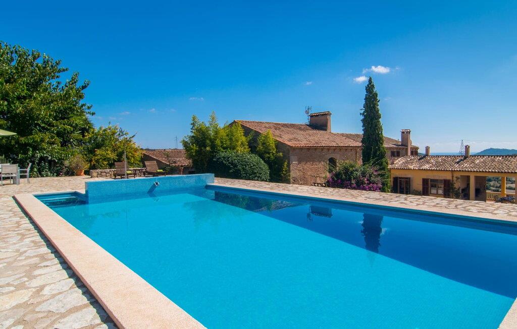 Forkæl jer selv! Hvis I ønsker at gøre dette i vores største ejendom og lære det meget omtalte "rigtige Mallorca" at kende, så er Villa "Xiclati" lige noget for jer. Den er meget støjsvag og miljøvenlig, da den har solpaneler, der dækker 45 % af ejendommens samlede energiforbrug. Ejendommen er helt stille, har sit eget netværk af stier og tilbyder en klar udsigt over det smukke middelhavskystlandskab i den nordlige del af Mallorca mellem Artà og Son Servera. Alene denne udsigt er en særlig form for luksus! Et terrasselandskab foran det traditionelle hus overstiger langt målene på de fleste af de øvrige ejendomme i vores program - her kan I slappe af efter jeres ønsker på en kæmpe 1.000 m². Der er mange steder, der tilbyder både solrige og skyggefulde steder til afslapning, socialt samvær og afslapning. Små stier og trin fører til yderligere terrasseniveauer og til den store pool, som er omgivet af en frodig græsplæne. Med en længde på 10 m kan I svømme en del længder – eller bare flyde i det kølige vand. Disse billeder giver jer blot en idé om den skønhed, der venter jer her. Her kan I tilbringe skønne grilleftermiddage og -aftener på den store udendørs grillplads - udsigt inkluderet! På trods af denne ejendoms lange historie, som er en af de vigtigste på Mallorca, er det nu et moderne feriehus, udstyret med alle de bekvemmeligheder I har brug for til en afslappende og afslappende villaferie. Lad hverdagens stress langsomt falde i baggrunden, og genoplad jeres batterier i denne traditionelle, vidunderligt rustikke atmosfære. Ejerens sans for detaljer ved udformningen af huset har skabt plads til en allround atmosfærisk og forfriskende atmosfære. I alt har huset seks komfortabelt indrettede dobbeltværelser - fire med stor dobbeltseng og de to andre med hver to enkeltsenge - hvor man kan nyde en siesta om dagen og sove godt om natten. Der er også fire badeværelser til jeres rådighed. En af disse er i det separate poolhus; En anden er i en separat lejlighed med egen indgang sammen med et soveværelse og en stor stue. Der er et ekstra gæstetoilet, hvilket er meget praktisk, især når huset er fyldt. Et fuldt udstyret køkken i spansk stil er tilgængeligt til at tilberede måltider sammen og er ideelt til at arbejde hånd i hånd. Udover køleskab, komfur, ovn, opvaskemaskine, brødrister og mikroovn er den også udstyret med elkedel, Nespresso og espressomaskine, så intet står i vejen for at få morgente eller kaffe på morgenmadsterrassen. Foran køkkenet er der en stor spiseplads med et kæmpe spisebord og tilhørende træsæder. Denne del fører ind i husets egentlige opholdsrum, som strækker sig over to etager adskilt af trin. De forskellige siddepladser og fjernsynet inviterer jer til at finde jer godt tilpas indendørs og udnytte de forskellige afslapningsområder fuldt ud. Huset er bekvemt udstyret med varmeanlæg, så det kan bruges hele året rundt under optimale forhold. Da "Xiclati" er opdelt i hovedhuset og en lejlighed, er det særligt ideelt til større rejsegrupper. Vores anbefaling gælder også for familier, der rejser sammen med børn, da den smarte indretning og generøse plads giver mulighed for et særligt højt niveau af privatliv. Den umiddelbare nærhed til den maleriske landsby Artà (6 km) er et andet højdepunkt ved denne særlige bolig. Gå ikke glip af det ugentlige marked om tirsdagen. Der finder I alverdens kulinariske specialiteter fra regionen og fylder jeres indkøbskurv med frisk frugt og grøntsager. Der er også flere gode restauranter og gode shoppingmuligheder i denne by. I Son Servera (15 km) kan I besøge det ugentlige marked hver fredag. De nærmeste strande kan findes i Cala Ratjada, Canyamel, Cala Bona og i bugten Cala Millor. Villa "Xiclati" er en af de største ejendomme i det nordøstlige Mallorca og en kæmpe statelig ejendom med en lang historie. Ejendommen har sine egne vandrestier, et unikt bakket landskab på over 300.000 m² og en vidunderlig udsigt over havet og kysten. Her ligger hele dalen mellem Artà og Son Servera bogstaveligt talt for jeres fødder. De smukkeste strande på Mallorca kan også nås hurtigt. Hvis I vil shoppe eller spise ude, er Artà eller Son Servera også kun få minutter væk i bil.