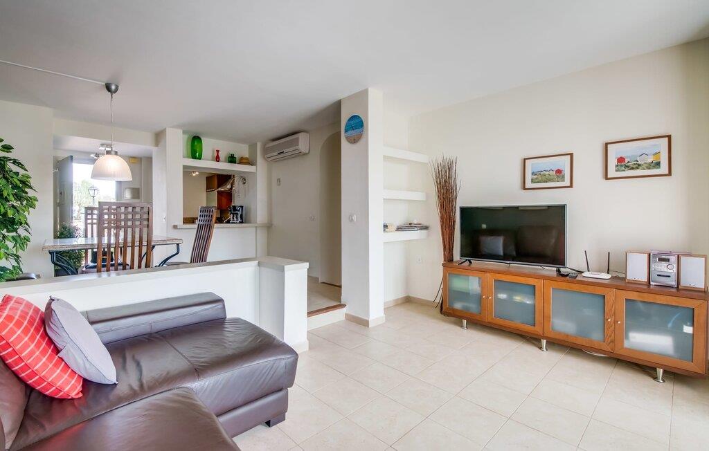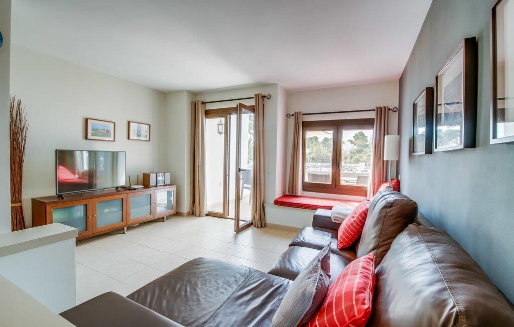 Den charmerende ferielejlighed "Yachthafen Dor" venter på jer i et funklende hvidt, arkitektonisk meget smukt designet bygningskompleks direkte på marinapromenaden i Cala D'Or. Stedets navn kan oversættes som "Golden Bay", og faktisk har badebugten med sin fine gule sandstrand, azurblå vand og børnevenlige lavvandede indsejling ikke dette navn for ingenting. Cala D'Or består næsten udelukkende af lyse hvide bygninger som denne, hvor ferielejligheden er særdeles bekvemt placeret i lavsæsonen. Brug af det fælles poolområde er inkluderet i prisen. Husene er omgivet af fyrreskove og palmer, hvilket giver stedet et meget naturligt udtryk. På grund af beliggenheden på havnebassinet nyder I ikke kun en helt betagende udsigt fra den generøst store altan, men I kan også nyde jeres velduftende morgenkaffe ved spisebordet og afslutte aftenen romantisk. Med denne beliggenhed drager I fordel af nærheden til mange restauranter og barer langs havnepromenaden. Ikke desto mindre har I adgang til et køkken til jeres ønskede selvforplejning, som giver jer mere fleksibilitet end hotelovernatning. Pladsen i ferieboligen, som har et ret åbent design, er også optimal. I tilknytning til stuen ligger spisepladsen med sit store panoramavindue, hvis vinduessæde giver en fantastisk udsigt selv i de køligere årstider. Værelserne, der er indrettet i venlige farver, er kølige om sommeren og kan nemt varmes op i lavsæsonen takket være den varme-kolde aircondition. To soveværelser, hver med komfortable badeværelser med badekar (et af dem en suite), tilbyder behagelig komfort uden at begrænse privatlivets fred. Velkommen til "Yachthafen Dor" - nyd jeres tid ude i den perfekte kombination af by, land og hav. Den velholdte ferielejlighed "Yachthafen Dor" venter på jer på den sydlige del af øen i den smukke kystby Cala D'Or. Navnet siger selvfølgelig det hele, da det lyse hvide lejlighedskompleks ligger direkte ved lystbådehavnen. Fra balkonen i den centralt beliggende ferielejlighed kan I nyde en direkte udsigt over havnen, som ikke er skæmmet af lejlighedsvise akustiske lyde fra gaden. I kan nå byen og den smukke sandstrand i bugten af samme navn til fods.