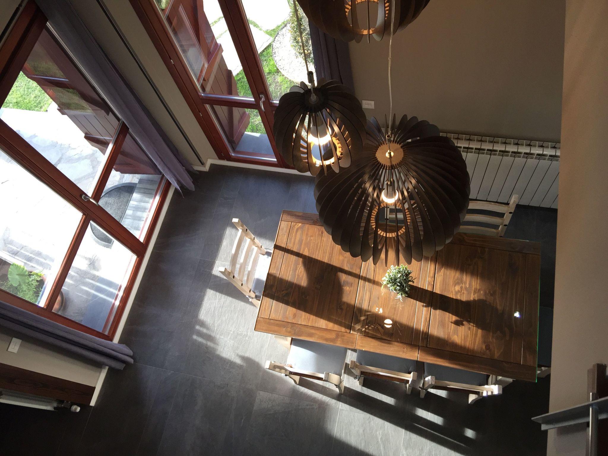 From the ground floor, there is access to the terrace with high quality outdoor furniture. The view of the surrounding mountains is spectacular. You can park your car under the porch of the property, which is fenced. There is also a small garden with lawn.