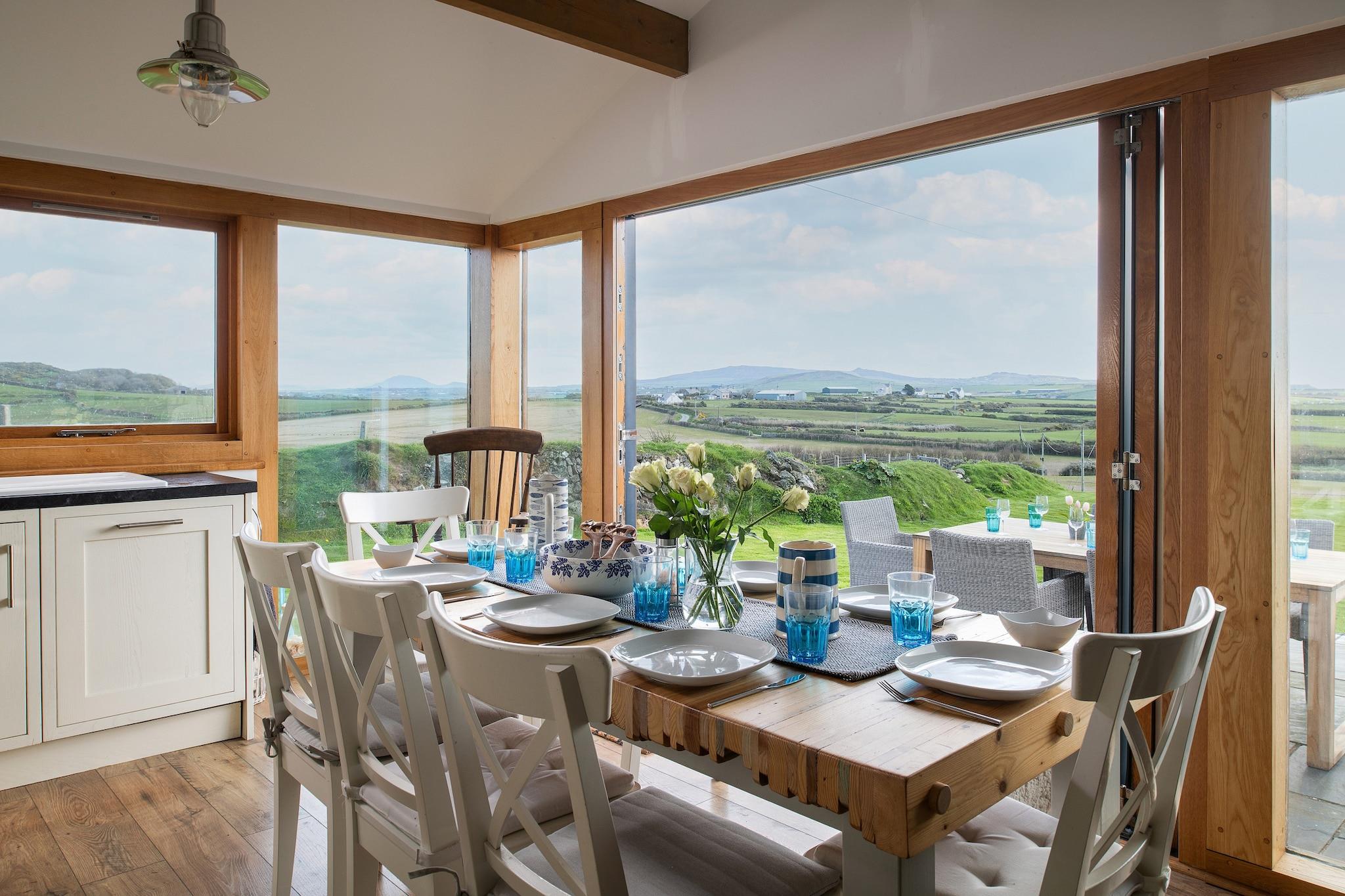 Denne betagende kystnære ejendom, beliggende på forlandet af Wales Coast Path, tilbyder en betagende udsigt over havet og det omkringliggende landskab. Perfekt designet til op til 8 gæster, dette luksuriøse tilflugtssted kombinerer komfort, stil og bekvemmelighed for et uforglemmeligt ophold. I stueetagen bliver du budt velkommen af ??en rummelig entré med originalt klinkegulv og rigelig opbevaring. Det ekspansive køkken og spiseplads kan prale af state-of-the-art apparater, herunder et køleskab/fryser i amerikansk stil og et elektrisk induktionskomfur. Herfra kan du samles om spisebordet og nyde måltider med en spektakulær udsigt over havet og landskabet. Slap af i den elegante lounge, komplet med pejs, siddepladser og et fladskærms-tv til de rolige aftener i. To rummelige soveværelser med eget bad er placeret i stueetagen, inklusive mastersuiten med en superking-seng, hvælvede lofter og adgang til terrassen. Ovenpå fuldender to charmerende dobbeltværelser med fredfyldt udsigt og et moderne familiebadeværelse boligen. Udenfor kan du nyde en ekspansiv grund med to moderne skiferterrasser, perfekt til udendørs spisning og grill, mens du nyder panoramaudsigten. 'The Beach Hut' er en forvandlet skibshavn, der tilbyder uendelig underholdning med pool, bordtennis og airhockey. Til roligere stunder tilbyder det hyggelige kabineværelse med brændeovn, TV/DVD, kortbord og arbejdsområde et afslappende tilflugtssted. Med sin kystnære beliggenhed kun 2 km fra en sandstrand, luksuriøse faciliteter og naturskønne omgivelser tilbyder denne ejendom de perfekte rammer for en familieferie. Oplev det bedste ved kystliv og slap af med stil – book dit ophold i dag med Finest Retreats!