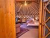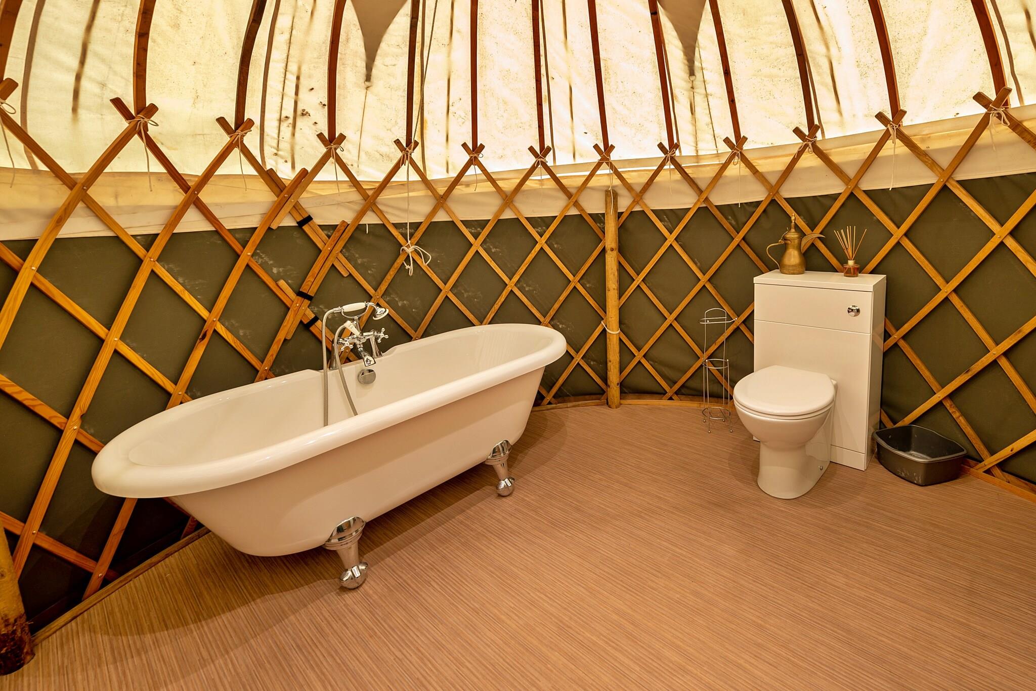 Beliggende i et betagende hjørne af Alexander House-grunden tilbyder Bramble Yurt et idyllisk tilflugtssted med en fantastisk udsigt over Gleneagles og Ben Vorlich. Perfekt til par, der søger en fredelig ferie, denne luksuriøse yurt kombinerer naturlig skønhed med komfort. Slap af i dit private brændefyrede spabad under stjernerne, lyt til naturens lyde og nyd det fredfyldte landskab, der omgiver dig. Jurten har en overdådig king-size seng, en hyggelig brændeovn og et en-suite badeværelse med et moderne 12-fods design, hvilket sikrer et romantisk og afslappende ophold. Indenfor giver jurten et komfortabelt opholdsområde med en sofa sammen med væsentlige køkkenfaciliteter såsom en to-ring induktionskomfur, køleskab med fryser og grundlæggende redskaber - ideel til at tilberede enkle måltider. Sengetøj og håndklæder er inkluderet, sammen med USB-stik og belysning for at forbedre din komfort. Til spisning al fresco er der plads til to, en grill og parkering til et køretøj. Bemærk venligst, at adgang kræver en stejl, lang indkørsel, og en bil er afgørende; lavthængende køretøjer kan finde rejsen udfordrende, især under vinterforhold. Mens WiFi ikke er tilgængeligt på grund af fjernplaceringen, er 4G-signaler typisk stærke på alle mobilnetværk, så du kan forblive forbundet, hvis det er nødvendigt. Sørg for at forberede optændingen, hvis du ønsker at holde varmen og hygge under dit ophold. Denne fortryllende yurt lover en virkelig magisk oplevelse med evigt skiftende landskaber og spektakulære udsigter, der vil fange dit hjerte. Uanset om det er en romantisk weekend eller et fredeligt tilflugtssted, tilbyder Bramble Yurt en uforglemmelig flugt ud i naturen.