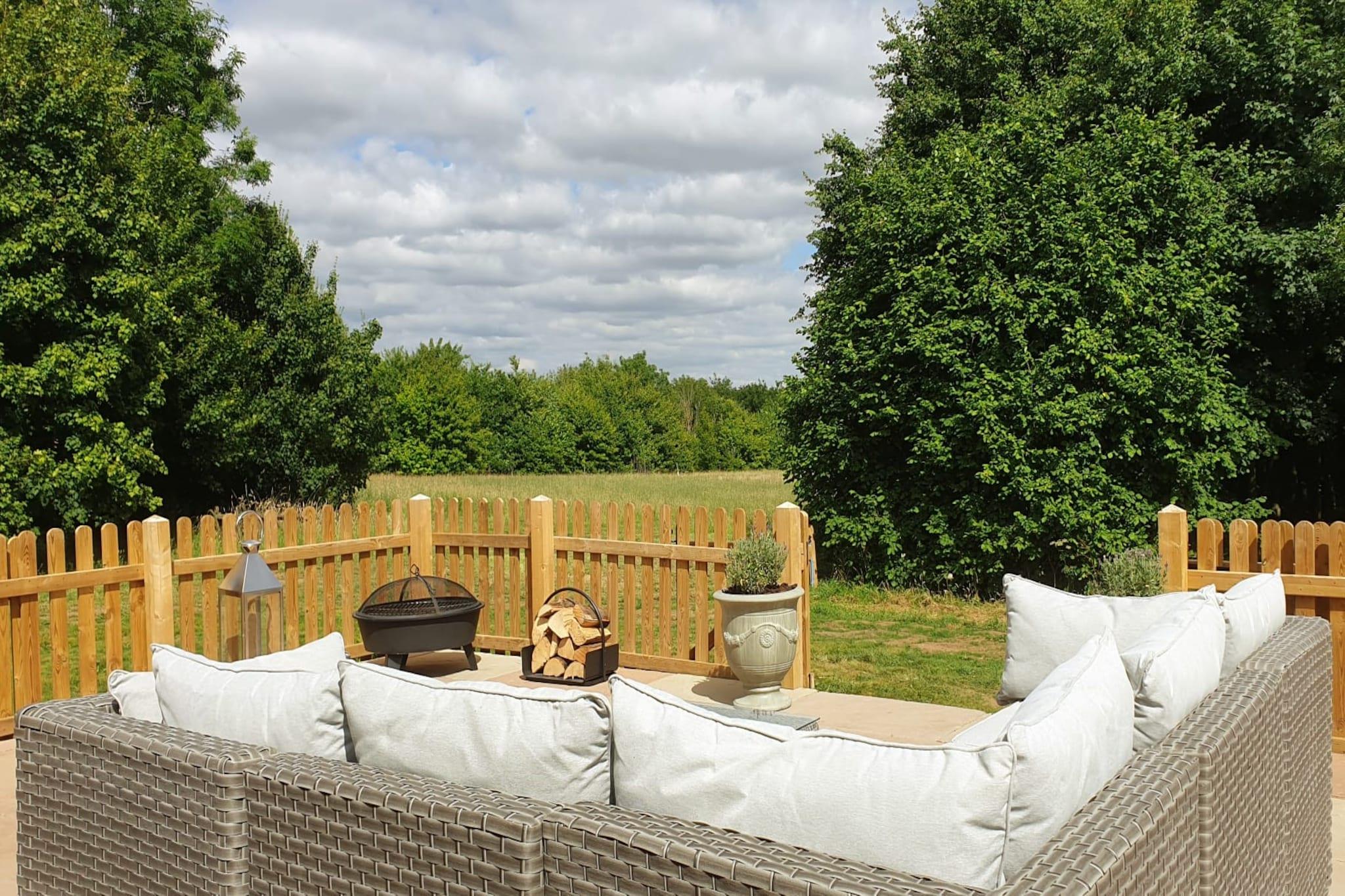 Denne luksusladekonvertering, beliggende i 7 hektar skov og vilde blomstereng, tilbyder den perfekte flugt med en betagende udsigt over grænsen mellem Cambridgeshire og Suffolk. Laden, som for nylig blev afsluttet efter øko-passivhaus-standarder, er designet til at holde dig komfortabel både sommer og vinter. Interiøret i åbent plan har et lyst, luftigt rum med charmerende gamle bjælker, et fuldt udstyret køkken og en hyggelig lounge med udsigt over landskabet og skoven. Køkkenet er udstyret til den højeste standard med fuld ovn, induktionskomfur, opvaskemaskine, vaskemaskine/tørretumbler, køleskab og plads til fire. Stuen byder på en fløjlssofa og lænestol, ideel til afslapning foran det digitale tv eller til at lytte til musik gennem lyddocken. Døre åbner ud til en rummelig indisk sandstensterrasse med en stilfuld havesofa i rattan, perfekt til at slappe af eller nyde en bålplads om aftenen. Det store soveværelse med en king-size seng tilbyder et roligt tilflugtssted med friske pasteltoner og sin egen private terrasse, mens dobbeltværelset er designet med en blanding af industriel stil og naturlige elementer. Begge værelser har luksuriøse Silent Night Eco-madrasser til en afslappende nattesøvn. Det luksuriøse familiebadeværelse omfatter badekar, vandfaldsbruser og håndklædetørrer. Stalden har også en hårtørrer og GHD glattejern for din bekvemmelighed. Ejendommen tilbyder også en række aktiviteter, herunder at udforske det private skovområde, se dyreliv såsom harer, hjorte og røde glenter, eller tage en kort køretur til nærliggende attraktioner såsom Linton Zoo, Duxford Imperial War Museum og Cambridge. Der er også masser af vandre- og cykelruter i det omkringliggende område, herunder den berømte Icknield Way-sti. For dem, der foretrækker ikke at køre bil, er landsbyen Balsham kun en kort gåtur væk, hvor du kan nyde en kop kaffe på The Old Butchers, besøge landsbybutikken eller udforske den lokale kirke fra det 13. århundrede. Med en række lokale pubber og cykelmuligheder tilbyder denne ejendom en perfekt base for en afslappende og eventyrlig ferie.