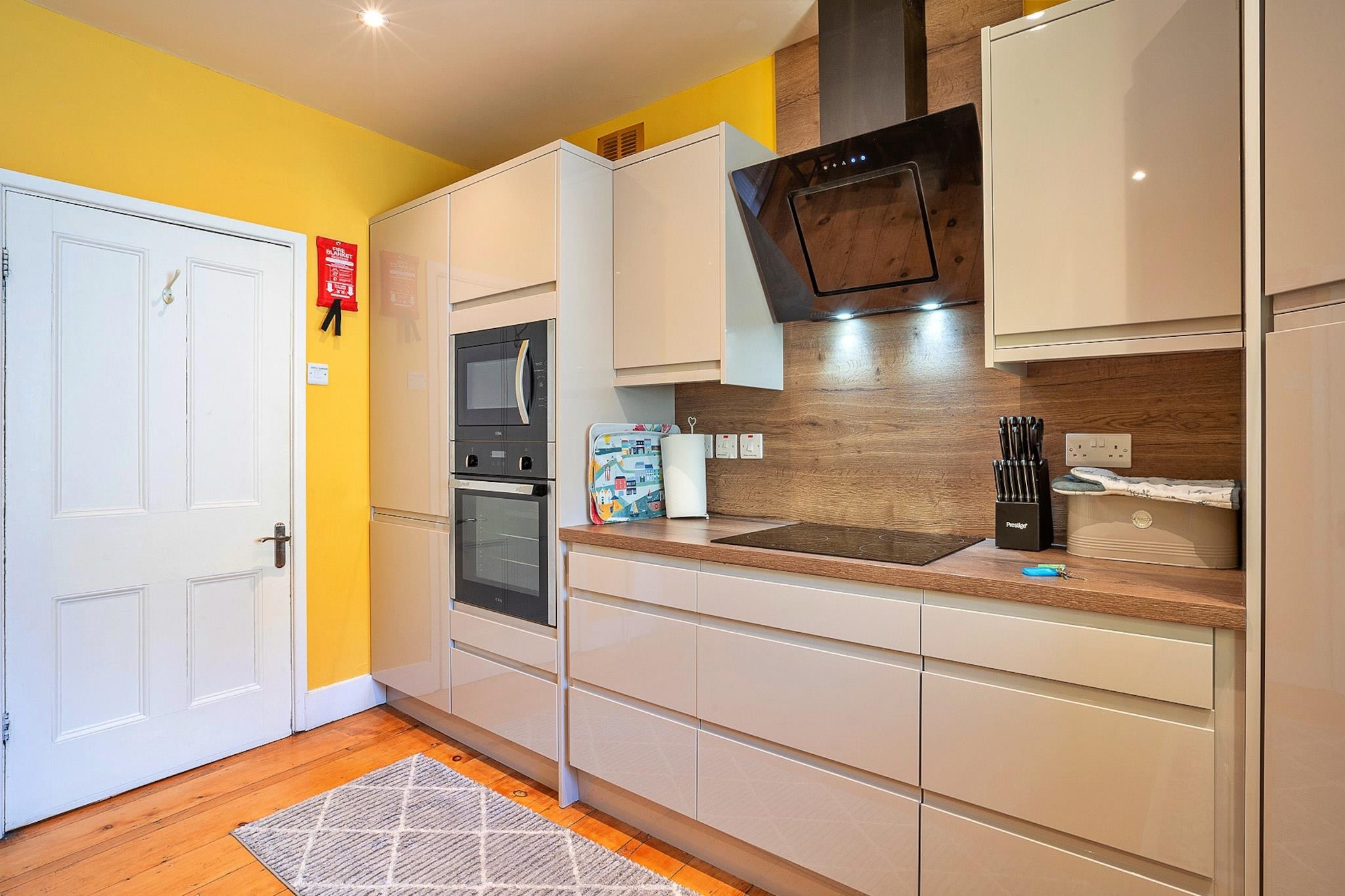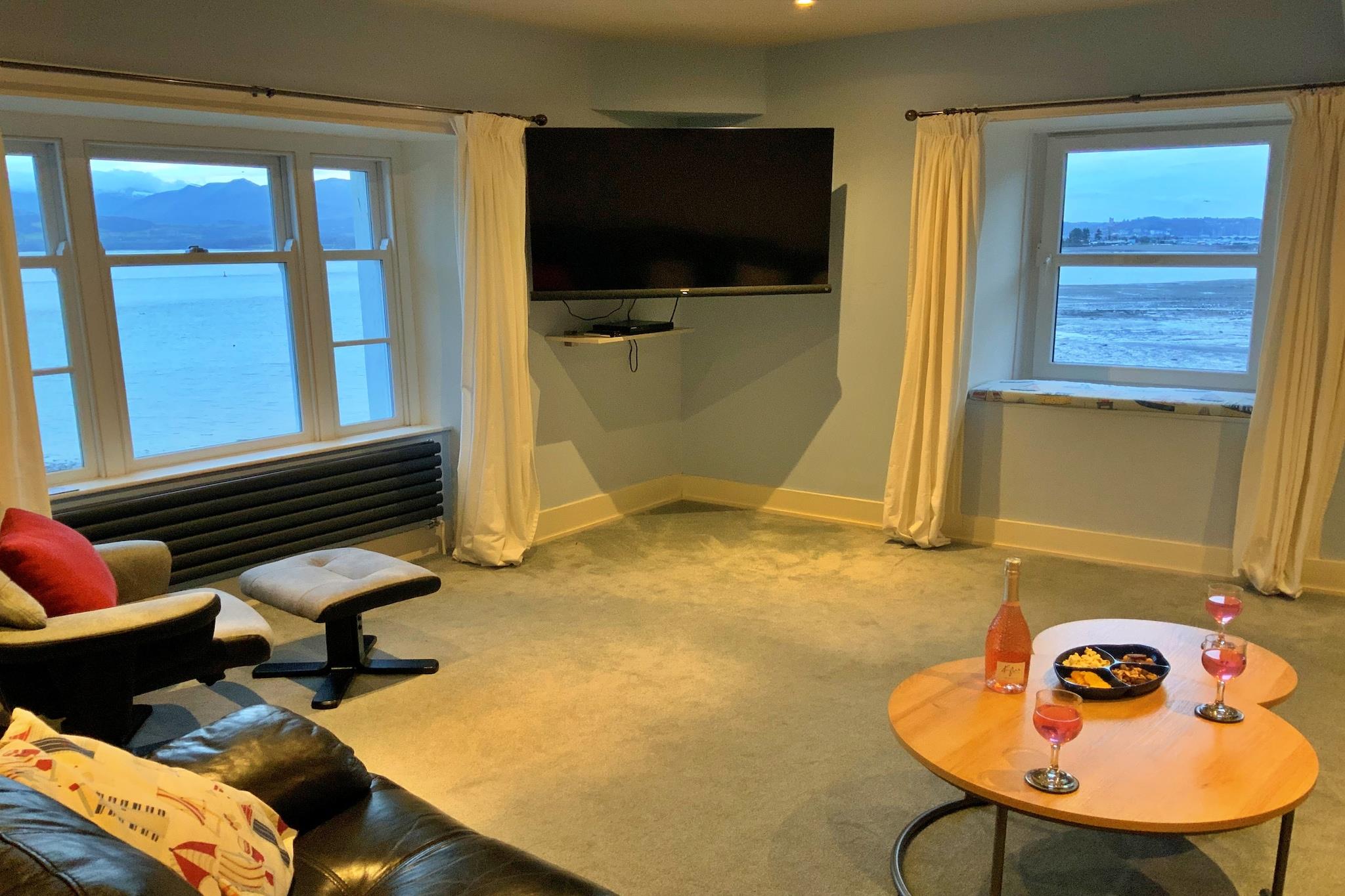 Denne charmerende lejlighed på anden sal tilbyder en betagende udsigt over Menai-strædet og Snowdonia-bjergkæden, hvilket giver den perfekte base for familier eller små grupper. Indkvarteringen omfatter tre velindrettede soveværelser: en king-size seng med lynlås/link (som kan konfigureres til to singler efter anmodning), et soveværelse med 2 enkeltsenge og et sæt køjesenge i fuld størrelse, ideel til børn. Den rummelige lounge har store havvendte vinduer, der fylder rummet med naturligt lys og naturskøn udsigt. En komfortabel hjørnesofa inviterer til familiesammenkomster til spil eller afslapning. Gæsterne vil også finde et veludstyret køkken til hjemmelavede måltider, selvom Beaumaris' berømte restauranter og takeaways ligger kun en kort gåtur væk. Beliggende ved strandpromenaden i Beaumaris, lejligheden har udsigt over Gallows Points bådeværft og Bangor's Pier, og tilbyder et førsteklasses sted at se regattaer eller nyde den rolige kystnære skønhed. Beaumaris i sig selv er en charmerende by, hvor gæsterne kan udforske eklektiske butikker, restauranter og nyde familievenlige aktiviteter såsom at krabbe ved molen eller besøge den nærliggende slotslegeplads. For dem, der søger udendørs eventyr, er Snowdonia let tilgængelig for vandreture eller naturskøn udforskning. Lejligheden tilbyder en række moderne bekvemmeligheder for at sikre et behageligt ophold. Det er udstyret med Wi-Fi, en vaskemaskine og et tv til underholdning. Med centralvarme for at holde gæsterne hyggelige under køligere aftener giver Beau View en hjemlig atmosfære, der perfekt komplementerer dens fantastiske kystnære beliggenhed.