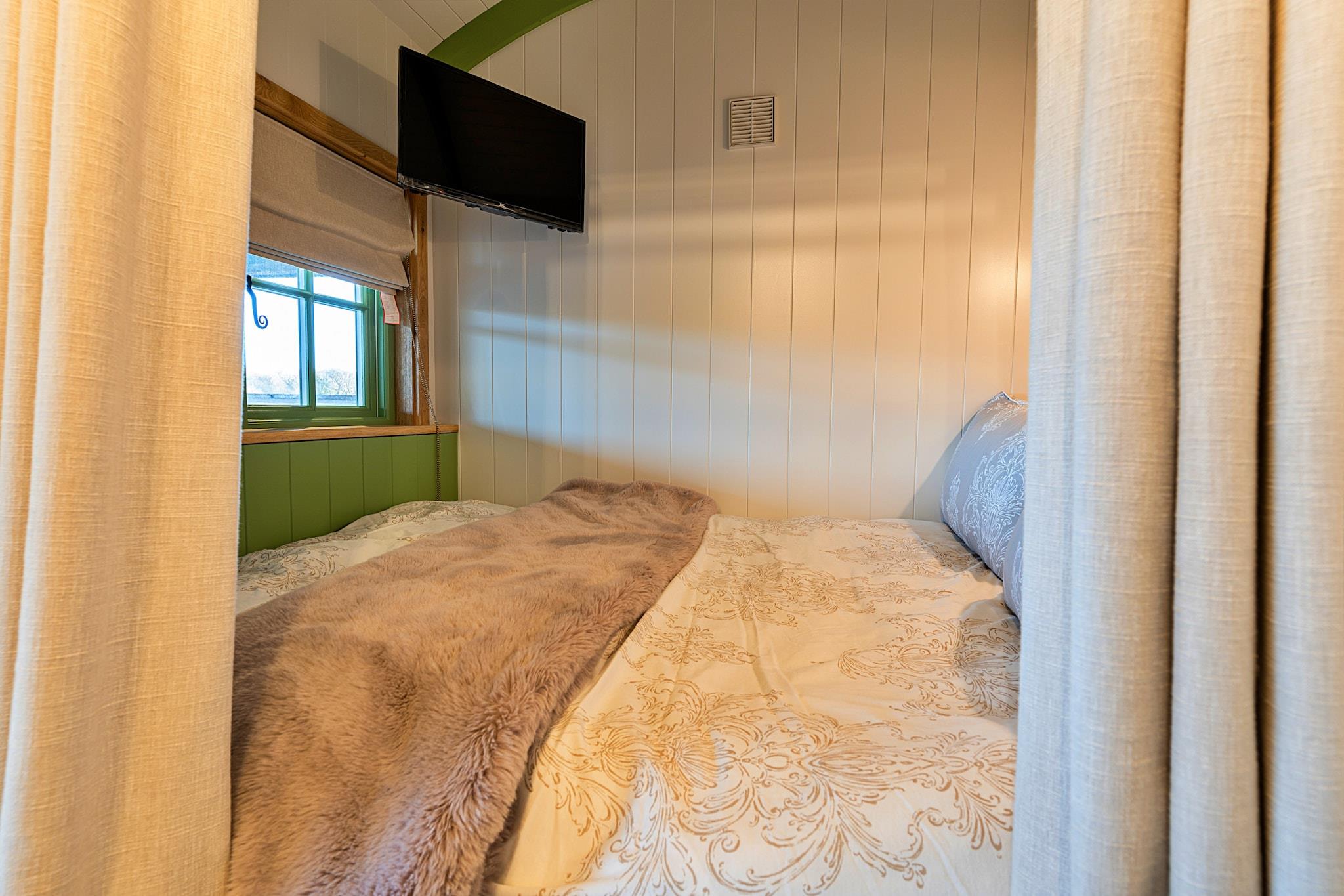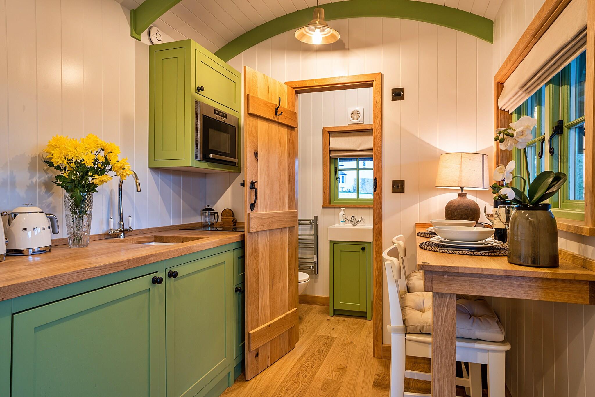 Shepherd's Hut på Northcombe Farm tilbyder et perfekt glamping-tilflugtssted, der kombinerer charmen ved traditionelt design med moderne bekvemmeligheder. Denne hytte ligger på en malerisk Devonshire-gård og giver en hyggelig og rustik flugt, samtidig med at den tilbyder bekvemmeligheder såsom centralvarme, brusekabine og tekøkken. Hytten er ideelt beliggende ved en fredfyldt sø med en fantastisk udsigt over landskabet, hvilket gør den til et fredeligt tilflugtssted for dem, der ønsker at slappe af eller udforske de naturlige omgivelser. Gæsterne vil nyde et veldesignet rum i åbent plan, herunder en dobbeltseng, et tekøkken med spisebar og et badeværelse udstyret med brusekabine og skylletoilet. Det beskyttede udendørs siddeområde under staldens tag giver et ideelt sted at slappe af med en varm drik eller et glas vin, selv på regnfulde dage. Gården tilbyder også muligheder for fiskeri i søen og rideaktiviteter, mens Dartmoor National Park, perfekt til vandre- og cykelture, ligger kun en kort køretur derfra. Dette kæledyrsvenlige tilflugtssted tilbyder alle de bekvemmeligheder, der er nødvendige for et afslappende ophold, inklusive et ladepunkt for elbiler. Det er et vidunderligt valg for dem, der leder efter en intim og behagelig glamping-oplevelse i hjertet af naturen.
