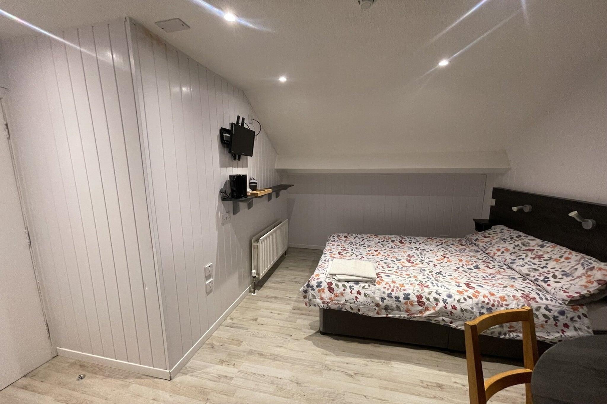 Stueetage: (soveværelse(dobbeltseng, Fjernsyn(fladskærm), elkedel, kaffemaskine), badeværelse(badekar eller bruser, toilet, Håndklæder inkl., )) parkering,