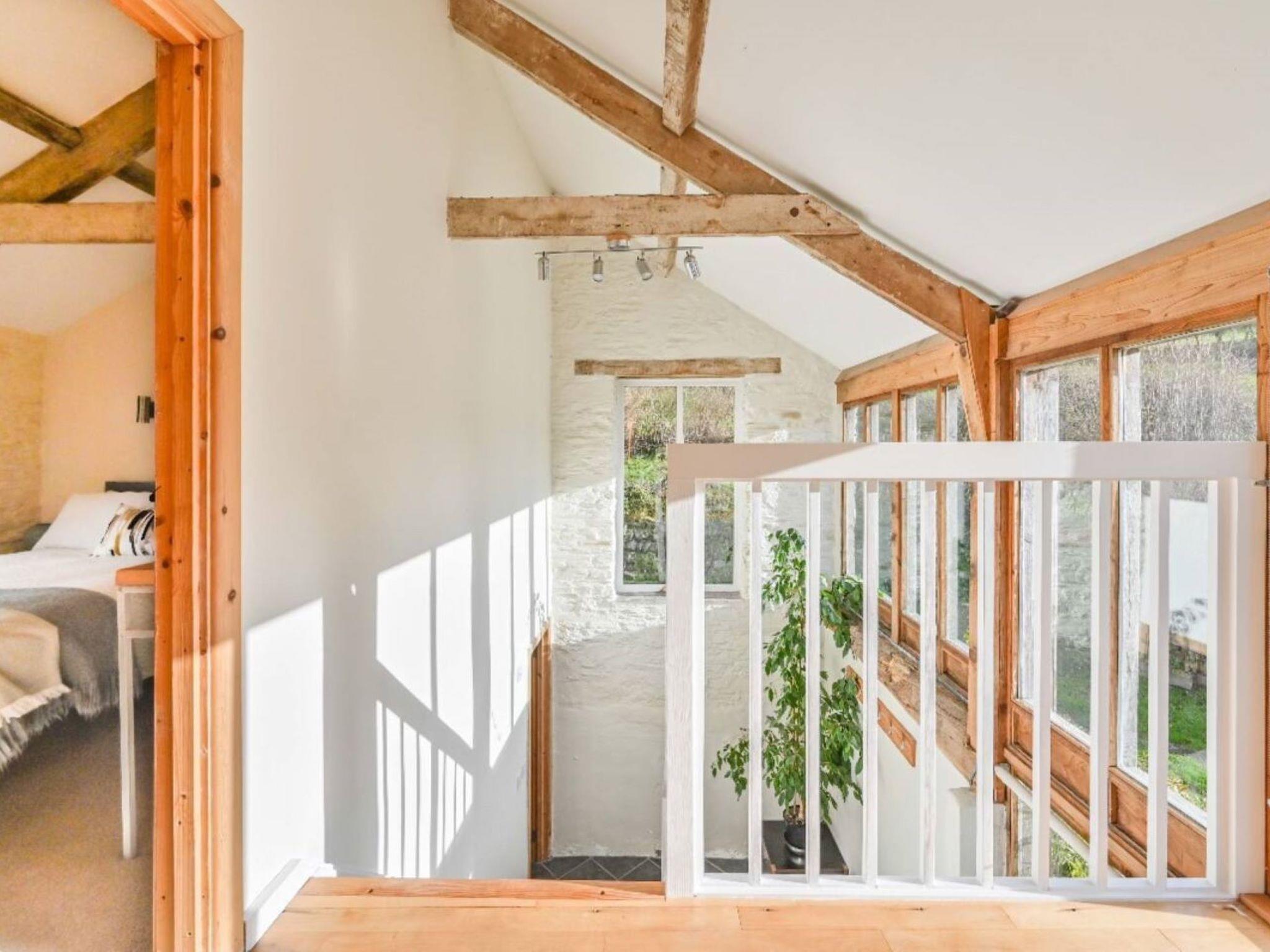 "Rivers Reach", 4-room farmhouse. 1 double bedroom with 1 double bed with shower/WC. Upper floor: open large living/dining room with panoramic window with digital TV, radio, DVD collection available and wood-burning stove. Exit to the balcony. 1 double bedroom with 1 double bed and shower/WC. Large, open kitchen (oven, dishwasher, 4 ceramic glass hob hotplates, toaster, kettle, microwave, freezer, grill). Terrace furniture. Marvellous panoramic view of the countryside and the river. Facilities: washing machine, dryer, hair dryer. Internet (WiFi). Parking. Please note: non-smoking house. Maximum 1 pet/ dog allowed. Smoke alarm. Historic barn conversion renovated and finished to a high standard with modern day luxuries and private rooftop terrace.