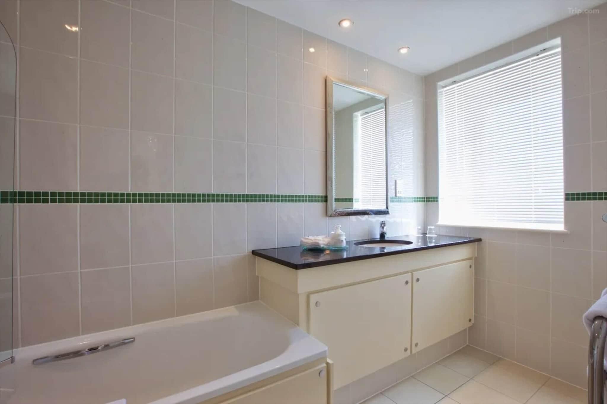 Stueetage: (soveværelse(dobbeltseng, Fjernsyn, DVD-afspiller, strygebræt, føntørrer, Alarm), badeværelse(badekar, bruser, føntørrer))