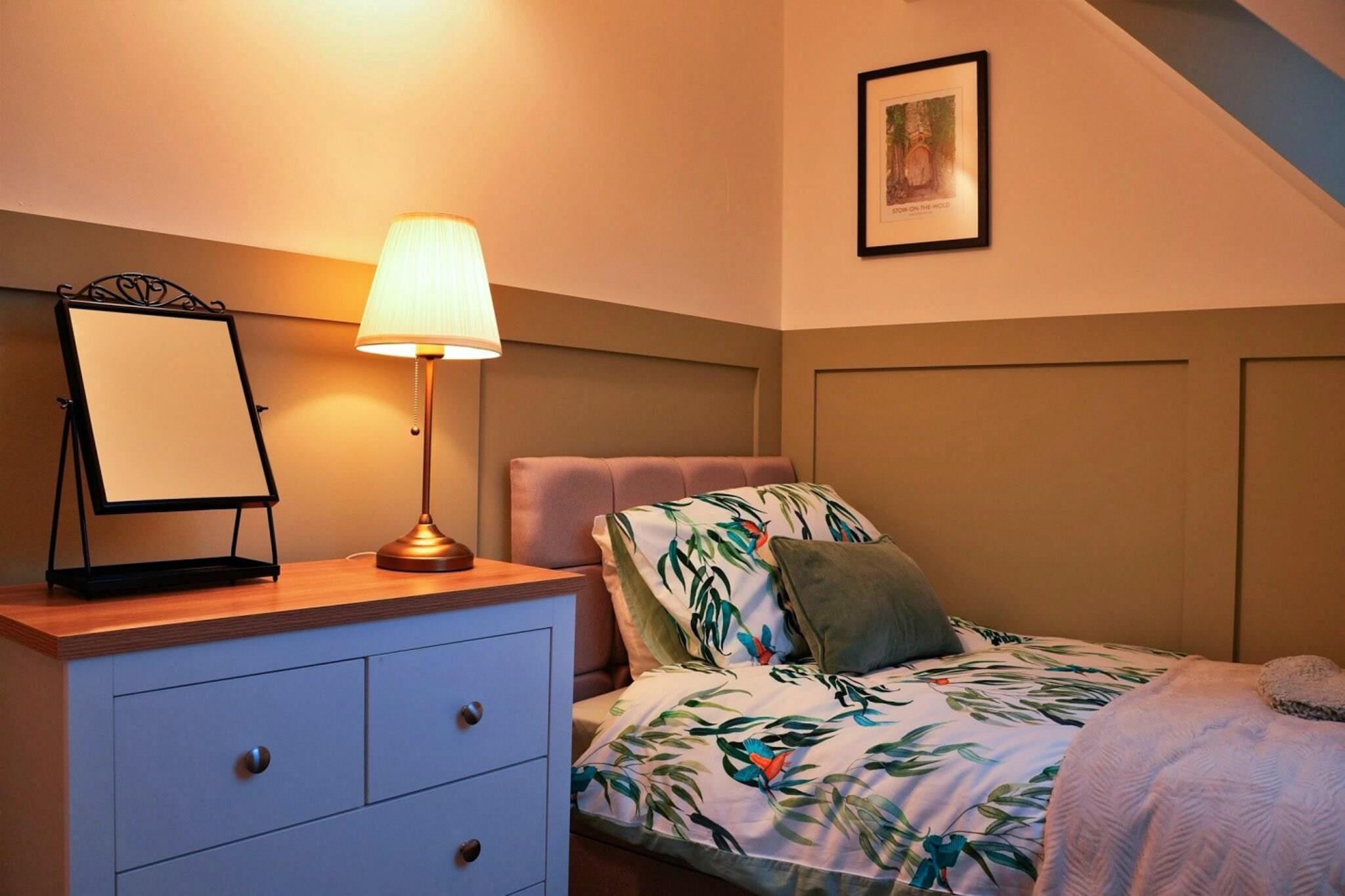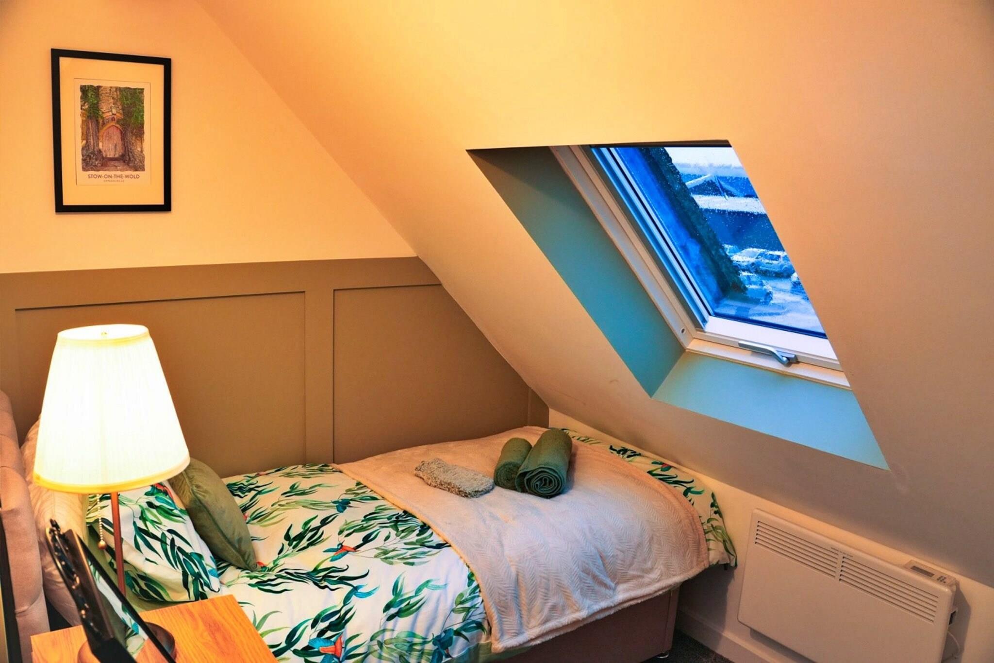 Flygt til et charmerende tilflugtssted beliggende i det idylliske landskab i North Cotswold, hvor en varm og indbydende atmosfære venter. Dette stilfulde rum er perfekt til par eller små familier og rummer op til to små, velopdragne hunde, hvilket gør det til et ideelt tilflugtssted for alle. Indkvarteringen kan prale af to komfortable soveværelser, herunder et hyggeligt dobbeltværelse, elegant indrettet med blødt sengetøj, blød belysning og et ovenlysvindue til dejlig stjernekiggeri om natten. Bemærk venligst, at loftshøjden er lidt lavere i dette rum, hvilket giver en unik charme. Det ekstra enkeltværelse fungerer som et fredfyldt rum til en afslappende nattesøvn. Et opholdsområde i åbent plan kombinerer stil og funktionalitet med en dobbelt sovesofa i stuen og et fuldt udstyret køkken komplet med moderne apparater. Et rustikt spisebord til fem giver gæsterne mulighed for at nyde hjemmelavede måltider i indbydende omgivelser. Træd udenfor for at finde et privat haveområde med komfortable siddepladser, fuldt indhegnet for dine firbenede venners sikkerhed. Beliggende i en malerisk landsby, er dette tilflugtssted godt placeret til at udforske de omkringliggende områder. Naturskønne vandreture, charmerende markedsbyer og historiske vartegn er kun en kort køretur væk, mens lokale pubber, butikker og restauranter ligger inden for en afslappet 10-minutters gåtur. Uanset om du søger en fredelig flugt eller udendørs eventyr, giver dette tilflugtssted på landet en ideel kulisse for afslapning og foryngelse.