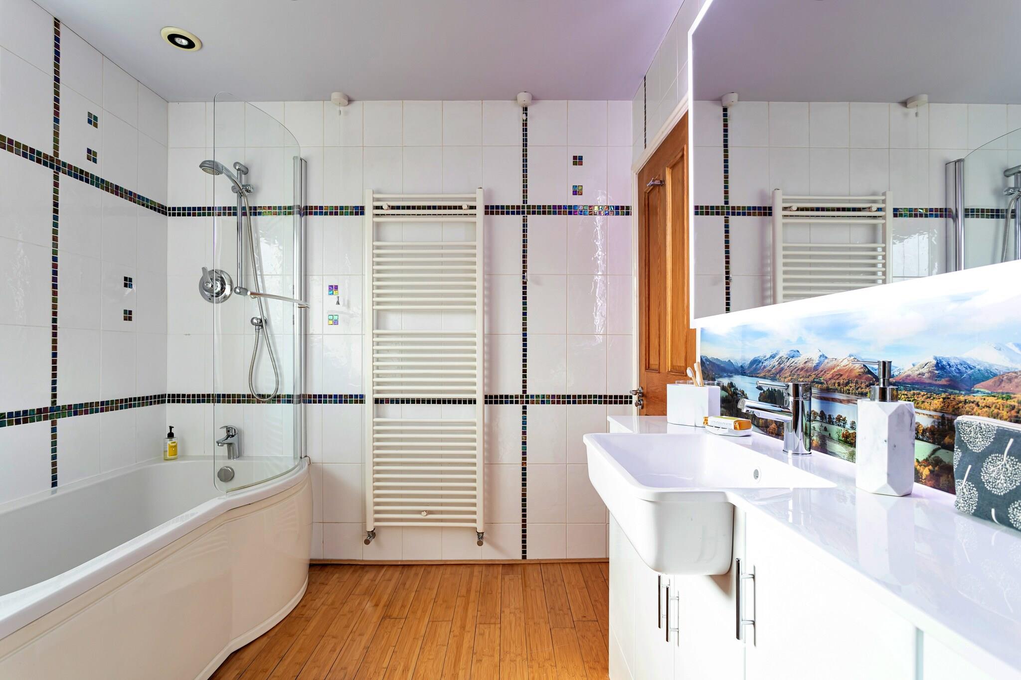 Oplev det typiske landlige tilflugtssted i hjertet af Lake District, perfekt beliggende i den maleriske landsby Braithwaite. Denne indbydende bungalow tilbyder en hjemlig atmosfære, så du kan fordybe dig i det fredfyldte landskab, mens du er bekvemt tæt på lokale attraktioner. Det er en ideel base for familier og par, der ønsker at udforske denne smukke region. Når du træder ind, vil du finde en rummelig gang, der fører til en stor, lys stue og spisestue med en traditionel brændeovn - perfekt til at slappe af efter en dag med eventyr. Det veludstyrede køkken, designet i en moderne landlig stil med lokale grønne skifer-arbejdsflader, inkluderer et køleskab og fryser i fuld størrelse, en opvaskemaskine og rigelig plads til at tilberede måltider. En solrig solstue forstærker charmen med dobbeltdøre, der åbner ud til en terrasse med fredfyldt have og udsigt over bjergene - et ideelt sted til morgenkaffe eller eftermiddagsafslapning. Hvert soveværelse er lyst og luftigt med rigelig opbevaring til dine ejendele. Hovedsoveværelset har en kingsize seng og en-suite badeværelse, mens det andet soveværelse tilbyder zip-link enkeltsenge, der kan konfigureres efter behov. Det tredje soveværelse indeholder en enkeltseng i fuld størrelse. Med en rummelig have, der kan prale af en fantastisk udsigt og en naturlig strøm, er det et dejligt sted at sidde og nyde omgivelserne. Haven har ikke hegn, så opsyn anbefales til børn. Faciliteterne i Braithwaite omfatter butikker, tesaloner og lokale pubber, med købstaden Keswick kun to miles væk - der tilbyder caféer, butikker og adgang til betagende vandrestier.