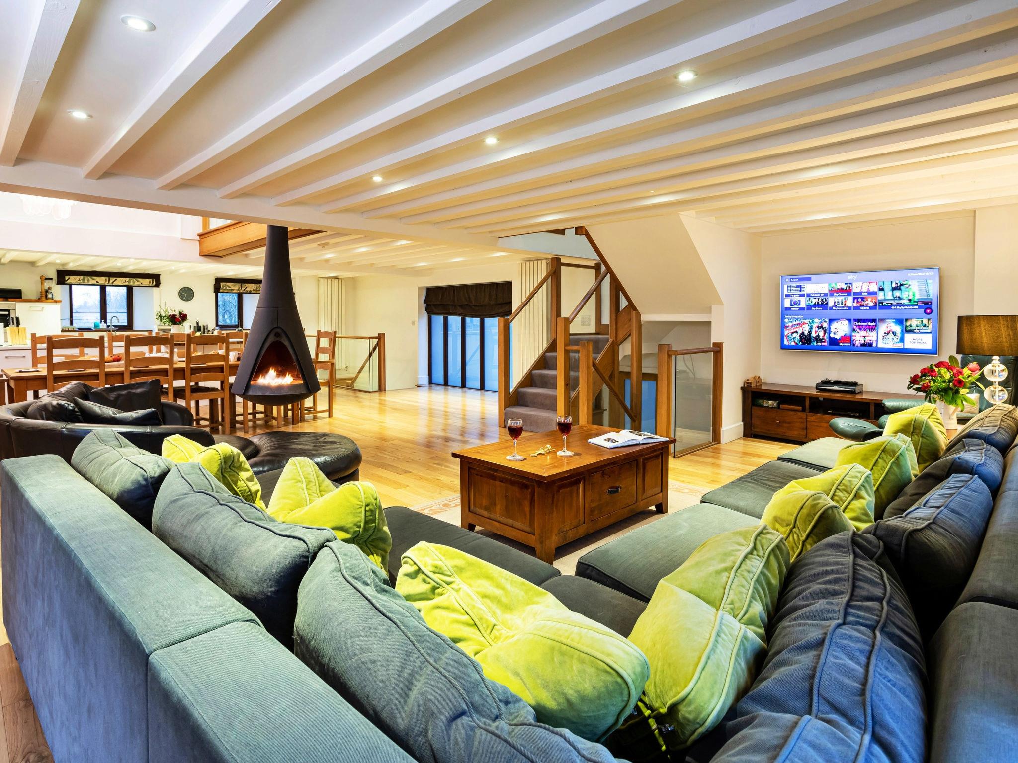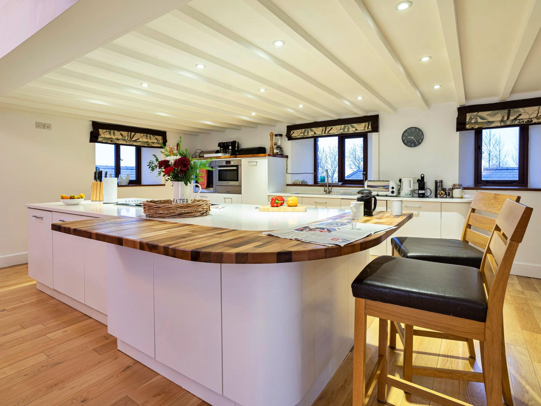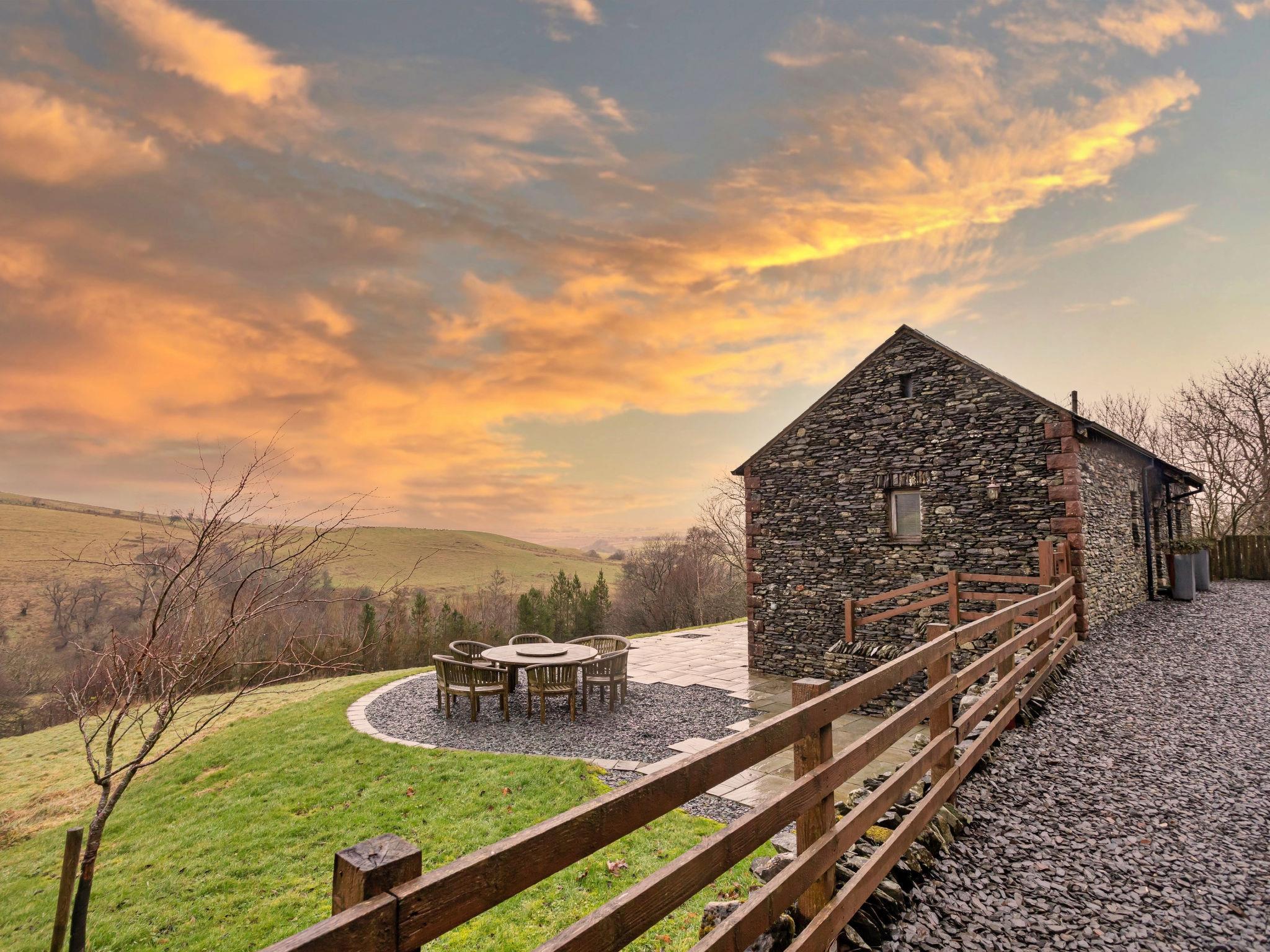 "Bretherdale Barn", 6-room house 275 m2. Object suitable for 10 adults. Living room with open-hearth fireplace and TV. 1 room with 1 double bed. 1 room with 2 beds. 1 room with 1 french bed. 1 room with 2 beds. 1 room with 1 french bed. Kitchen (oven, dishwasher, toaster, kettle, microwave, freezer). 3 baths/WC, 3 showers/WC, sep. WC. Barbecue. View of the mountains and the garden. Facilities: washing machine, sauna, iron. Internet (WiFi, free). Parking (roofed, 4 cars). Please note: non-smokers only. Smoke alarm.