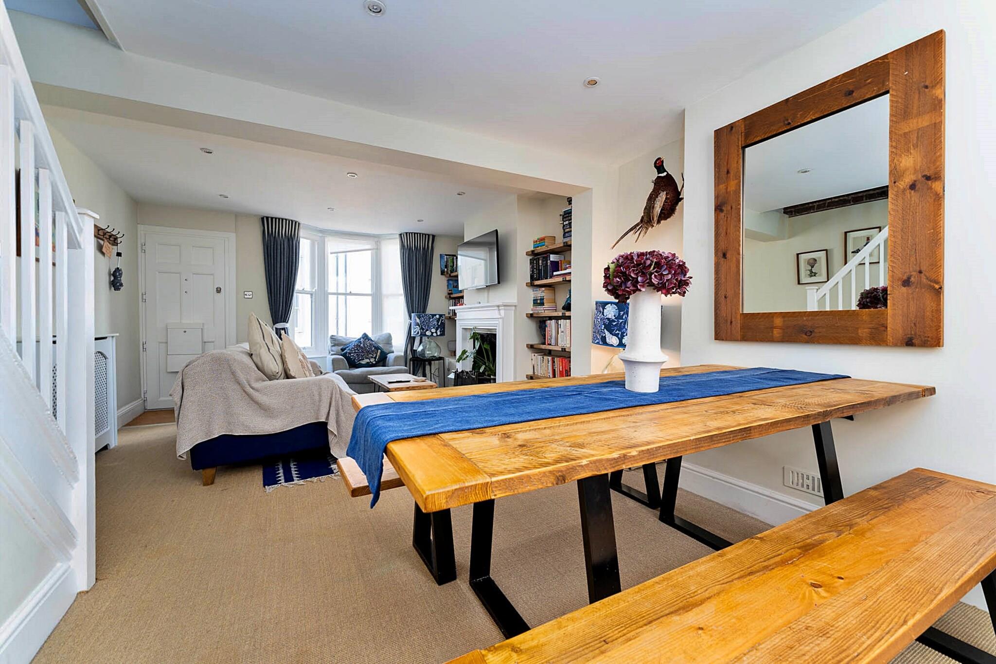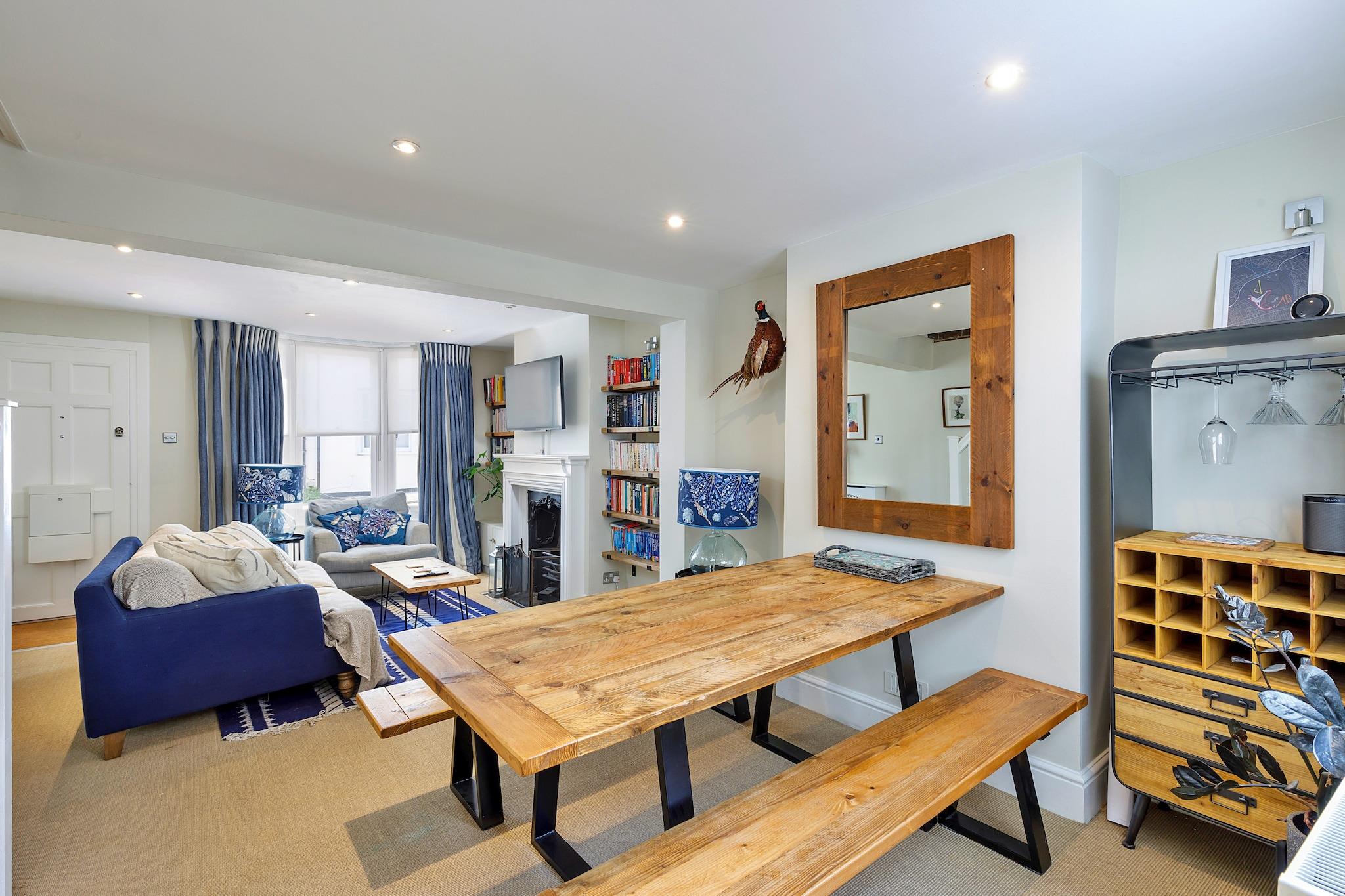 Velkommen til dit stilfulde kysttilflugtssted i hjertet af Brighton! Dette moderne rækkehus med to soveværelser er designet til komfort og bekvemmelighed, hvilket gør det til det perfekte fristed for familier og grupper af venner, der ønsker at fordybe sig i den pulserende atmosfære i denne ikoniske kystby. Blot et stenkast fra strandpromenaden har du al spændingen og charmen fra Brighton lige ved hånden. Brighton House kan komfortabelt rumme op til fire gæster, og byder på to smukt indrettede dobbeltværelser, der inviterer til afslappende nætter efter spændende dage. Træd udenfor til din private terrasse, hvor du kan nippe til morgenkaffen eller slappe af med et aftenglas vin i din egen fredelige oase midt i byens travlhed. Træd indenfor for at opdage et nyistandsat opholdsområde, som er gennemtænkt designet med din afslapning i tankerne. Synk ned i de bløde sofaer, mens du nyder dine yndlingsprogrammer på Smart TV, eller vælg en bog fra det eklektiske udvalg. Med gratis Wi-Fi overalt kan du nemt dele dine Brighton-eventyr med venner eller planlægge din næste udflugt. Det moderne køkken er fuldt udstyret til dem, der ønsker at kanalisere deres indre kok og piske kulinariske lækkerier frem. Saml dig omkring det elegante spisebord for at nyde afslappede måltider med venner eller familie, eller begiv dig ud for at udforske de utallige fantastiske restauranter og caféer i nærheden for at få en smag af lokal smag. Med sin førsteklasses beliggenhed, kæledyrsvenlige politik og tankevækkende faciliteter - såsom en vaskemaskine og et fuldt udstyret køkken - er Brighton House virkelig dit hjem væk fra hjemmet. Uanset om du er her for at nyde solen, udforske de finurlige butikker eller nyde den livlige strandfront, tilbyder dette rækkehus det perfekte startskud til din Brighton-eskapade.