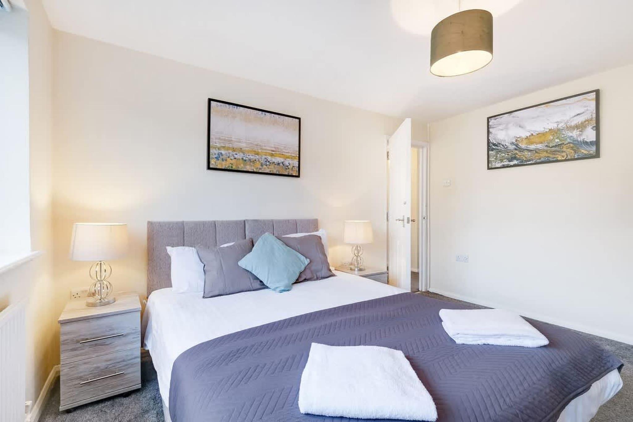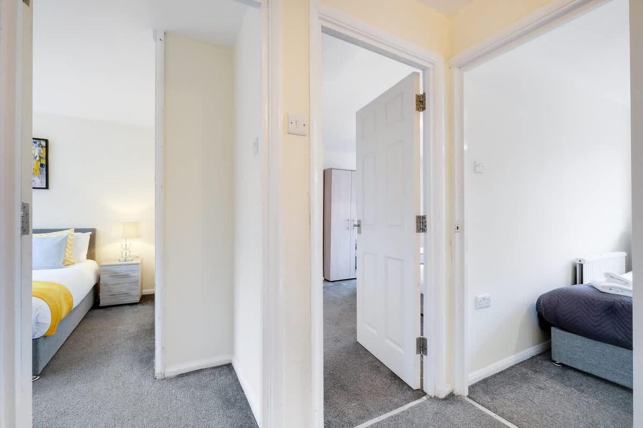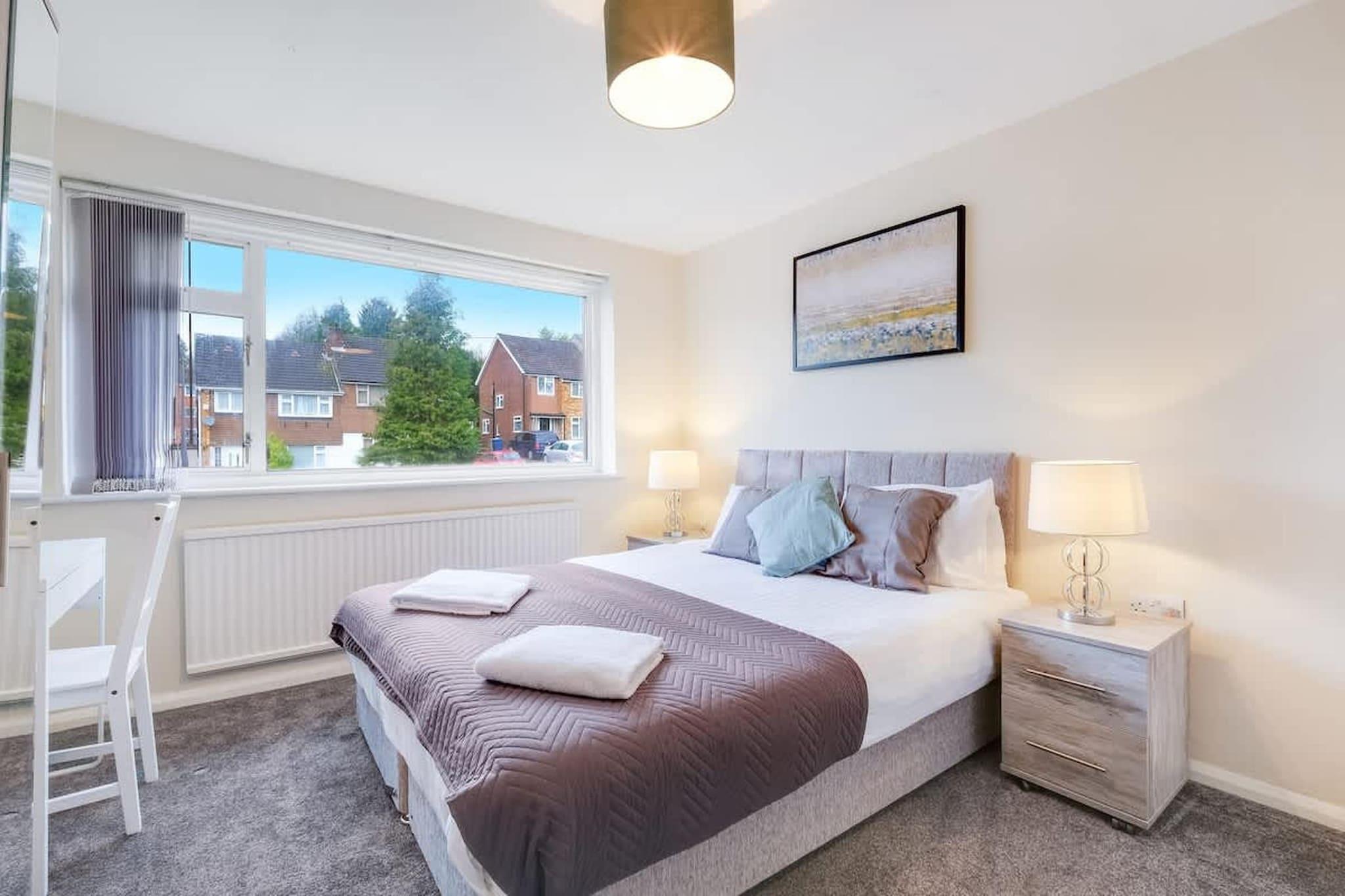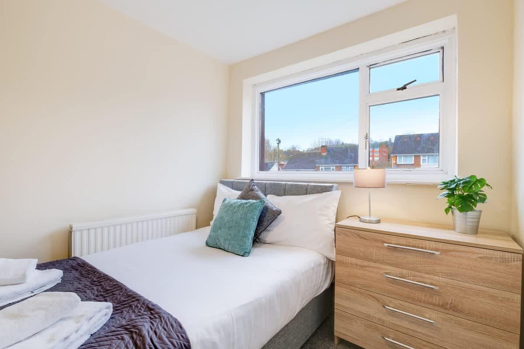 Dette hjem med fire soveværelser i High Wycombe er et smart valg til gruppeophold og balancerer plads, komfort og praktisk anvendelighed for op til otte gæster. Uanset om du rejser med familie, venner eller kolleger, gør planløsningen det nemt at tilbringe tid sammen, mens du stadig nyder den personlige plads. Stuen danner hjemmets sociale hjerte og er indrettet med et tv, et afslappet siddeområde og et spisebord til fælles måltider eller aftensnak. Lige ved siden af ligger det åbne køkken, der er fuldt udstyret med ovn, opvaskemaskine og køleskab med fryser, så du nemt kan lave mad i stedet for at være afhængig af takeaway. Sovearrangementerne er fleksible og velfordelte: et soveværelse med to enkeltsenge, et soveværelse med dobbeltseng og to soveværelser med kingsize-seng, der tilbyder ekstra komfort til længere ophold. Et fuldt funktionelt badeværelse med badekar tilføjer bekvemmelighed, især for familier med børn. Træd udenfor til en privat have, en behagelig bonus til frisk luft, morgenkaffe eller afslapning efter en dag ude. Praktiske faciliteter såsom vaskemaskine/tørretumbler, varme, højstol, dedikeret arbejdsplads, mørklægningsgardiner, Wi-Fi og parkering gør ejendommen lige velegnet til korte pauser og længere ophold. Herfra er du inden for rækkevidde af de naturskønne stier i Chiltern Hills, historiske steder som Hughenden Manor og de charmerende gader i West Wycombe. Med stærke transportforbindelser er en dagstur til London også nem at planlægge.