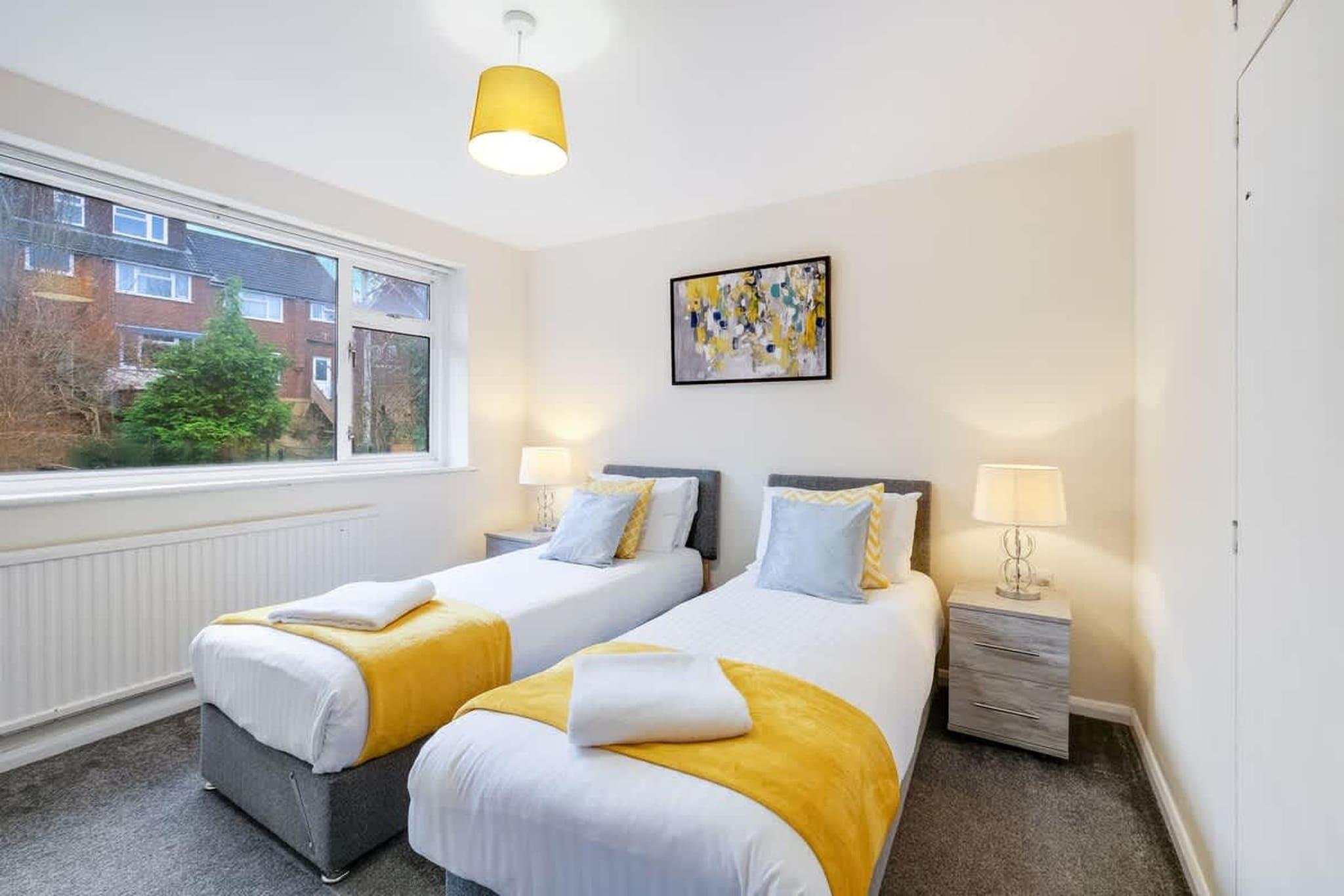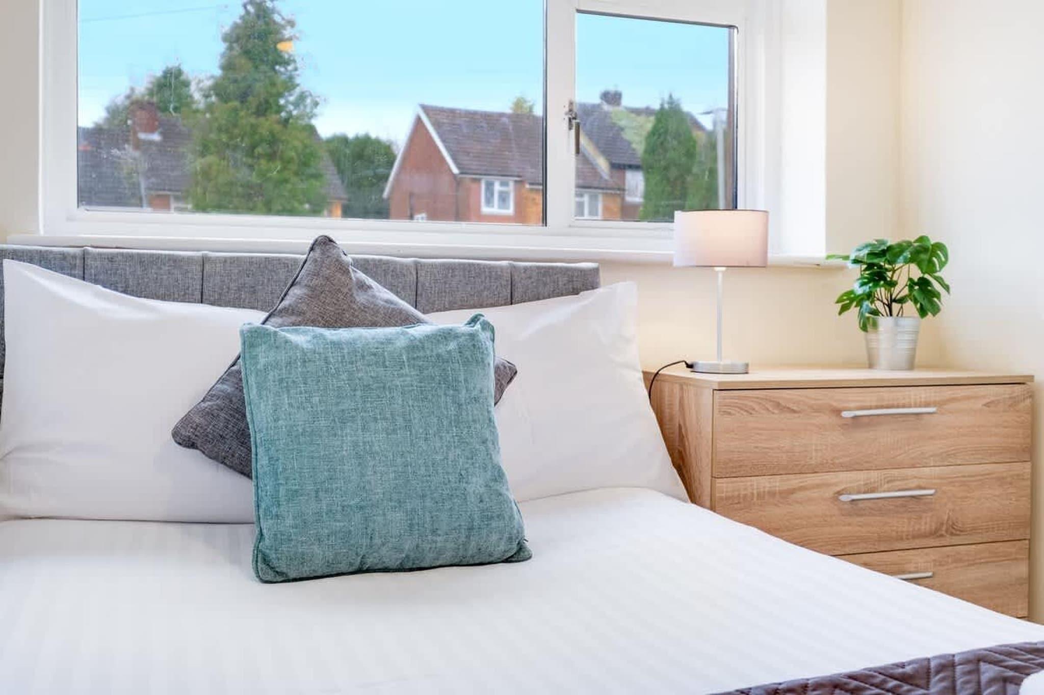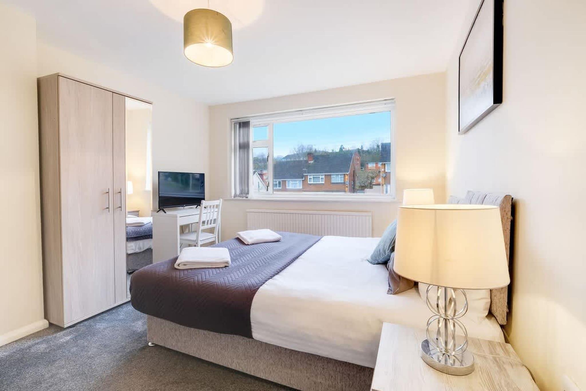 Dette hjem med fire soveværelser i High Wycombe er et smart valg til gruppeophold og balancerer plads, komfort og praktisk anvendelighed for op til otte gæster. Uanset om du rejser med familie, venner eller kolleger, gør planløsningen det nemt at tilbringe tid sammen, mens du stadig nyder den personlige plads. Stuen danner hjemmets sociale hjerte og er indrettet med et tv, et afslappet siddeområde og et spisebord til fælles måltider eller aftensnak. Lige ved siden af ligger det åbne køkken, der er fuldt udstyret med ovn, opvaskemaskine og køleskab med fryser, så du nemt kan lave mad i stedet for at være afhængig af takeaway. Sovearrangementerne er fleksible og velfordelte: et soveværelse med to enkeltsenge, et soveværelse med dobbeltseng og to soveværelser med kingsize-seng, der tilbyder ekstra komfort til længere ophold. Et fuldt funktionelt badeværelse med badekar tilføjer bekvemmelighed, især for familier med børn. Træd udenfor til en privat have, en behagelig bonus til frisk luft, morgenkaffe eller afslapning efter en dag ude. Praktiske faciliteter såsom vaskemaskine/tørretumbler, varme, højstol, dedikeret arbejdsplads, mørklægningsgardiner, Wi-Fi og parkering gør ejendommen lige velegnet til korte pauser og længere ophold. Herfra er du inden for rækkevidde af de naturskønne stier i Chiltern Hills, historiske steder som Hughenden Manor og de charmerende gader i West Wycombe. Med stærke transportforbindelser er en dagstur til London også nem at planlægge.