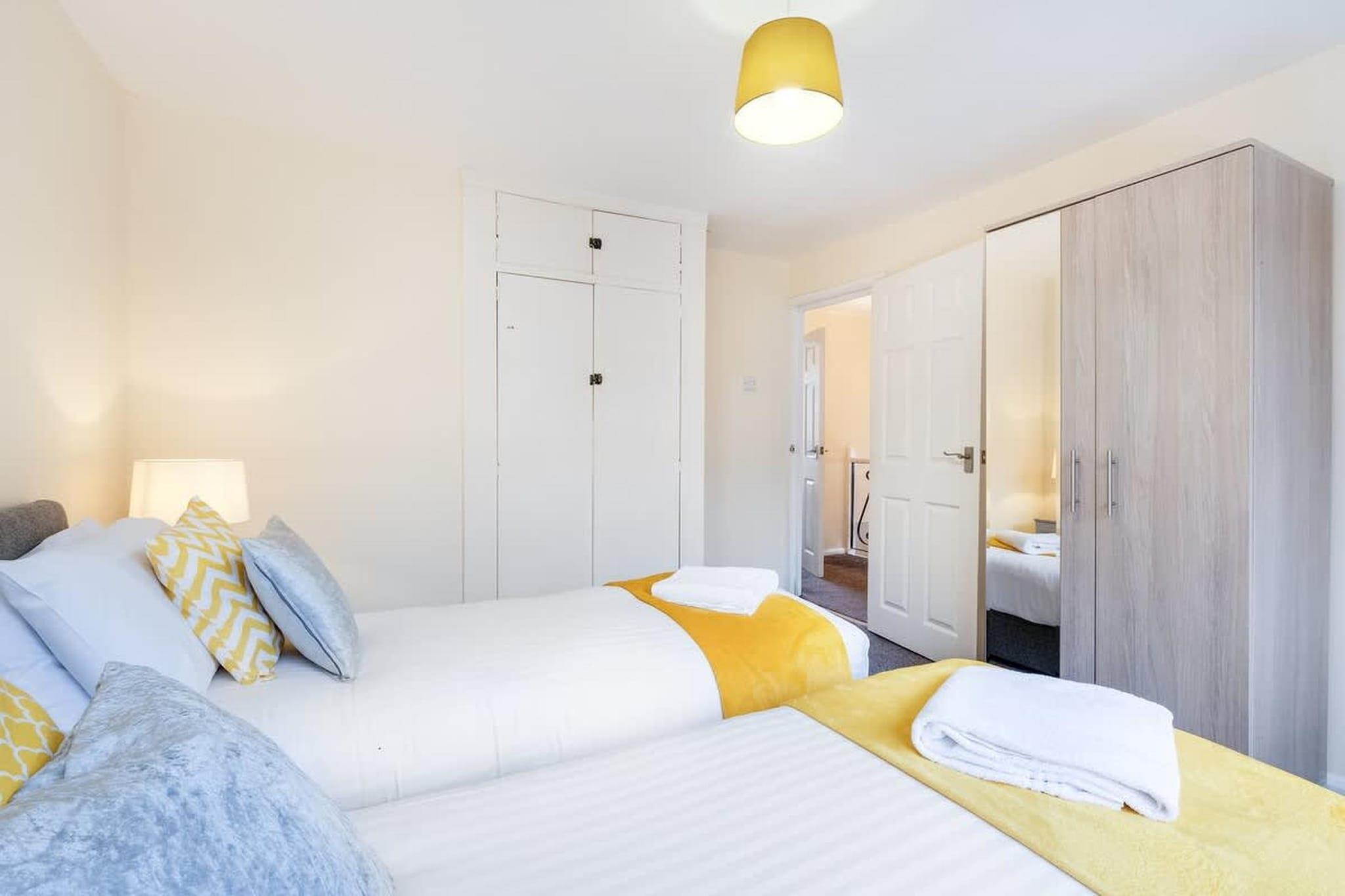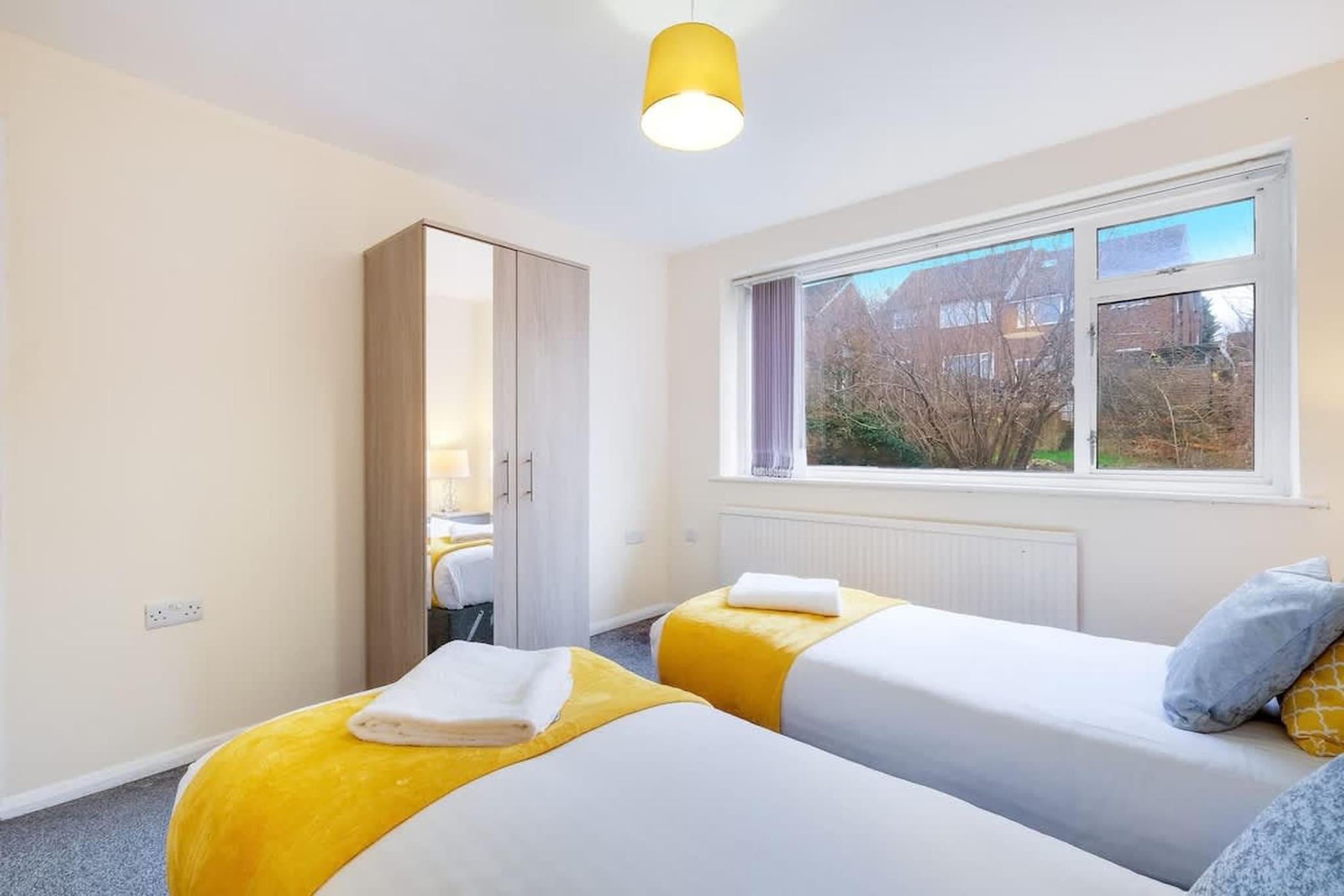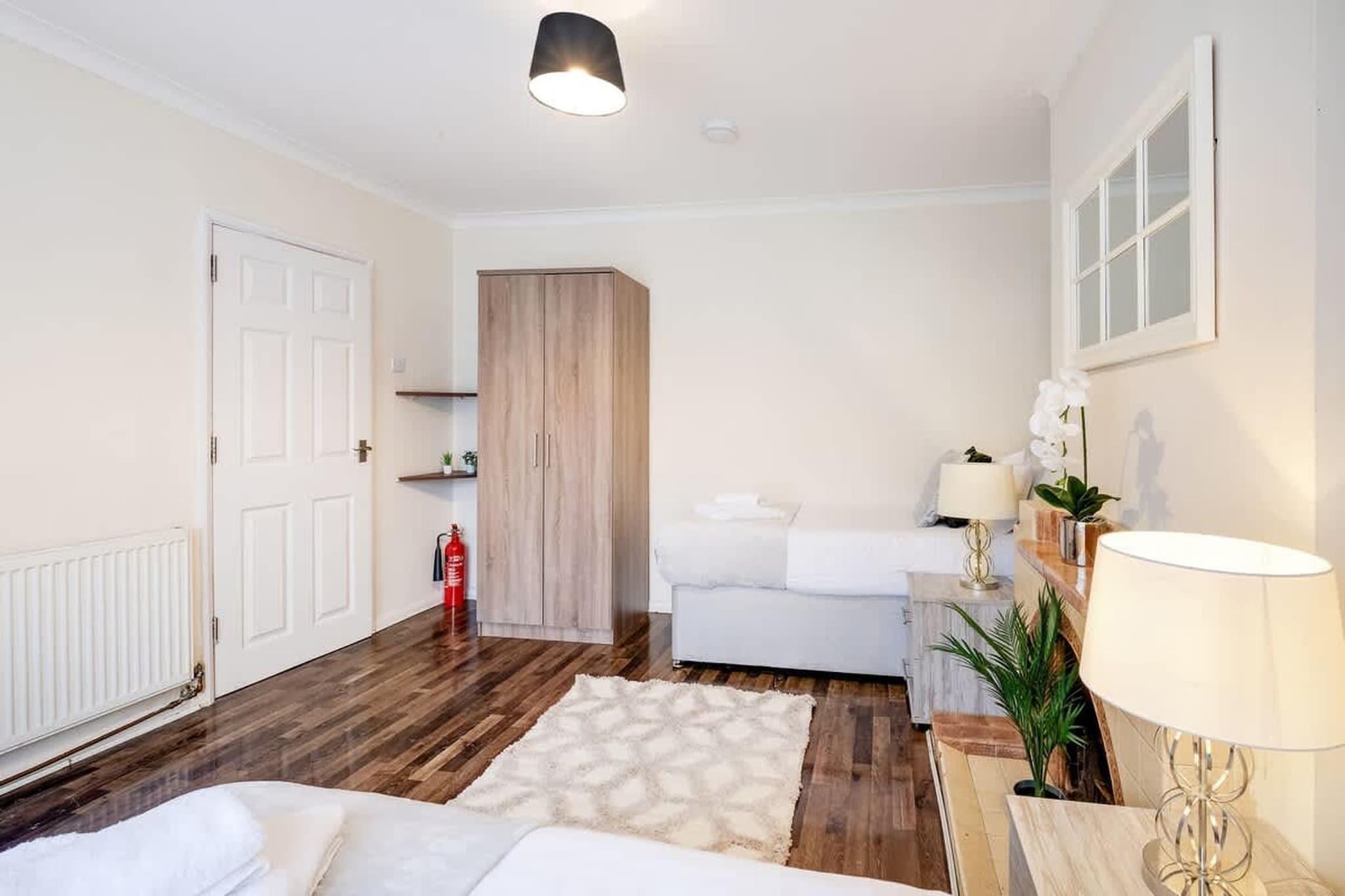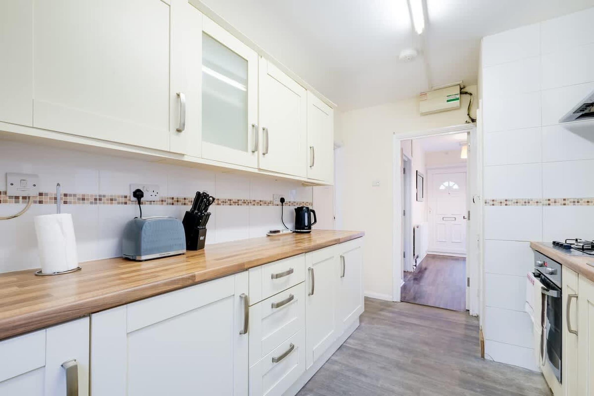 Dette hjem med fire soveværelser i High Wycombe er et smart valg til gruppeophold og balancerer plads, komfort og praktisk anvendelighed for op til otte gæster. Uanset om du rejser med familie, venner eller kolleger, gør planløsningen det nemt at tilbringe tid sammen, mens du stadig nyder den personlige plads. Stuen danner hjemmets sociale hjerte og er indrettet med et tv, et afslappet siddeområde og et spisebord til fælles måltider eller aftensnak. Lige ved siden af ligger det åbne køkken, der er fuldt udstyret med ovn, opvaskemaskine og køleskab med fryser, så du nemt kan lave mad i stedet for at være afhængig af takeaway. Sovearrangementerne er fleksible og velfordelte: et soveværelse med to enkeltsenge, et soveværelse med dobbeltseng og to soveværelser med kingsize-seng, der tilbyder ekstra komfort til længere ophold. Et fuldt funktionelt badeværelse med badekar tilføjer bekvemmelighed, især for familier med børn. Træd udenfor til en privat have, en behagelig bonus til frisk luft, morgenkaffe eller afslapning efter en dag ude. Praktiske faciliteter såsom vaskemaskine/tørretumbler, varme, højstol, dedikeret arbejdsplads, mørklægningsgardiner, Wi-Fi og parkering gør ejendommen lige velegnet til korte pauser og længere ophold. Herfra er du inden for rækkevidde af de naturskønne stier i Chiltern Hills, historiske steder som Hughenden Manor og de charmerende gader i West Wycombe. Med stærke transportforbindelser er en dagstur til London også nem at planlægge.