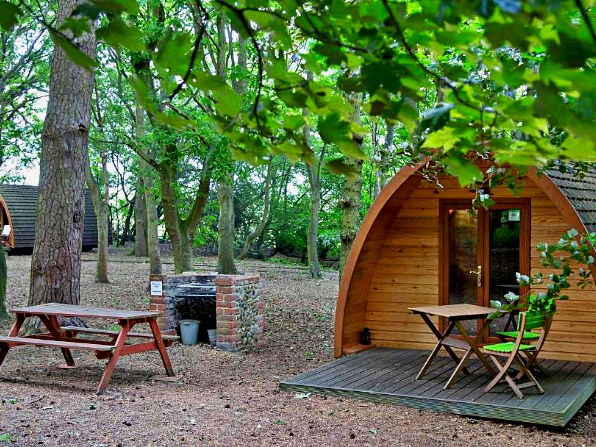 "Eadmund Pod", 2-room chalet 15 m2, on the ground floor. Object suitable for 4 adults. Living room with 1 sofabed and 1 pull-out bed. 1 room with 1 double bed. Small kitchen (toaster, kettle, microwave). Shower/WC. Terrace. Barbecue. Facilities: Internet (WiFi, free). Please note: non-smokers only. 2 pets/ dogs allowed.