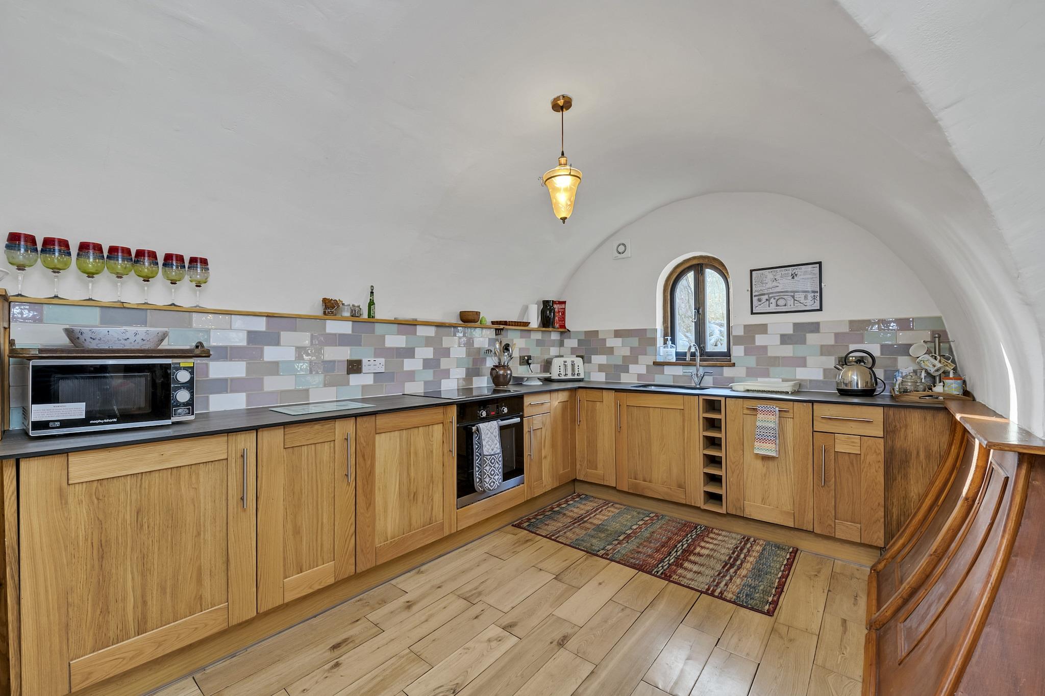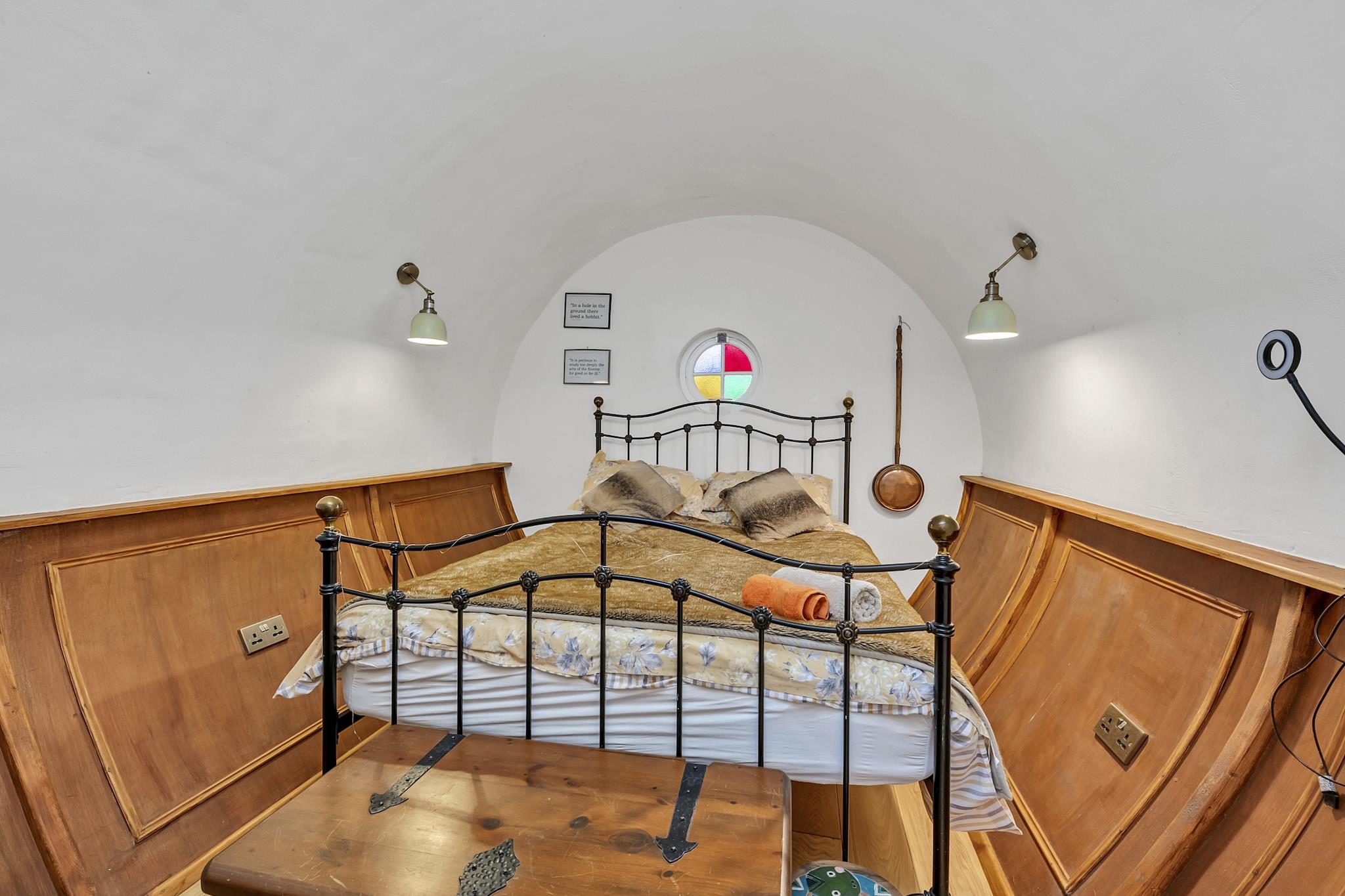 Oplev magien i Suffolks landskab med et ophold på dette unikke underjordiske tilflugtssted, der ligger i en græsklædt knold. Omgivet af bølgende bakker, frodige marker, ældgamle skove og vilde torner tilbyder denne skovhavn en fordybende oplevelse i naturens skønhed. Uanset om du udforsker nærliggende vandrestier, cykelruter eller blot nyder de fredelige skovmiljøer, er denne charmerende bolig den perfekte base for eventyr og afslapning. Ejendommen er designet til komfortabelt at være vært for op til fire gæster og har to soveværelser med dobbeltsenge og et separat familiebadeværelse. Indenfor finder du en rummelig lounge med en elektrisk kul-effekt pejs, perfekt til hyggelige aftener, sammen med moderne bekvemmeligheder som tv og Wi-Fi. Det fuldt udstyrede køkken og familiens spiseplads kombinerer gammeldags charme med moderne bekvemmeligheder, hvilket gør det nemt at nyde hjemmelavede måltider efter en dag med udforskning. Kæledyrselskere vil sætte pris på dens hundevenlige politik, så dine lodne venner kan deltage i dit eventyr på landet. Parkering er bekvemt tilgængeligt på stedets parkeringsplads, og den omkringliggende have byder på et roligt udendørsområde. Fra at opdage historiske byer til at udforske Suffolks naturskønne kystlinjer, inviterer dette skovområde dig til at opleve regionens vidundere i komfort og stil. Book din ferie på landet i Suffolk i dag!