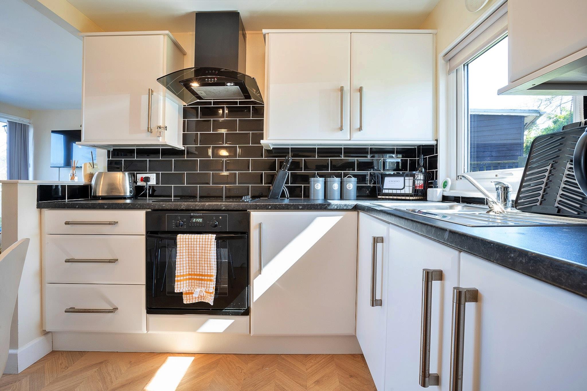 Flygt til de betagende landskaber i Snowdonia National Park og opdag en fortryllende feriehytte, perfekt designet til familier, der søger eventyr og afslapning. Dette idylliske tilflugtssted lover en uforglemmelig ferie, komplet med adgang til en række faciliteter i den charmerende Glan Gwna Country Holiday Park. Her kan du dase i solen ved den fælles udendørs swimmingpool, lade dine børn udforske det livlige legeområde eller kaste din line ved den maleriske fiskesø. Træd indenfor og bliv mødt af et varmt og indbydende interiør, hvor komfort møder stil. Den rummelige opholdsstue i åbent plan er badet i naturligt lys, udsmykket med smagfuld indretning, der inviterer dig til at slappe af. Det fuldt udstyrede køkken er klar til dine kulinariske eventyr, så du kan tilberede dejlige måltider til deling ved spisebordet, hvor der er plads til fem. For den ultimative madoplevelse, drag fordel af terrassen og nyd dine måltider al fresco, mens du nyder en fantastisk udsigt til solnedgangen. Hytten kan rumme op til fem gæster og har to charmerende soveværelser, der lover afslappende nætter. Det store soveværelse har en dobbeltseng, rigelig garderobeplads og et tv til afslappede aftener. Det andet soveværelse byder på en sjov køjeseng opsætning med en enkelt på toppen og en dobbelt under, hvilket gør det perfekt til familier med børn. Et moderne familiebadeværelse, komplet med bruser over badekar, toilet og håndvask, tilføjer til bekvemmeligheden. Glan Gwna Country Holiday Park ligger på en vidtstrakt 120 acres smukt anlagt grund, komplet med skovstier, fredfyldte søer og bugtende vandløb. Tag en afslappet spadseretur gennem parken for at fordybe dig i omgivelsernes ro, eller begiv dig videre for at udforske vidunderne i Anglesey, Snowdonia og Llyn-halvøen - alt sammen kun en kort køretur væk. Bemærk venligst poolens sæsonbestemte karakter, der er åben fra slutningen af ??maj til september, og tilgængeligheden af ??Wi-Fi er begrænset til baren/restaurantområdet på stedet. Du finder et let-at-administrere el-nøglekort-system under dit ophold, der holder dit energiforbrug effektivt, mens du nyder hjemmets komfort. Fisketilladelser kan købes i receptionen, og husk, engangsgrill er ikke tilladt i parken for at bevare det uberørte miljø.