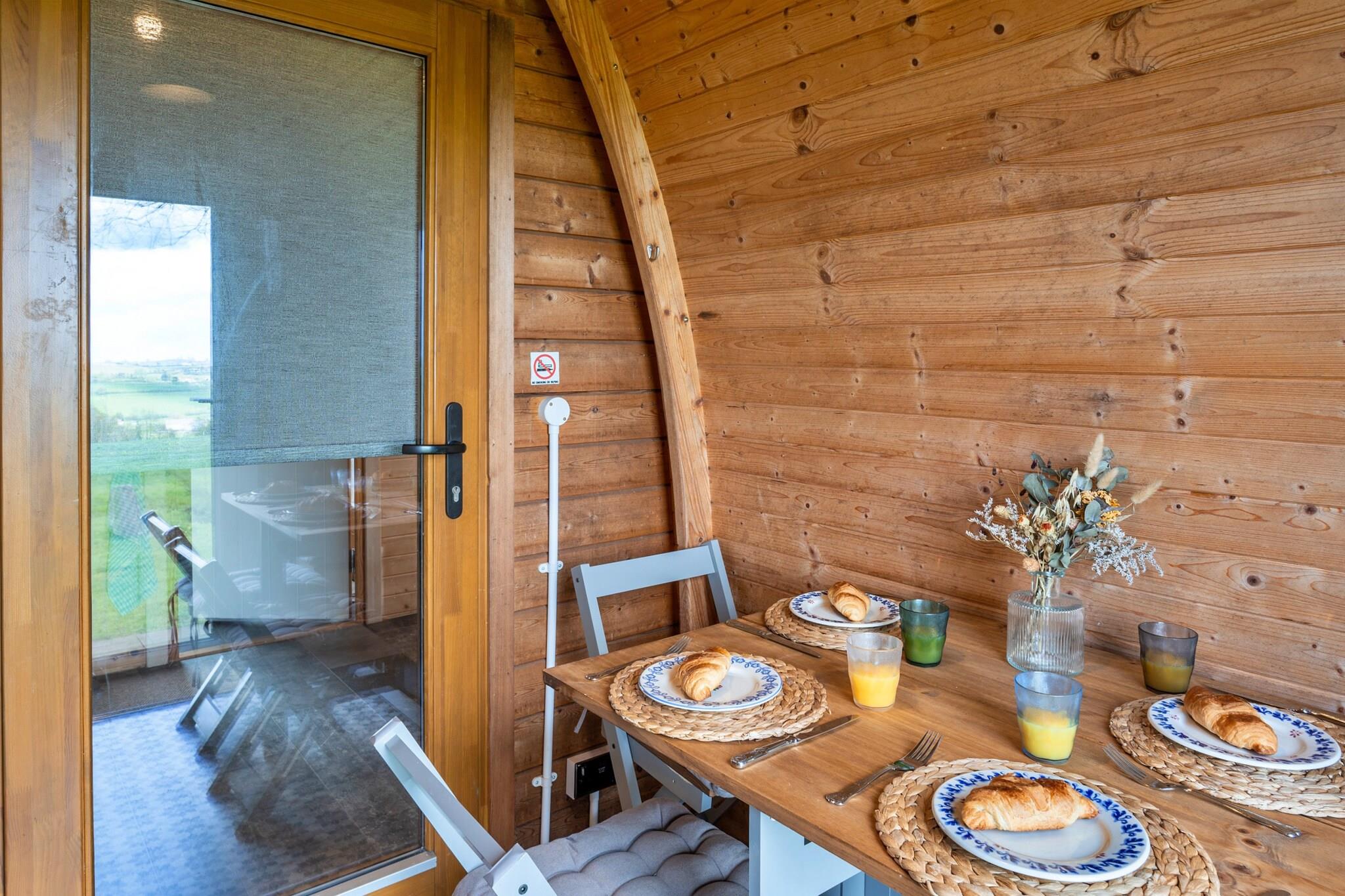 Beliggende midt i frodige grønne områder inviterer denne unikke glamping-oplevelse dig til at fordybe dig i naturen, mens du nyder hjemmets komfort. Omgivet af en betagende udsigt over dalen, kan du nyde din morgenkaffe eller slappe af med et aftenglas vin på den private terrasse, alt imens du trækker vejret i den friske landlige luft. Det fortryllende landskab, præget af lyden af ??raslende blade og kvidrende fugle, skaber et roligt tilflugtssted perfekt for dem, der søger et fredeligt tilflugtssted. Denne opsætning kan rumme op til fire gæster fordelt på to gennemtænkt designede sovepladser og er ideel til familier eller par, der er ivrige efter at udforske det fortryllende landskab i Somerset. Blot en kort køretur væk lokker de historiske byer Bath og Wells med deres rige arv, mens de charmerende kystbyer tilbyder en dejlig flugt til kysten. Med Fosse Way i nærheden er eventyr lige ved hånden, uanset om du leder efter fængslende vartegn eller panoramiske vandrestier, der snor sig gennem det maleriske landskab. Indeni har hovedpuden et hyggeligt soveværelse med dobbeltseng, en lille stue og et tekøkken udstyret til enkel tilberedning af måltider, hvilket sikrer, at dit ophold er både behageligt og bekvemt. Den ekstra dobbelte sovekabine, beliggende kun en kort gåtur væk, tilbyder en følelse af uafhængighed for eventyrlystne børn eller et privat tilflugtssted for voksne. Sæsonbestemte opgraderinger forbedrer den fælles oplevelse med et vejrbestandigt spiseområde, der giver dig mulighed for at forbinde dig med dine kære, mens du nyder de fantastiske naturlige omgivelser. Her er hvert øjeblik en invitation til at slappe af, udforske og værdsætte skønheden i det fri.