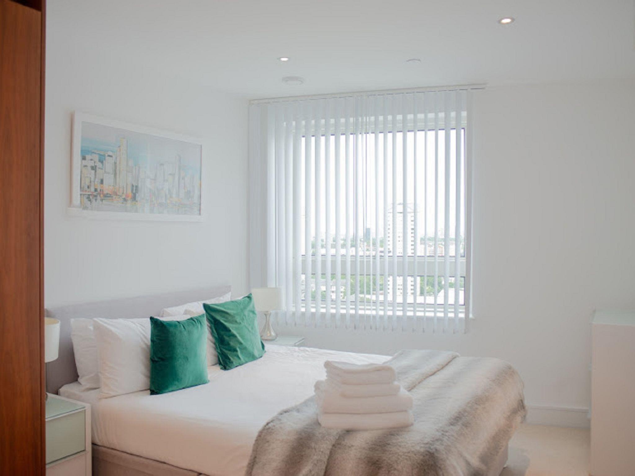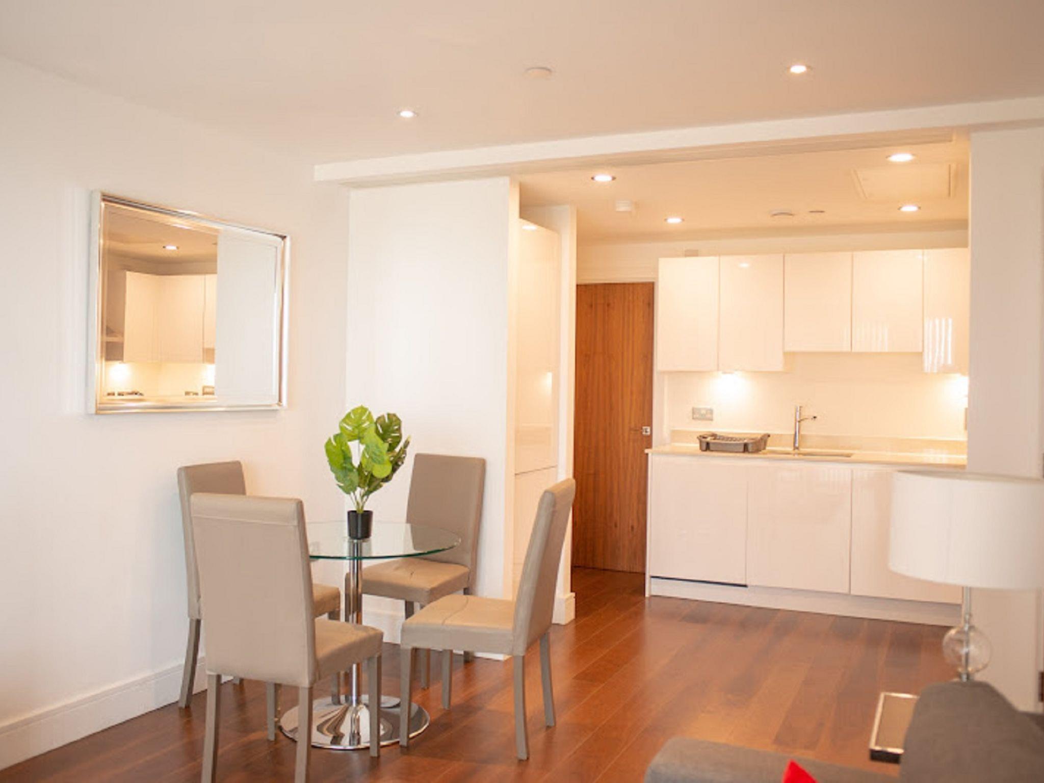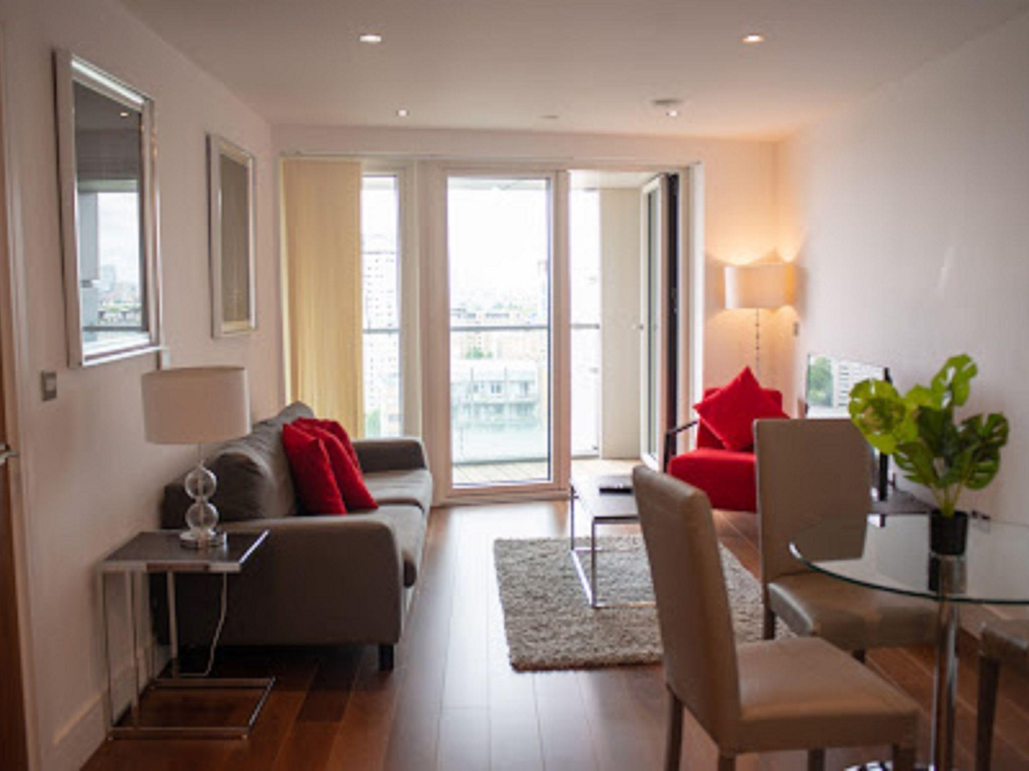 Modern apartment block. On the outskirts, 1 km from the centre of Canary Wharf, in a central position. In the house: fitness room (extra). Lift, central heating system, laundry (extra). Room cleaning weekly (included). Breakfast (extra). Bus stop "Hutchings Street" 650 m, railway station "Canary Wharf" 1 km, underground station "Canary Wharf" 1 km. Nearby attractions: Billingsgate market 2 km, O2 Arena 4 km, London Eye 9 km, Greenwich market 8 km, Tower of London & Tower Bridge 5 km, Buckingham Palace 10 km. Please note: reception open 09:00-17:00 hrs. Baby equipment (extra), childminding (extra). Please note: 24hr guard. Guarded residence. The photograph shows a typical example. The holiday properties may differ in living space, floorplan, equipment and furnishing.