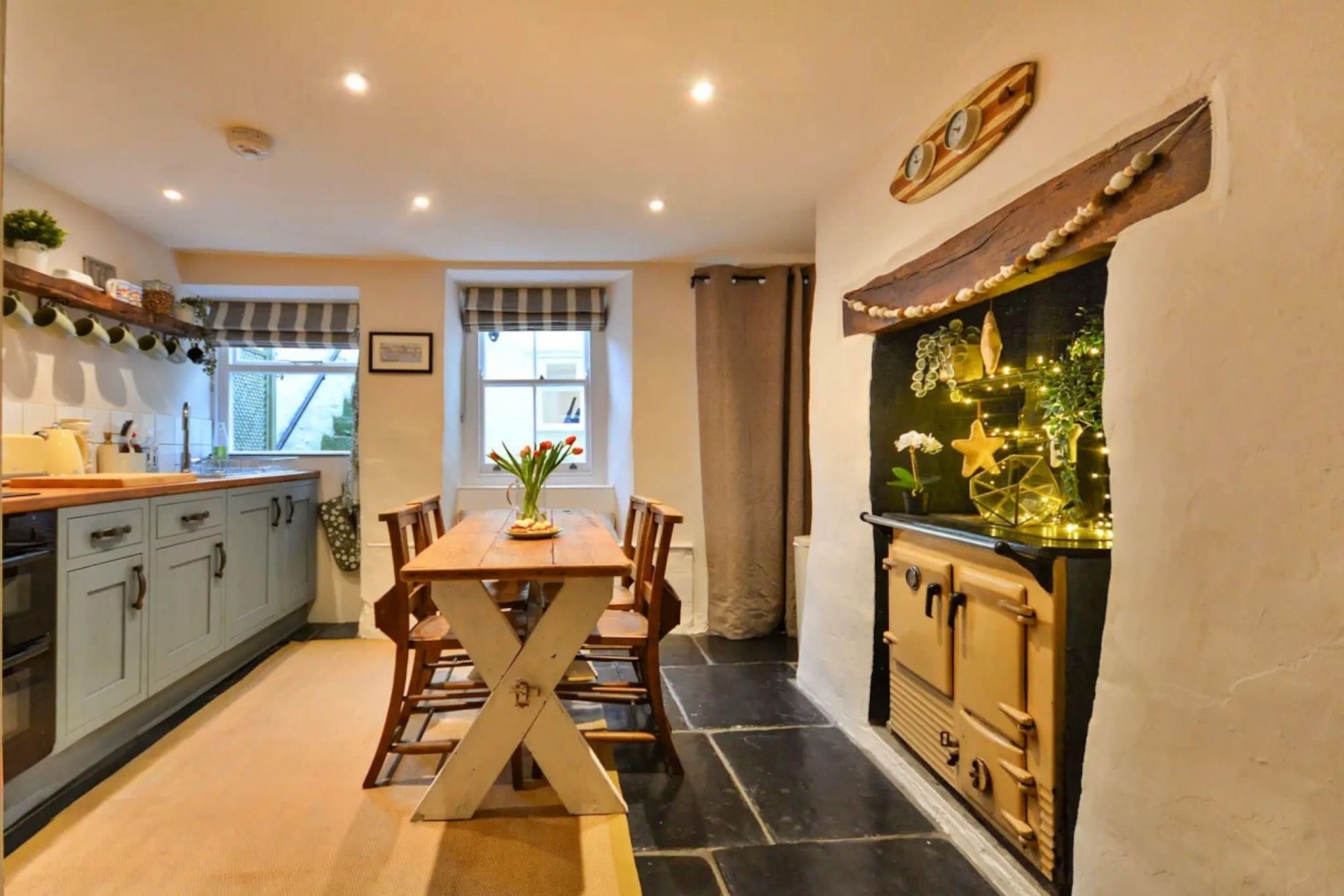 Beliggende i hjertet af den historiske fiskerlandsby Cawsand, kombinerer denne charmerende hytte fra det 18. århundrede rustik charme med moderne komfort. Kun en kort gåtur fra Cawsand Beach tilbyder hytten en idyllisk base for at udforske Cornwalls betagende kystlinje. Med to king-size soveværelser, det ene med et fritstående badekar til at nyde udsigten over landskabet, og et tredje soveværelse med køjesenge perfekt til børn eller små grupper, kan denne hytte rumme op til seks gæster. Et praktisk brusebad er også inkluderet for ekstra komfort. Den hyggelige stue har åben pejs, hvilket skaber den perfekte atmosfære til afslapning efter en dag på stranden. Det fuldt udstyrede køkken, komplet med en spiseplads, tilbyder alt hvad du behøver for at tilberede og nyde måltider sammen. Et separat bryggers tilføjer bekvemmelighed, mens den lille gårdhave bagerst i sommerhuset er ideel til at skylle sandede fødder af og tørre håndklæder. For kæledyrselskere er hytten kæledyrsvenlig og byder velkommen til en velopdragen hund mod et lille ekstra gebyr. Cawsand Cottage ligger mindre end et minuts gang fra stranden og hjertet af landsbyen, hvor traditionelle pubber, caféer og unikke butikker venter. Den omkringliggende Rame-halvø, med sine smalle brostensbelagte gader og fantastiske kyststier, byder på et væld af naturskønne vandreture og betagende udsigt. Gennemsyret af historie, inklusive en fascinerende smuglerarv, tilbyder denne landsby den perfekte blanding af kystcharme og rolige landskaber til din næste ferie i Cornwall.