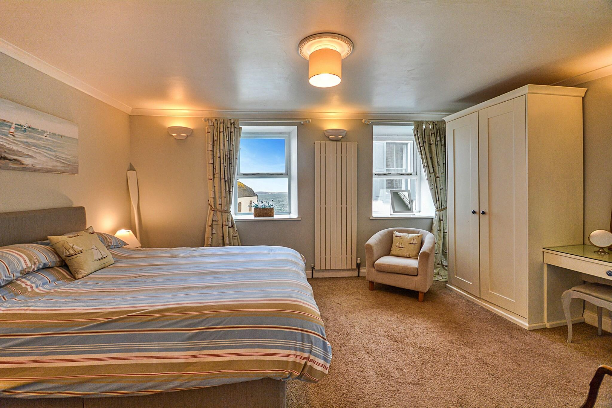 Dette charmerende sommerhus er perfekt beliggende mellem de maleriske kystlandsbyer Kingsand og Cawsand, hvilket gør det til et ideelt tilflugtssted for både familier og kæledyrsejere. Med plads til op til seks gæster fordelt på tre komfortable soveværelser, tilbyder det et indbydende tilflugtssted for dem, der ønsker at nyde en dejlig flugt til kysten. Når du træder ind, bliver du mødt af et opholdsområde i åbent plan med en elektrisk pejs og en fantastisk havudsigt, hvilket skaber en hyggelig og indbydende atmosfære. Køkkenet og spisepladsen fører til en solbeskinnet gårdhave på bagsiden af ??ejendommen, perfekt til at nyde varme sommerdage. Et praktisk toilet er også placeret på bagsiden for ekstra komfort.På første sal har et rummeligt kingsize-soveværelse en vidunderlig havudsigt, mens det moderne familiebadeværelse, udstyret med både separat bruser og et afslappende badekar, er det perfekte sted at slappe af efter en dag med at udforske stranden. Anden sal byder på et charmerende dobbeltværelse, der er ideelt til børn, komplet med en lille natlampe og godnatbøger, hvilket sikrer et hyggeligt miljø for de små. På den anden side af gangen byder et andet kingsize-værelse på en betagende udsigt fra vinduerne, hvilket gør det til et dejligt sted at vågne op. Med de fantastiske strande i Kingsand og Cawsand kun en kort gåtur væk, er dette sommerhus godt placeret for dem, der ønsker at tilbringe deres dage ved havet. Mens privat parkering ikke er tilgængelig i denne historiske landsby, er to offentlige betalings-og-display parkeringspladser bekvemt placeret inden for fem minutters gang. Gæster bliver mindet om at medbringe deres egne badehåndklæder for at nyde afslappede dage på sandkysten. Med sin kæledyrsvenlige politik er denne hytte et glimrende valg for dem, der ønsker at tage deres lodne ledsagere med på deres eventyr ved havet.
