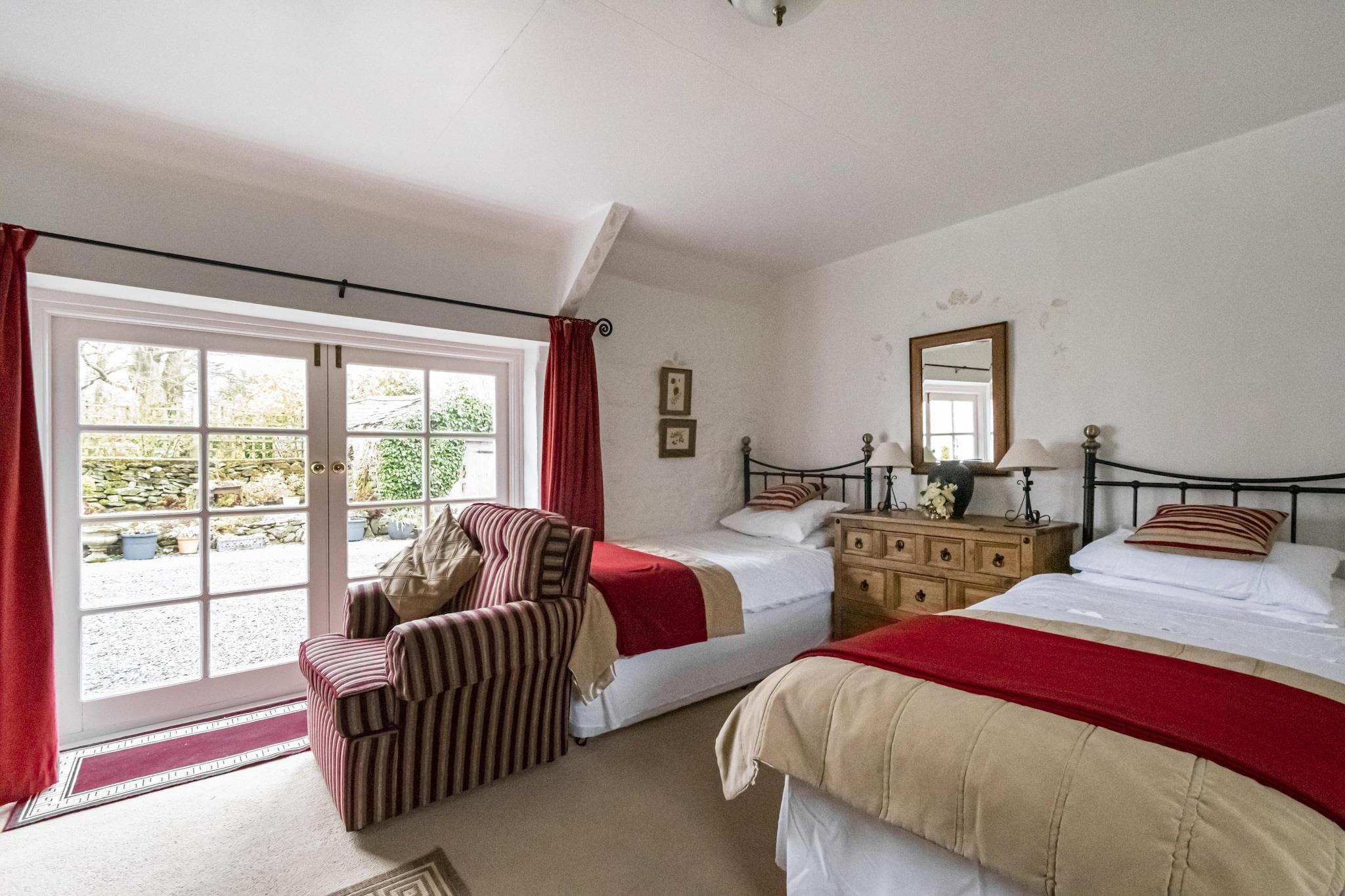 Stueetage: (Køkken(spisebord, elkedel, brødrister, komfur(Komfur med fire kogeplader, elektrisk), ovn, mikrobølgeovn, køleskab), Stue/soveværelse(2x enkeltseng, Fjernsyn, sofahjørne, DVD-afspiller, gaspejs), badeværelse(bruser(enhed), håndvask, toilet)) varme(elektrisk), have, havemøbler, parkering, dam