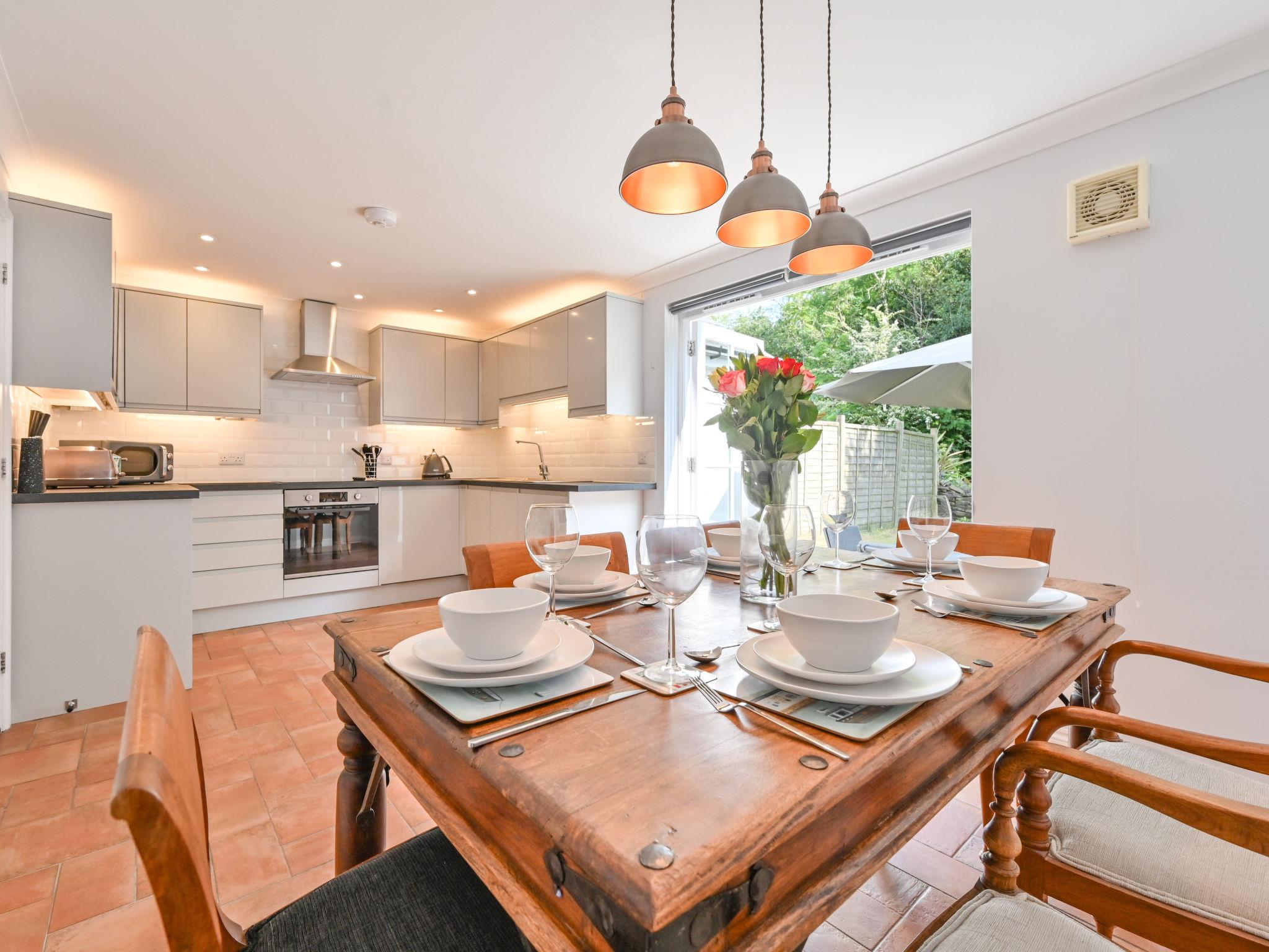 Charlestown: Sea Compass is a special setup, comprising two adjacent houses. This arrangement provides ample space for larger groups or families, allowing everyone to stay close together while still enjoying their own private areas. Modern, beautiful house "Sea Compass". 2 houses in the residence. In the centre of Charlestown, in a quiet position, excellent location: right in the centre but still quiet, 500 m from the edge of the forest, 480 m from the sea, 480 m from the beach, in a cul-de-sac. For shared use: children's playground. Private: lawn for sunbathing, beautiful garden to relax. Patio, garden furniture, barbecue. In the house: central heating system, washing machine. Parking (for 2 cars). Grocery 1 km, supermarket 1 km, shopping centre 2 km, restaurant, bar, café 480 m, bicycle rental 2 km, pub garden 480 m, bus stop "Charlestown" 800 m, railway station "St Austell" 3 km, sandy beach "Carlyon Bay" 2 km pebble beach "Charlestown" 480 m, park "Charlestown" 480 m. Marina 480 m, golf course (18 hole) 2 km, children's playground, fishing possibilities 480 m. Nearby attractions: Charlestown Historical port 480 m, Eden Project 5 km, Lost Gardens of Heligan 10 km, Mevagissey Harbour 9 km, St Mawes Castle 42 km, Lanhydrock House & Garden 33 km. Well-known lakes can easily be reached: Silbyback Lake 45 m. Hiking paths: South West Coast Path 480 m, Kingswood Pentewan 2 km, Saints Trail 3 km. Please note: baby equipment on request.