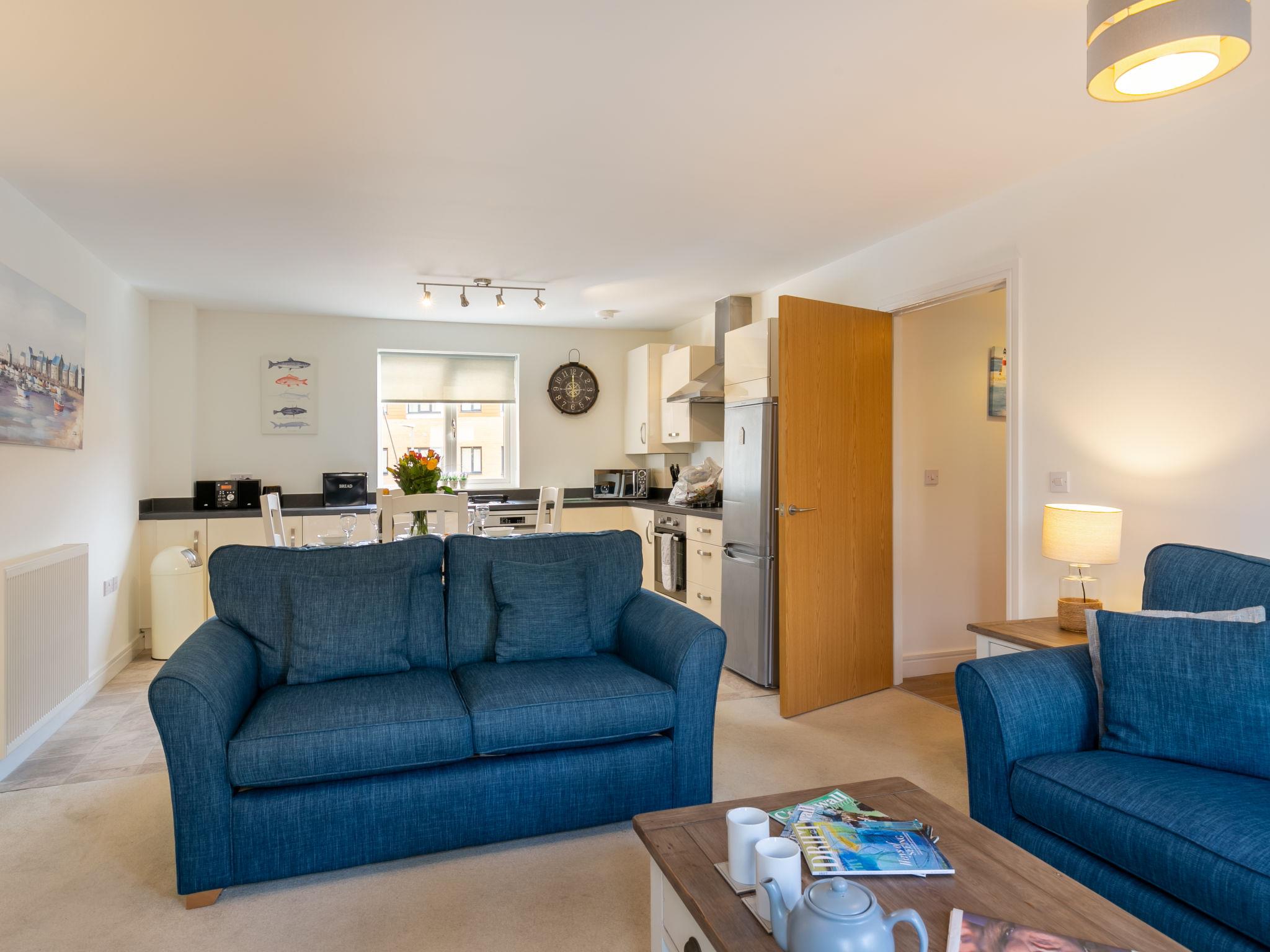 Charlestown: Modern apartment ideally situated moments from historic Charlestown, filming location of Rosamunde Pilcher series and Poldark. Private gated community beach 5 minute walk away. Bars, restaurants, cafes all within walking distance. Ideally situated to explore the South Cornish coast. modern apartment block "The Saltings". In the district of Charlestown, from the sea, 150 m from the beach, direct access to the beach. For shared use: private beach. In the house: central heating system. Parking at the house space n 18. Grocery 1 km, supermarket 1 km, restaurant 1 km, bar 1 km, bakery 1 km, café 1 km, bicycle rental 2 km, pub garden 1 km, bus stop "Duporth" 100 m, railway station "St Austell" 2 km, sandy beach "Crinnis" 100 m pebble beach "Charlestown" 500 m. Golf course (18 hole) 1 km, sports centre 1 km, walking paths from the house 200 m, children's playground 1 km, fishing possibilities 1 km. Nearby attractions: Charlestown Historic harbour 1 km, Eden Project 5 km, Lost Gardens of Heligan 10 km, St Mawes Castle 30 km, Caerhayes Beach 14 km, Mevagissey Harbour 6 km. Well-known lakes can easily be reached: Silbyback Lake 48 km. Hiking paths: South West Coast Path 1 km.