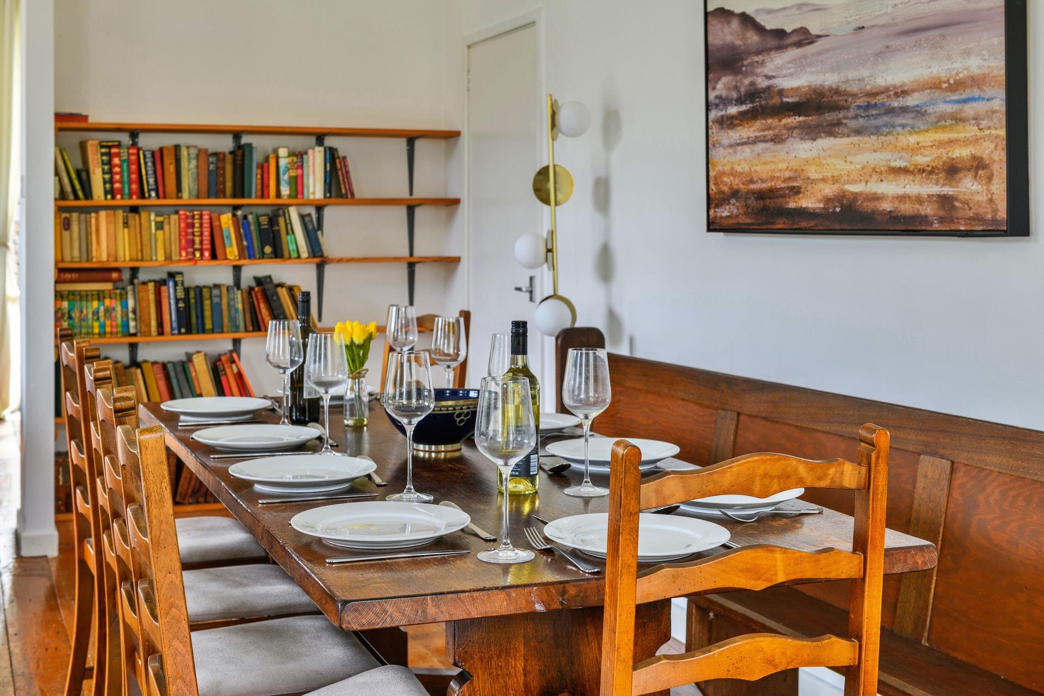 Dette unikke feriehus er et ombygget kapel med fem soveværelser, der komfortabelt kan rumme op til 12 gæster, hvilket gør det til et ideelt valg til store familiesammenkomster eller gruppeophold. Med fire soveværelser med dobbeltsenge og et køjeværelse i stueetagen med plads til fire, tilbyder det både charme og rummelighed. Gæsterne kan slappe af i det udendørs spabad, nyde spil som bordfodbold og pool i det dedikerede spillelokale eller hygge sig ved brændeovnen i det store opholdsområde. Kæledyr er velkomne, og der er også en barneseng, højstol og el-oplader. Gæsterne kan også nyde gratis adgang til alle faciliteter, herunder Wi-Fi og parkering. Beliggende i den naturskønne landsby Dinas Mawddwy på den sydlige spids af Snowdonia National Park, er hjemmet omgivet af rig naturlig skønhed og fascinerende historie. Kun en kort køretur fra Cader Idris og byen Dolgellau har besøgende nem adgang til vandrestier, lokale markeder og historiske vartegn. Landsbyens pub ligger kun et minuts gang væk, og tilbyder frisklavede, lokale retter, hvilket gør det både praktisk og behageligt at spise ude. Indvendigt har ejendommen bevaret meget af sin oprindelige charme med skyhøje lancetvinduer og synlige murværker, suppleret med moderne opdateringer. Det fuldt udstyrede køkken omfatter køleskab, ovn, mikroovn, opvaskemaskine, kaffemaskine og redskaber, perfekt til selvforplejning. Det store badeværelse i stueetagen har bruseniche og fritstående badekar. Sengelinned, håndklæder, slutrengøring og brug af boblebad er alt inkluderet, hvilket sikrer et behageligt og mindeværdigt ophold.