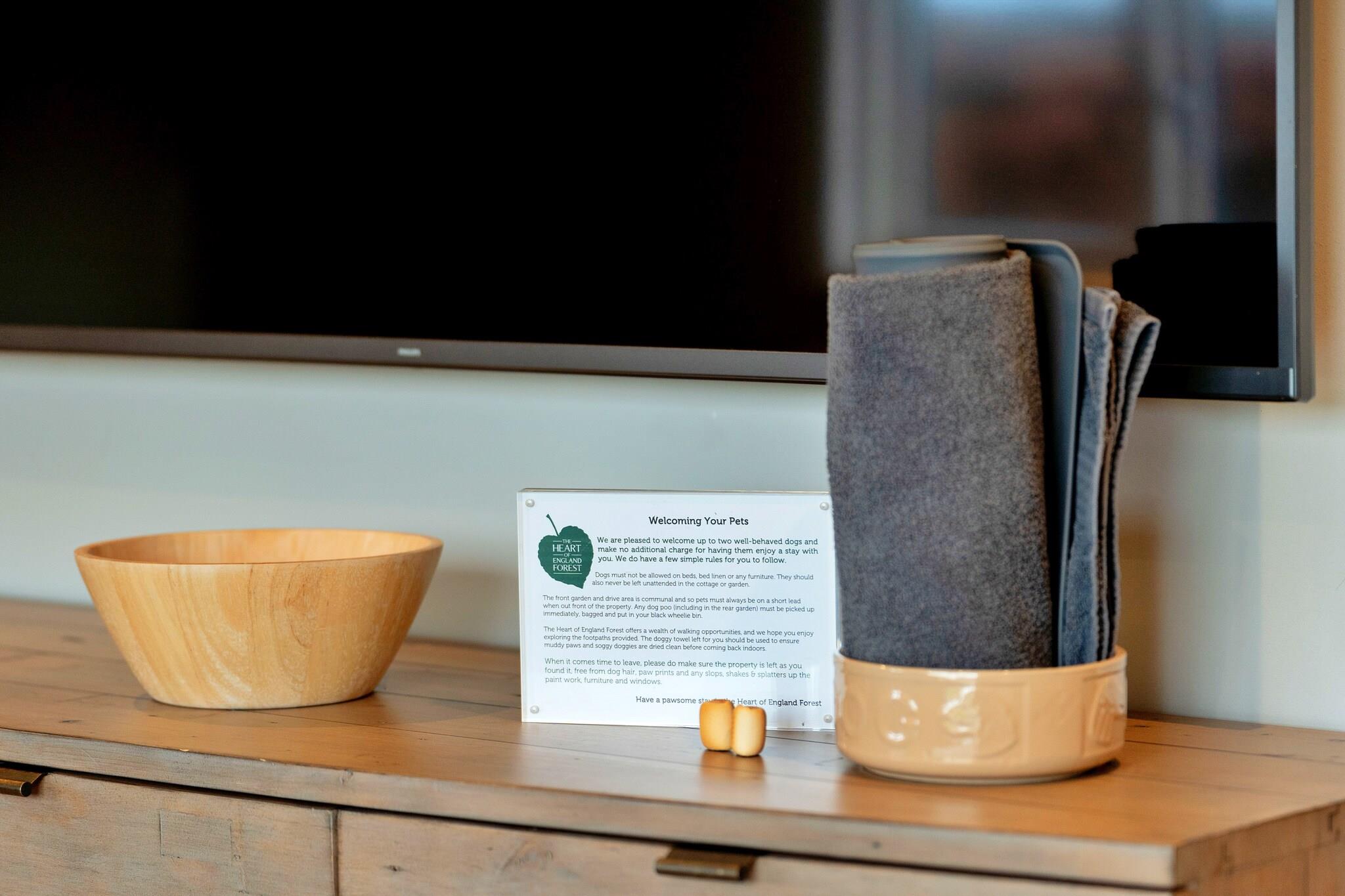 Acorn Cottage er et fredeligt miljøvenligt tilflugtssted beliggende i Heart of England Forest, der tilbyder et perfekt tilflugtssted for par, små familier eller solorejsende. Dette charmerende sommerhus har et hyggeligt opholdsområde i åbent plan med naturlige teksturer, hvilket skaber et indbydende sted at slappe af og slappe af. Med et fuldt udstyret køkken og et håndlavet spisebord i træ med plads til fire, er hytten ideel til selvforplejning. Det store soveværelse har en luksuriøs kingsize-seng med eget badeværelse, der inkluderer både badekar og bruseniche, mens det andet soveværelse har en skræddersyet enkeltseng. En rummelig bruseniche er tilgængelig i hovedbadeværelset, og en praktisk garderobe er placeret i stueetagen. Den omkringliggende 7.000 hektar store Heart of England Forest er det perfekte sted for naturelskere, med miles af offentlige gangstier at udforske, hvilket giver en direkte forbindelse til Noleham Brook og Colletts Pond. Gæster kan vandre gennem en række forskellige levesteder, fra vilde blomsterenge til gamle skove og nyde fredelige øjeblikke i den omkringliggende naturlige skønhed. Ejendommen er beliggende i kort afstand fra disse vandreruter, hvilket gør det til et ideelt sted for alle, der ønsker at opleve det store udendørs. Acorn Cottage tilbyder en privat, indhegnet have med terrasse og udendørsmøbler, hvilket giver den perfekte plads til al fresco spisning. Det har også sikker cykelopbevaring for gæster, der ønsker at udforske området på to hjul. Parkering er tilgængelig for op til to køretøjer, og hytten er kæledyrsvenlig, og tillader op til to hunde mod et mindre tillæg. Med moderne bekvemmeligheder såsom en EV-oplader, Wi-Fi og rigelig plads til at slappe af, giver dette øko-feriehus en perfekt blanding af luksus, bæredygtighed og natur.