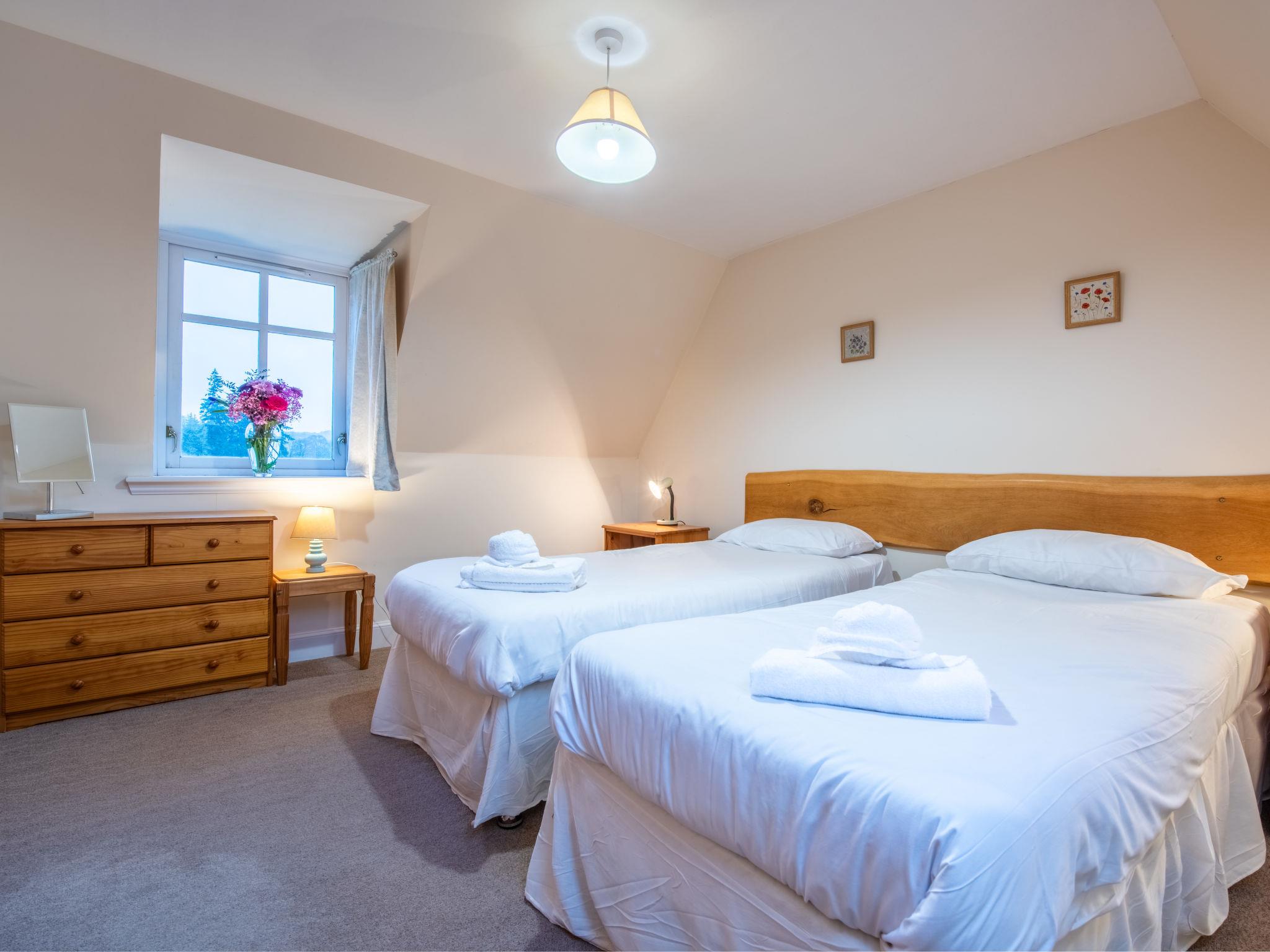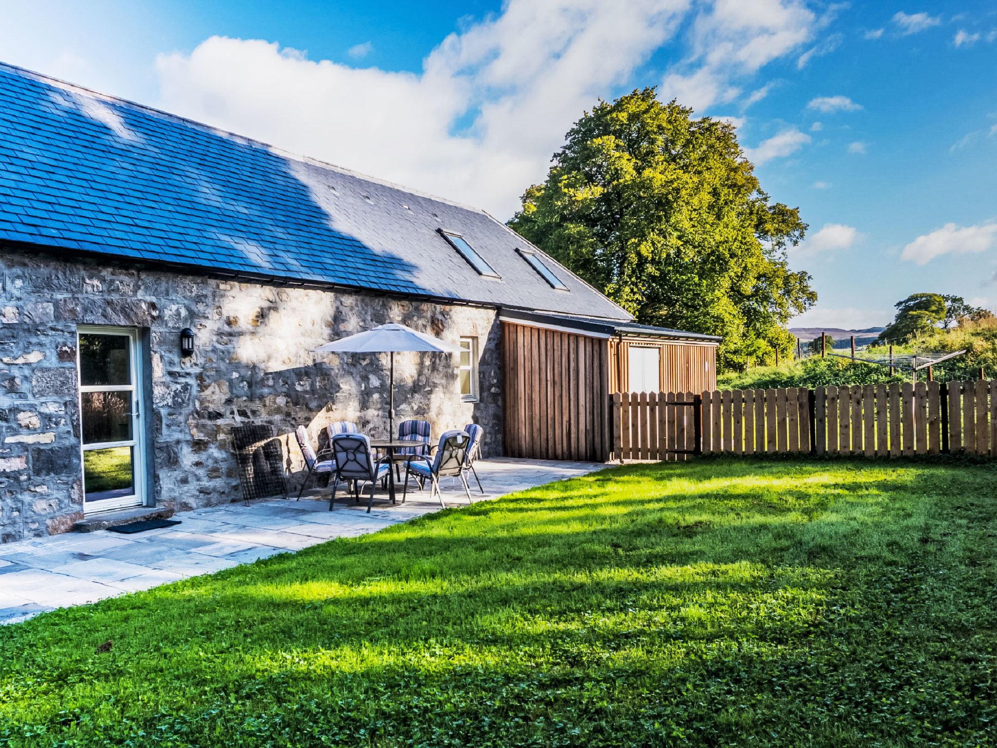 16 km from Drumnadrochit: Beautiful, cosy holiday development "Corrimony View", detached, surrounded by trees and fields. 2 houses in the resort. In a secluded, quiet position, in the countryside. Private: large garden (fenced) with lawn, parking at the house. Shop 16 km, grocery 16 km, supermarket 16 km, restaurant 16 km, café 16 km, bus stop "Loch Ness Inn" 16 km. Golf course (18 hole) 33 km, riding stable 4 km. Nearby attractions: Castle Urquhart 17 km, Loch Ness Exhibition Centre 15 km, Fort Augustus 44 km, Kyle Of Lochalsh - Isle of Skye 117 km, Jacobite Boat Trips 20 km, Culloden Battlefield 49 km. Well-known lakes can easily be reached: Loch Ness 15 km, Loch Meiklie 8 km. Hiking paths: Plodda falls 18 km, Dog falls 15 km, Urquhart Bay Wood 16 km. Please note: car recommended. The owner does not accept any groups. The owner does not accept any youth groups. No hen do or stag parties available to book this property.
