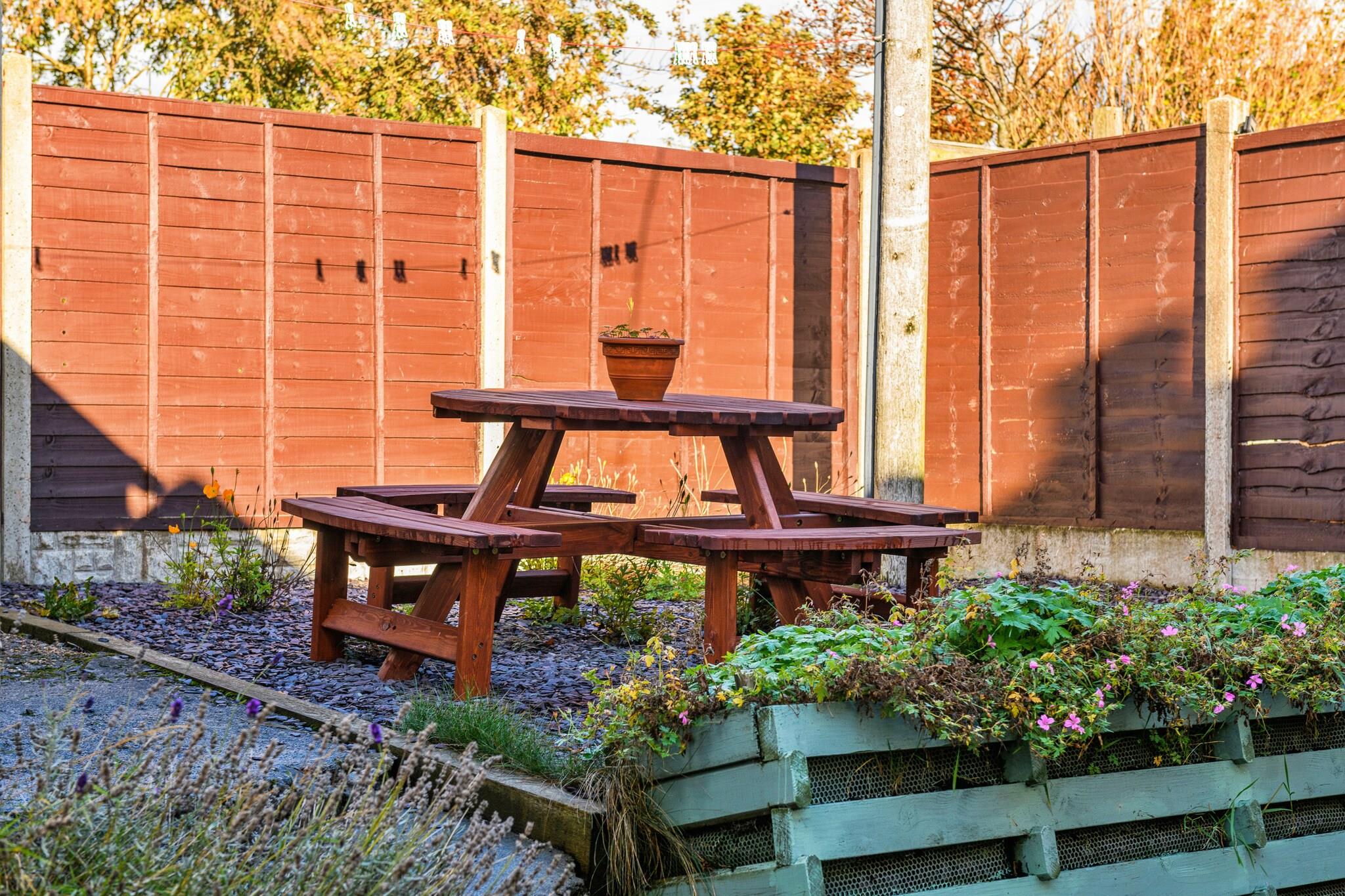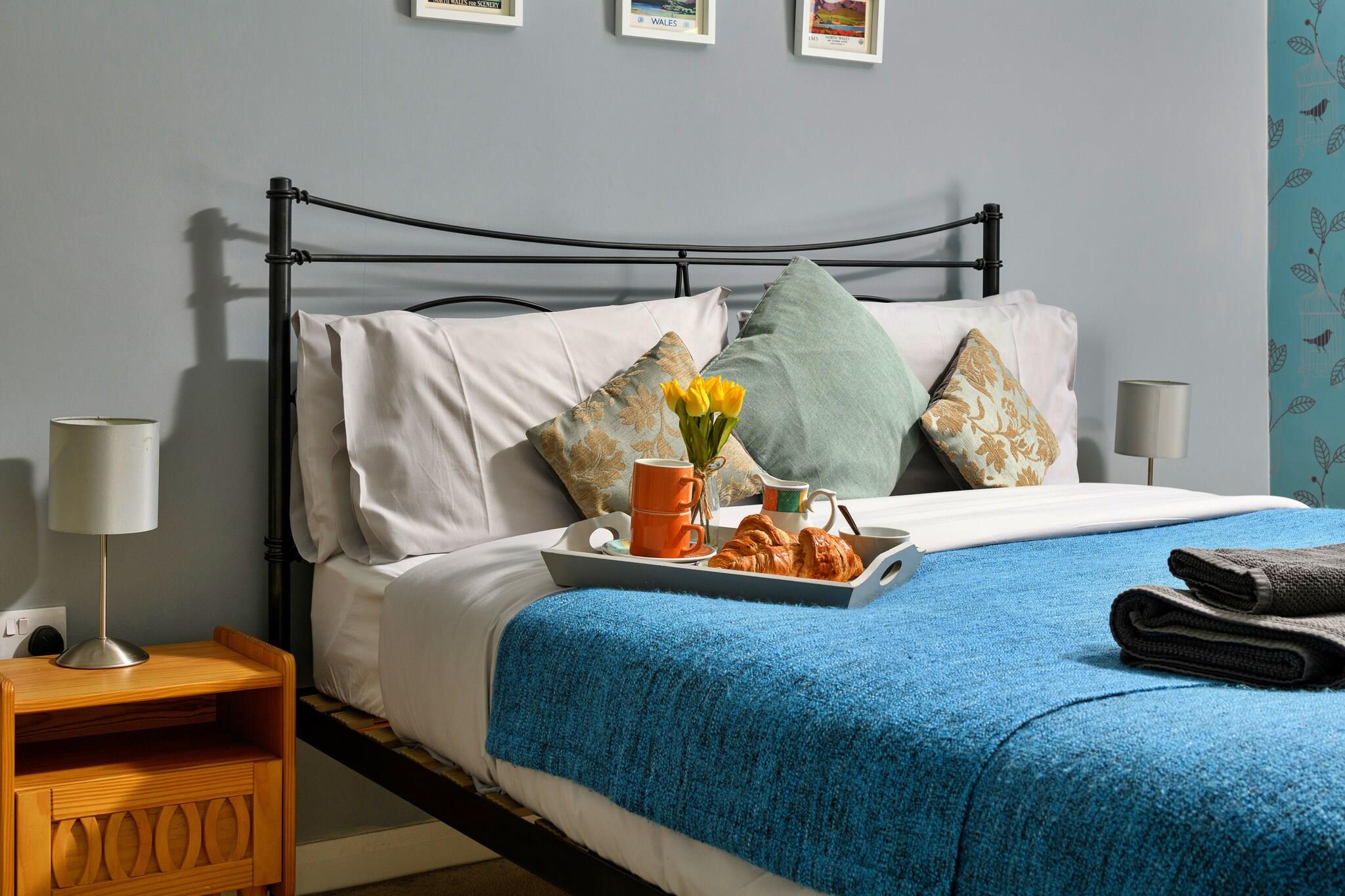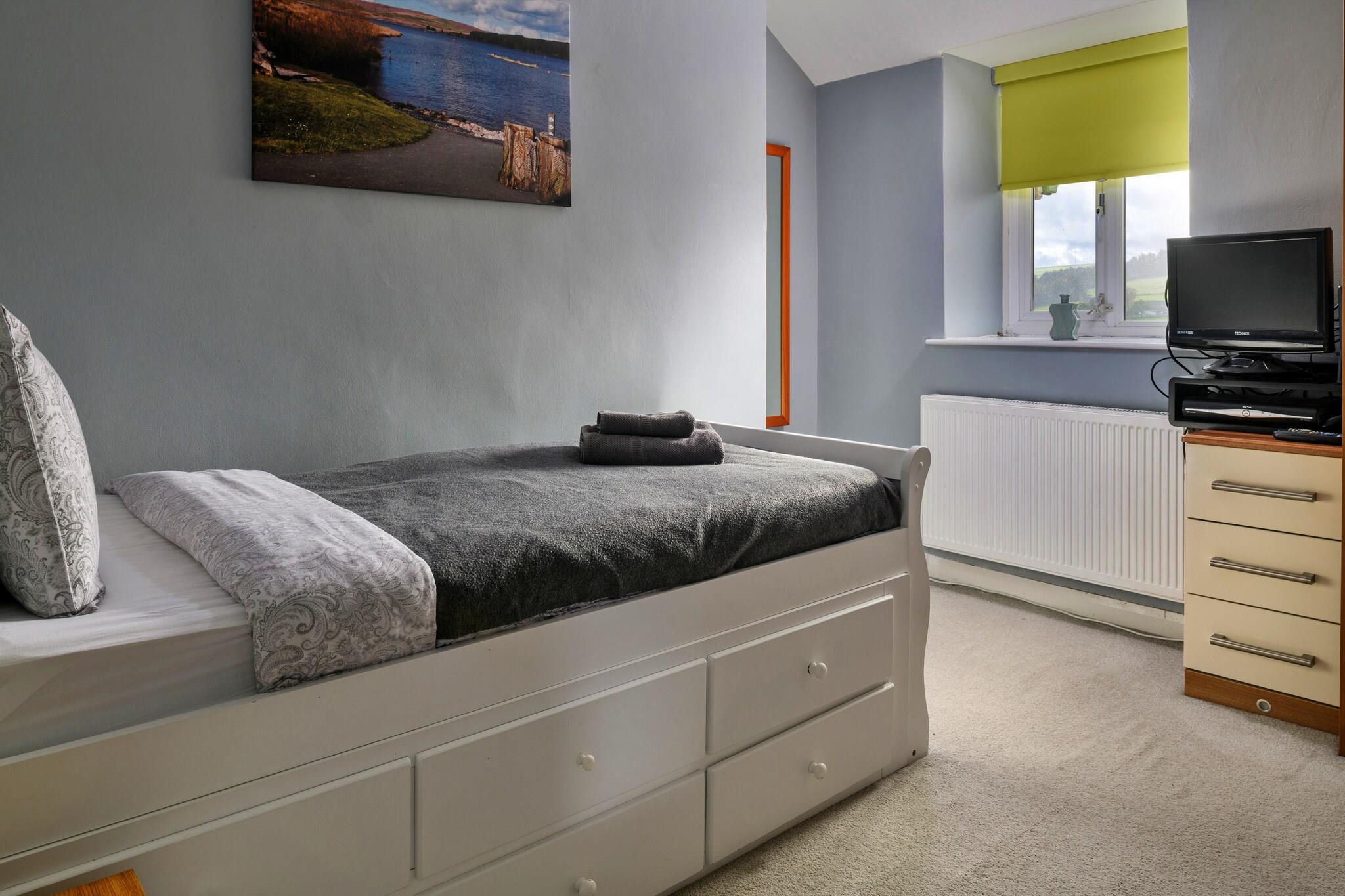 Dette charmerende sommerhus, beliggende i udkanten af ??Snowdonia, kan komfortabelt rumme op til otte gæster med sine fem velindrettede soveværelser. Hytten tilbyder en blanding af kingsize-, dobbelt- og enkeltværelser, herunder et kingsize værelse i stueetagen med eget toilet og bruser. Ejendommen er kæledyrsvenlig, tillader hunde og inkluderer faciliteter såsom en brændeovn i stuen, et moderne køkken og et bryggers ideel til hundeluftere. Derudover er en rejseseng og høj stol til rådighed efter anmodning. Der er tre parkeringspladser, og gæster rådes til at bruge den bageste indgang af sikkerhedsmæssige årsager, især med børn eller kæledyr. Beliggende i landsbyen Glasfryn, er hytten ideelt placeret for at udforske den naturlige skønhed og attraktioner i det nordlige Wales. Nærliggende højdepunkter omfatter en Championship Karting-bane kun 1,6 km væk, det naturskønne Llyn Alwen-reservoir (6 miles) og Llyn Brenig (8 miles), med et besøgscenter og masser af udendørs aktiviteter såsom bådudlejning og cykling. Andre bemærkelsesværdige attraktioner omfatter den højtliggende Sportsman's Arms pub (9 miles), Betws y Coed (9 miles) og den ikoniske Snowdon, som ligger kun 38 minutters kørsel væk. Området er rigt med maleriske byer, herunder Bala, Ffestiniog og Llangollen, samt de charmerende kyststeder Llandudno og Harlech. Sommerhuset er udstyret med et veldimensioneret køkken-alrum, med moderne apparater såsom opvaskemaskine, køleskab, fryser og gaskomfur. Køkkenet er ideelt til at tilberede måltider for hele familien eller gruppen. Ejendommen omfatter også et badeværelse med toilet og et separat toilet på første sal, hvilket sikrer bekvemmelighed for alle gæster.
