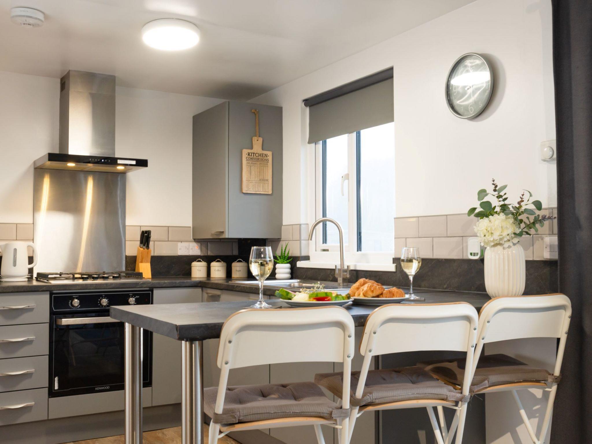 Very modern, beautiful chalet "Hot Tub Lodge 1", surrounded by trees and fields. In the district of Helston, 6 km from the sea, 6 km from the beach, in the countryside. For shared use: park with lawn. Children's playground. Private: lawn for sunbathing. Hot tub. In the complex: restaurant. Parking at the house. Grocery 2 km, supermarket 2 km, restaurant 10 m, bar 2 km, bakery 650 m, café 650 m, bus stop "Menage Street, Helston" 3 km, railway station "Camborne" 12 km, sandy beach "Porthleaven" 7 km, park "Wheal Dream" 10 m, lake Coronation Park 3 km. Golf course (18 hole) 20 m, children's playground 10 m, fishing possibilities 6 km. Nearby attractions: The Cornish Seal Sanctuary 8 km, Kynance Cove 21 km, St Michaels Mount 18 km, Lands End 39 km, Praa Sands 12 km, St Ives 26 km. Well-known lakes can easily be reached: Carminowe Creek 8 km. Please note: the complex has another 5 chalets for rent. The holiday properties may differ in living space, floorplan, equipment and furnishing.
